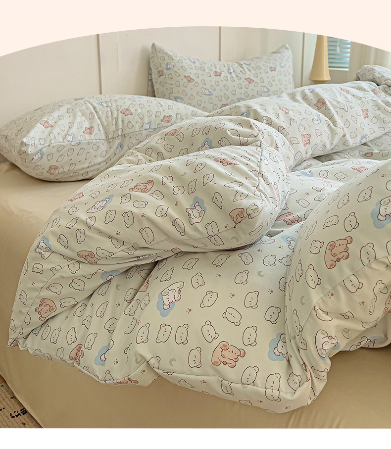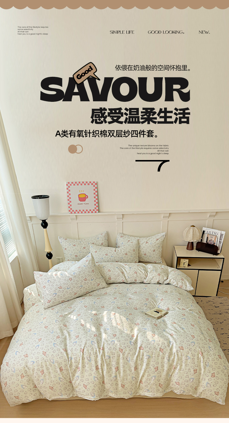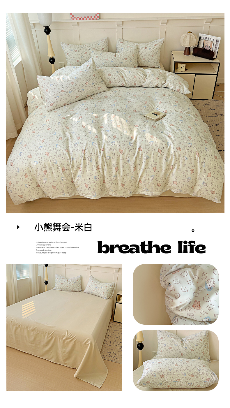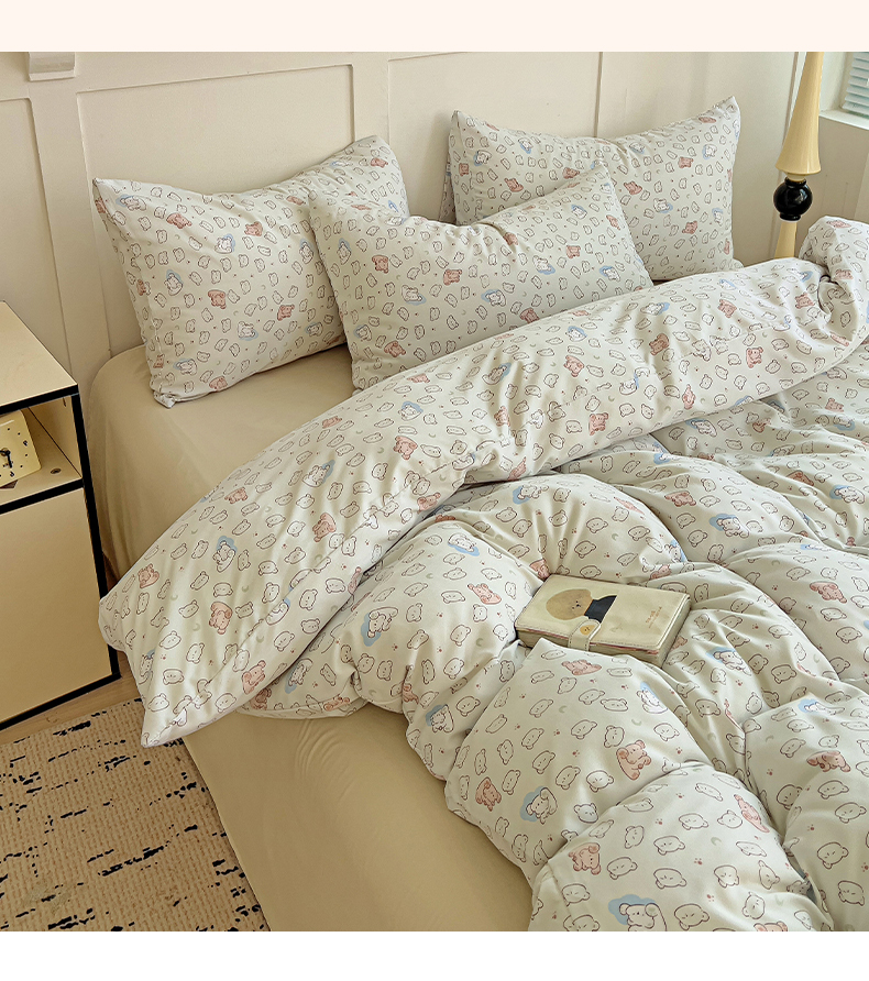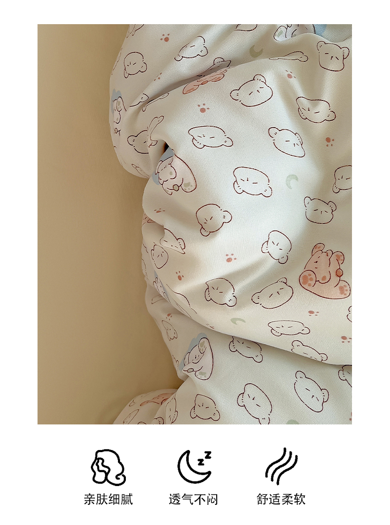 当前位置: 91家纺网 > 商品网购 > 床品套件 > 四件套 > 针织棉四件套 > 妖妖家纺 2025新款有氧针织棉双层纱四件套 小熊舞会-米白