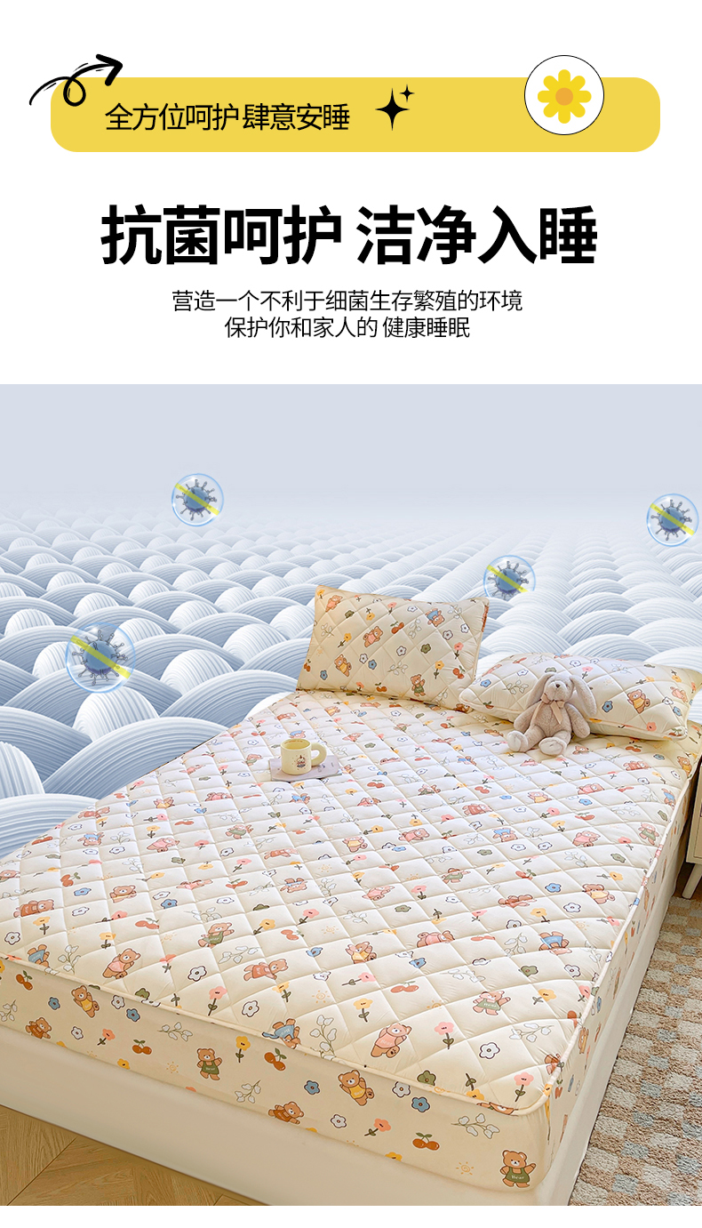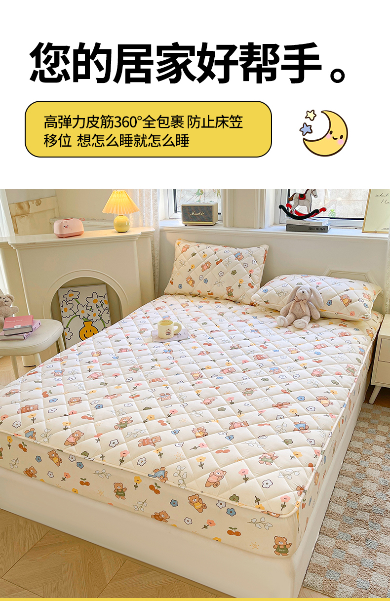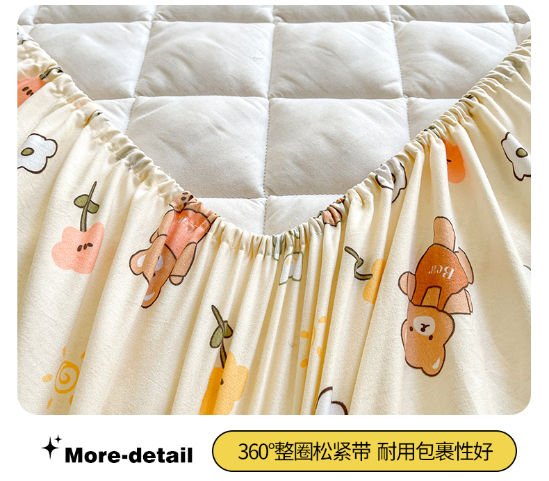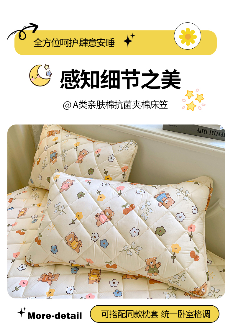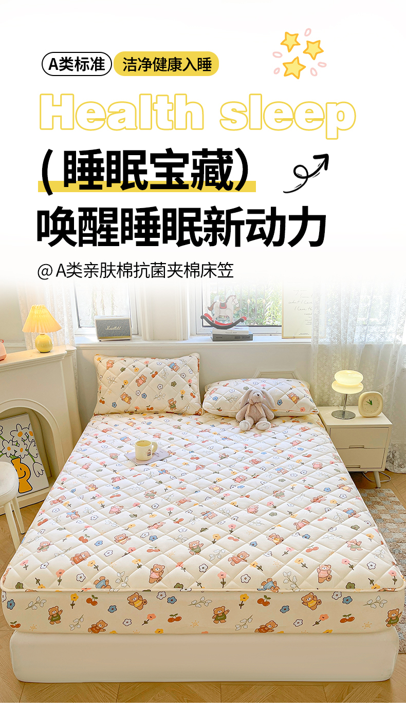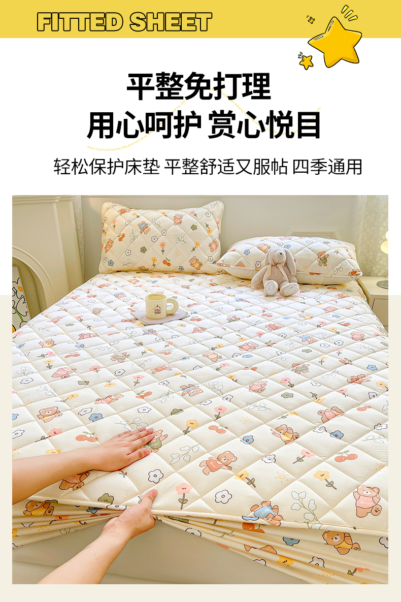 • 91家纺网 家纺一手货源 找家纺 居眠 2025新款A类亲肤棉抗菌印花夹棉床笠 花园小熊