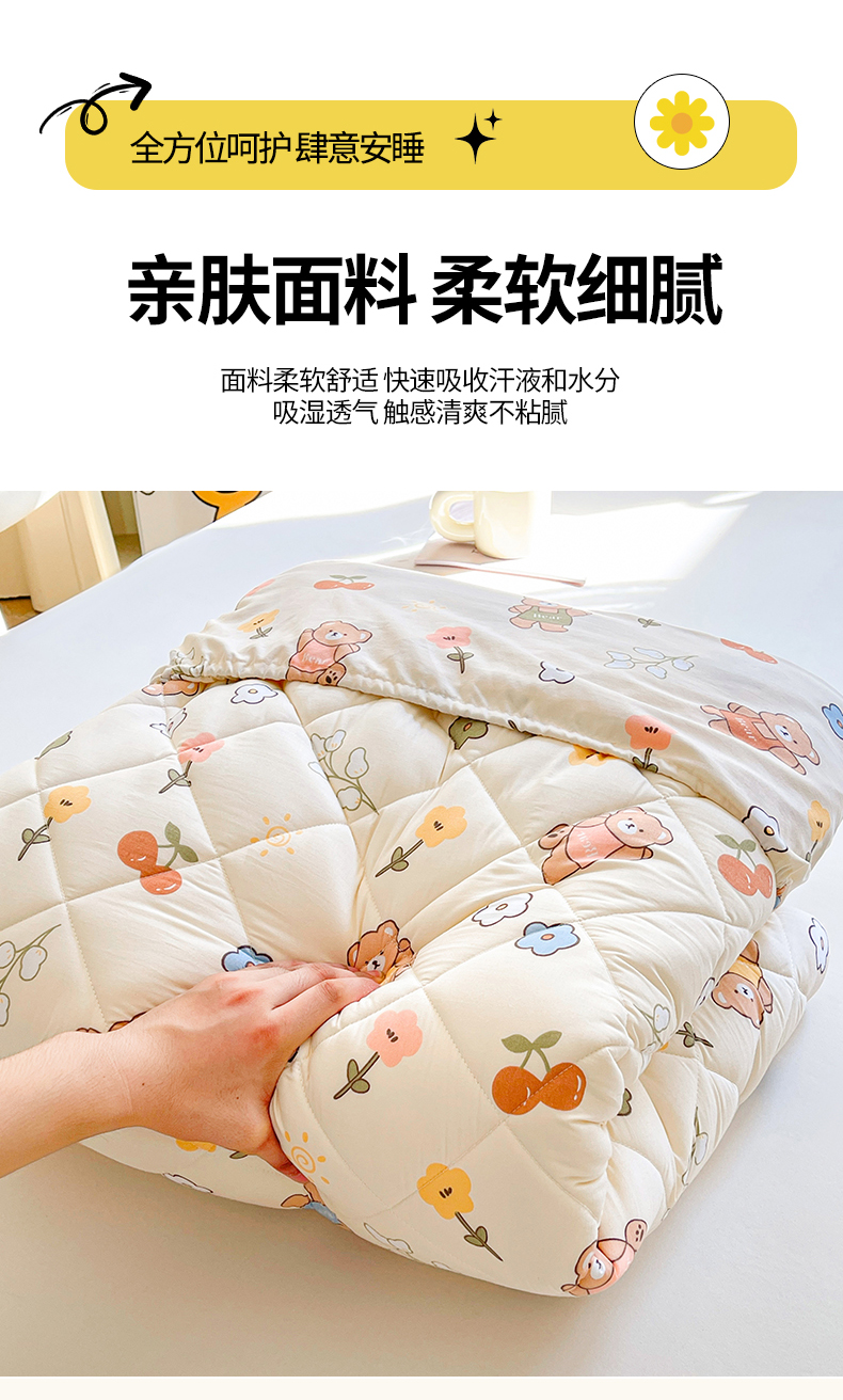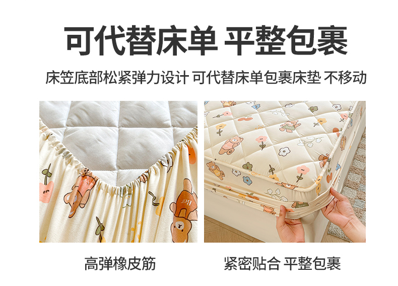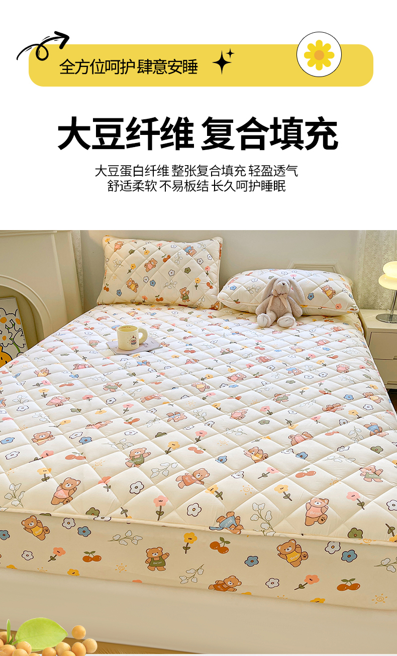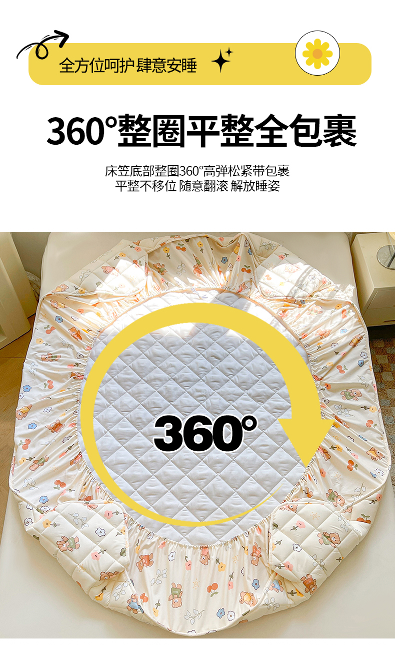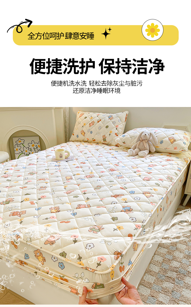 • 91家纺网 家纺一手货源 找家纺 居眠 2025新款A类亲肤棉抗菌印花夹棉床笠 花园小熊
