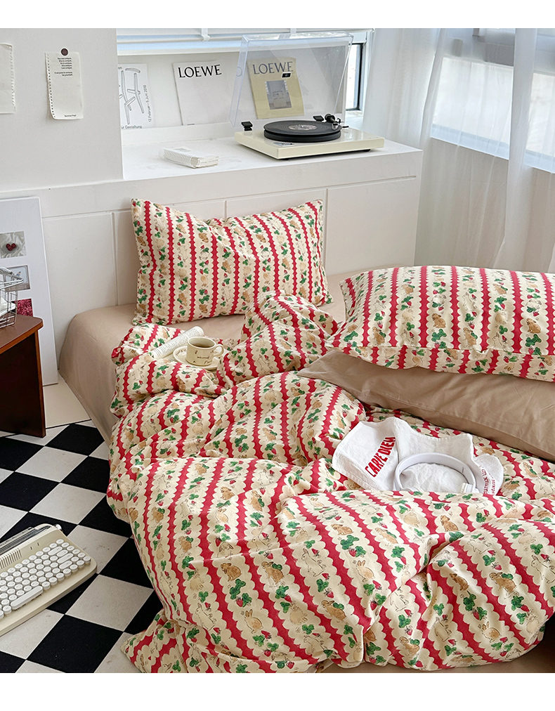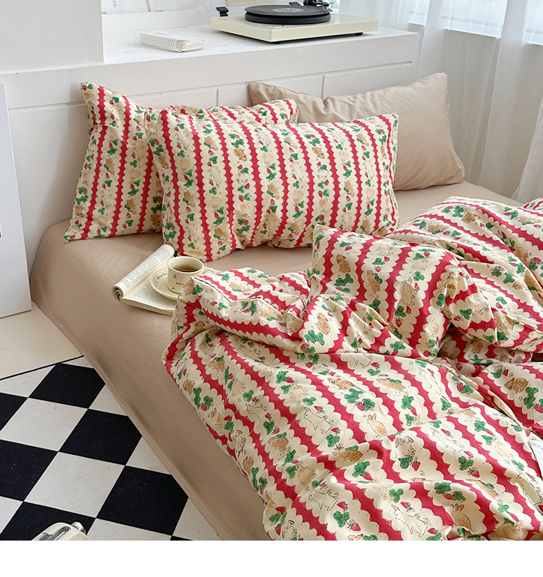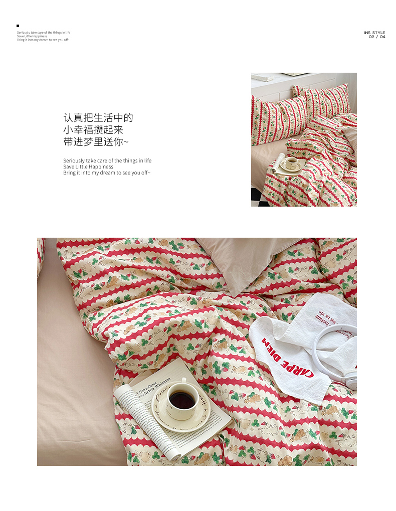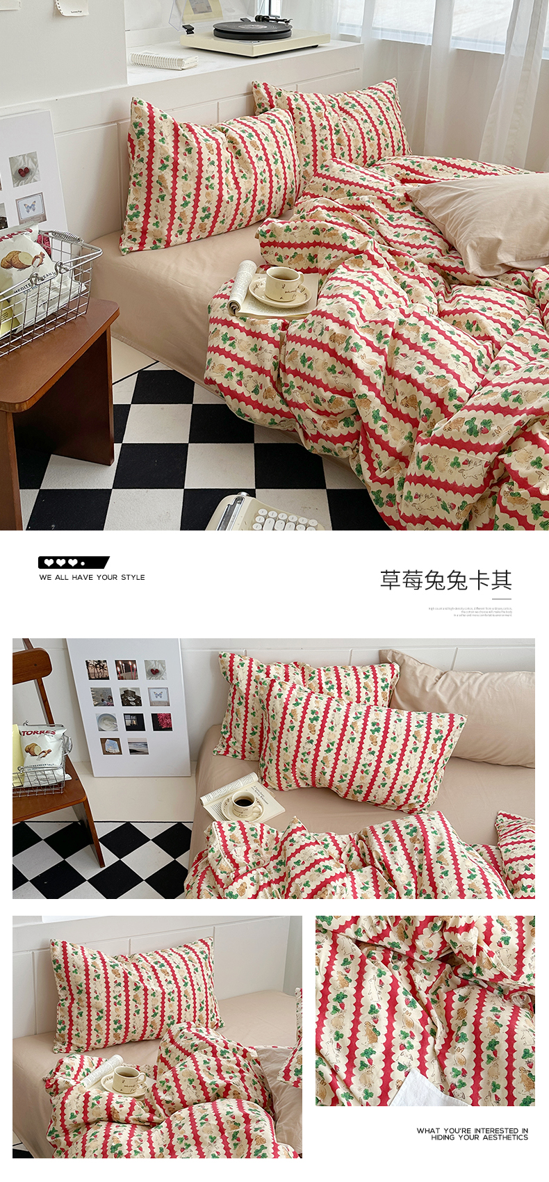 当前位置: 91家纺网 > 商品网购 > 床品套件 > 四件套 > 全棉普通四件套 > 尺素2025年韩国ins风系列五 草莓兔兔卡其