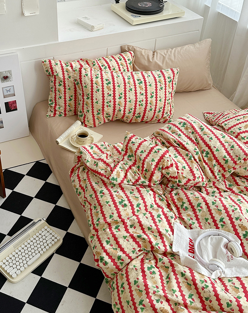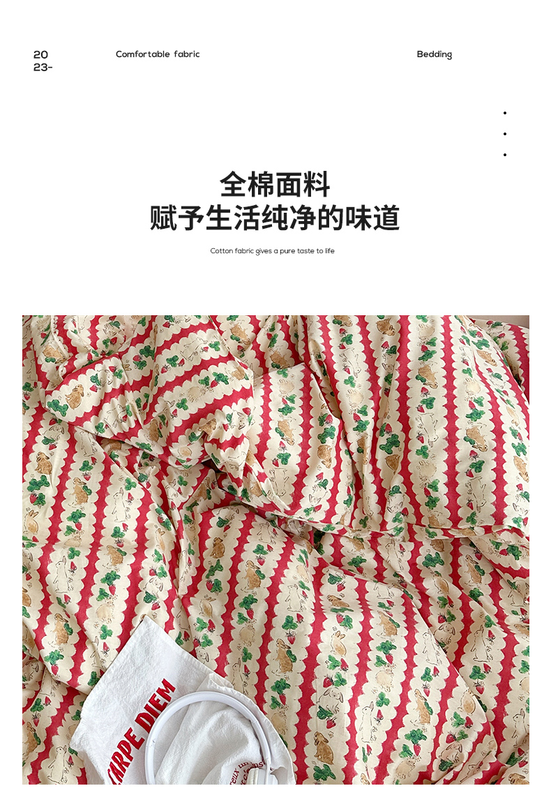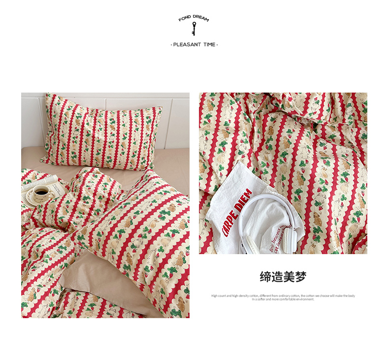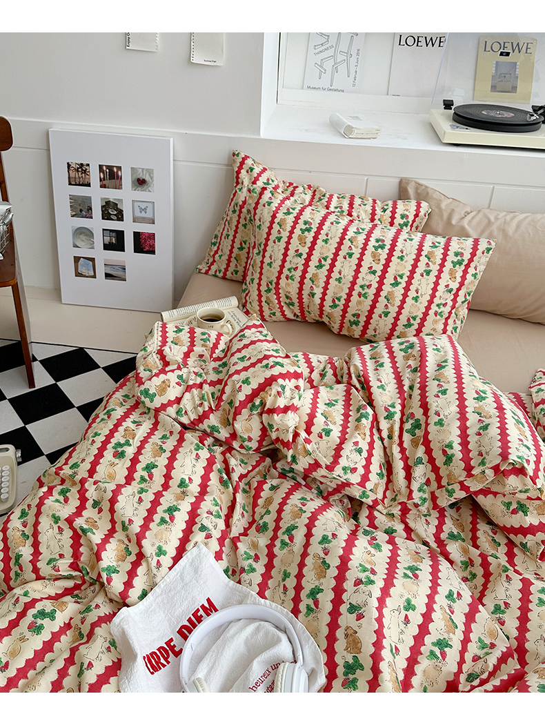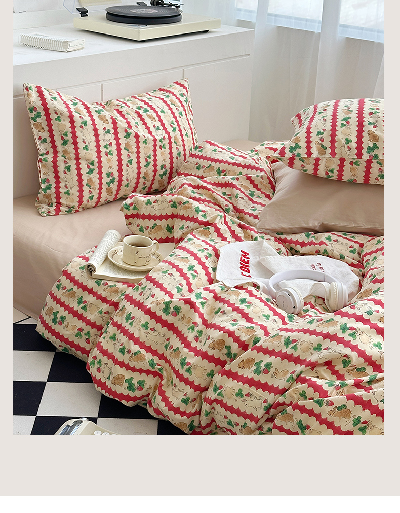 当前位置: 91家纺网 > 商品网购 > 床品套件 > 四件套 > 全棉普通四件套 > 尺素2025年韩国ins风系列五 草莓兔兔卡其