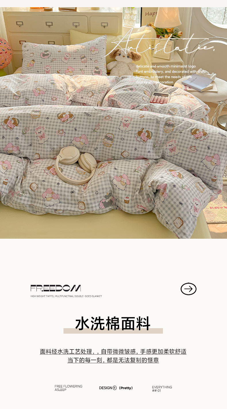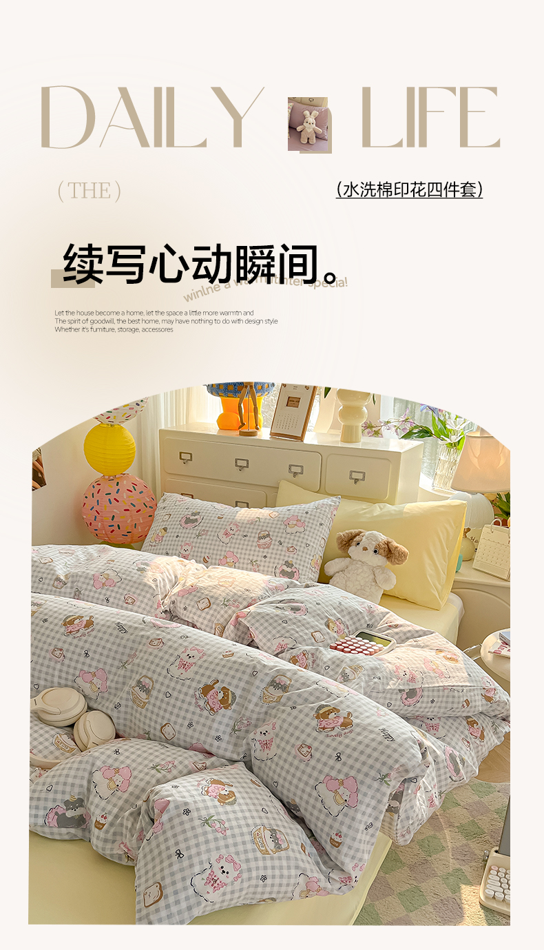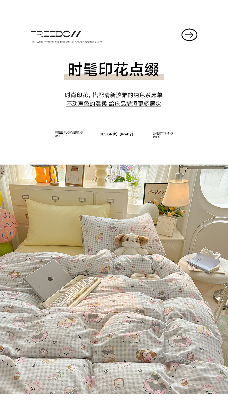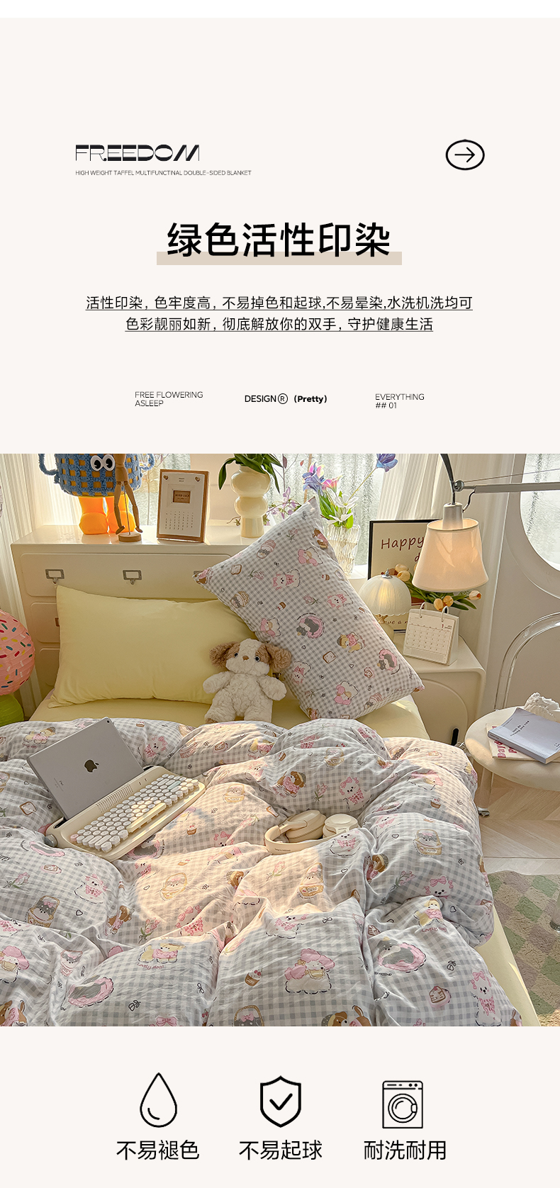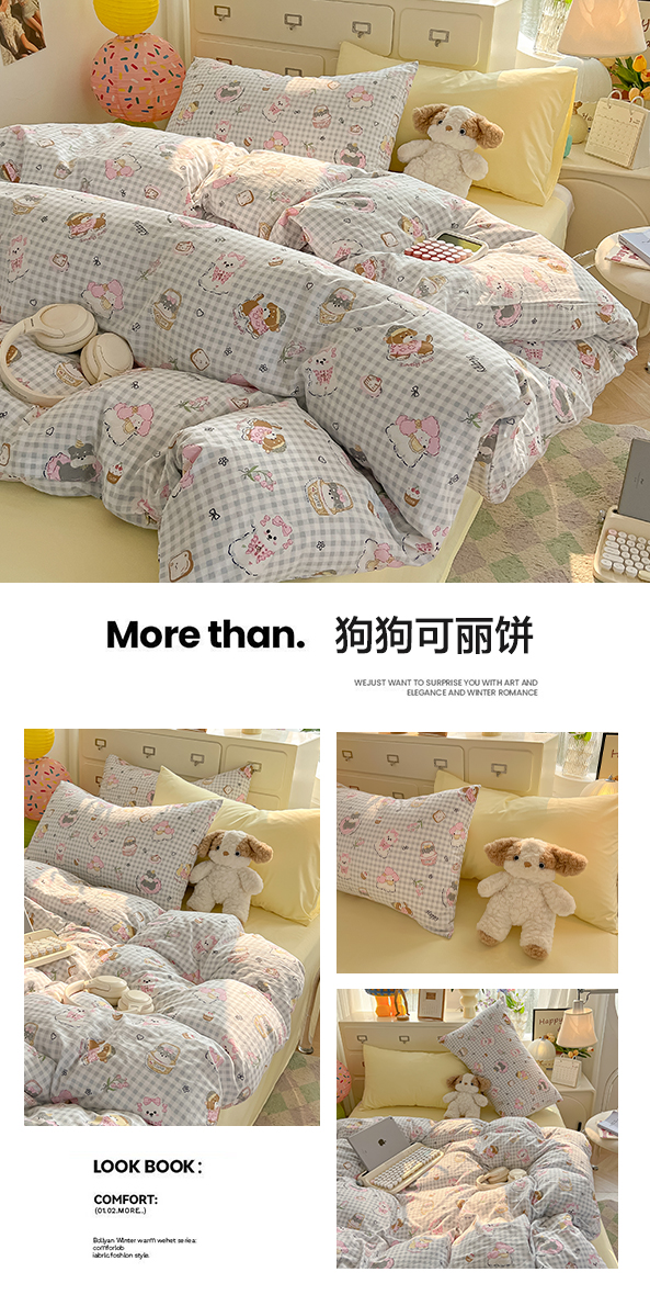 当前位置: 91家纺网 > 商品网购 > 床品套件 > 四件套 > 化纤普通四件套 > 韩巢家纺 2025新款水洗棉印花AA版四件套 狗狗可丽饼