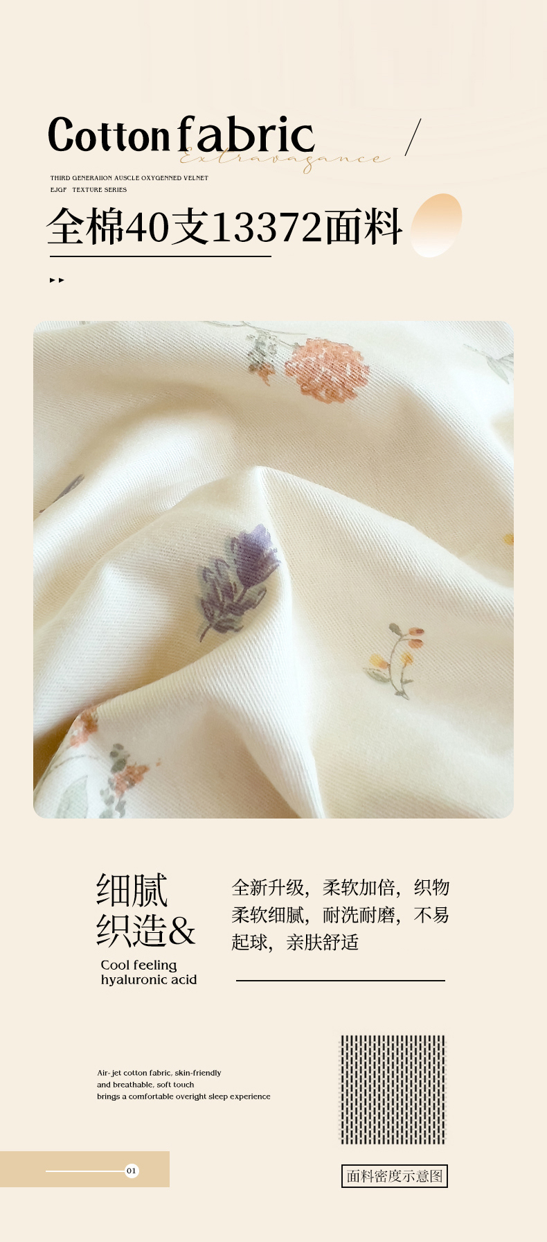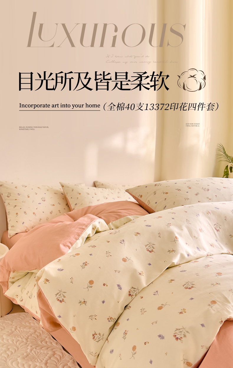 当前位置: 91家纺网 > 商品网购 > 床品套件 > 四件套 > 全棉普通四件套 > DoDo 兜兜 【 可定制尺寸】2025新款全棉40支13372印花四件套 萱花