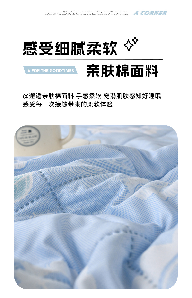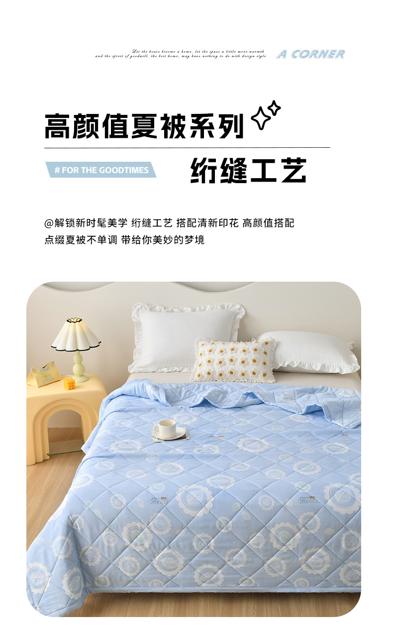 商品名称:培童 2025新款超声波亲肤绒夏被夏凉被直播爆款超声波夏被空调被礼品被 花叶蓝