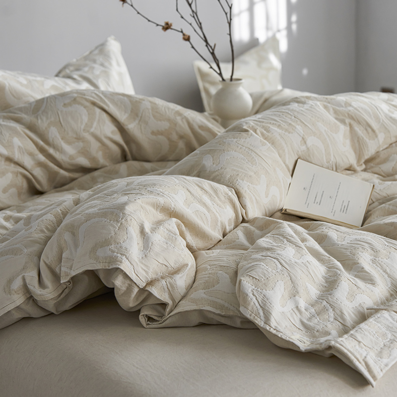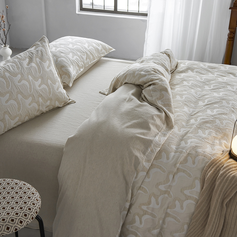 (总)简家居 2025新款亲肤舒适棉麻床盖三件套,棉麻提花