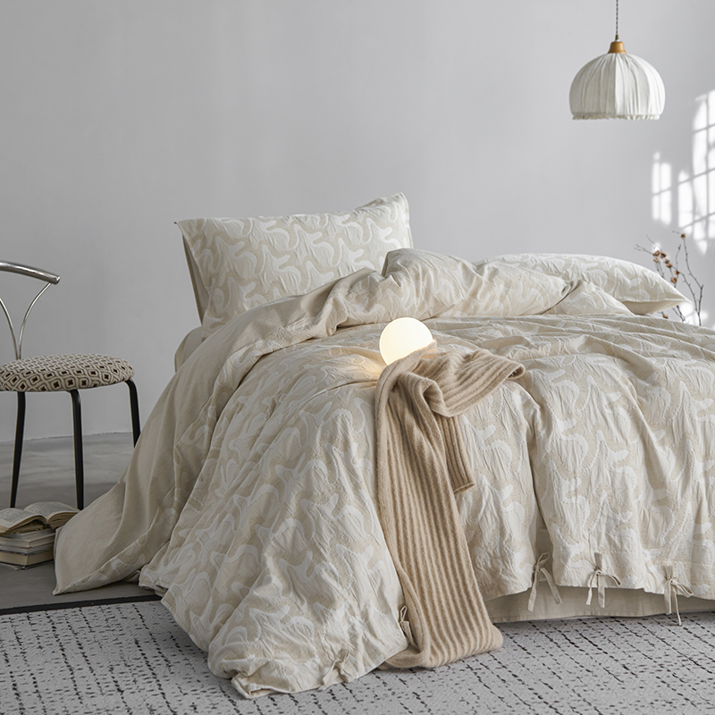 (总)简家居 2025新款20%亚麻80%棉棉麻提花四件套-法颂,法颂