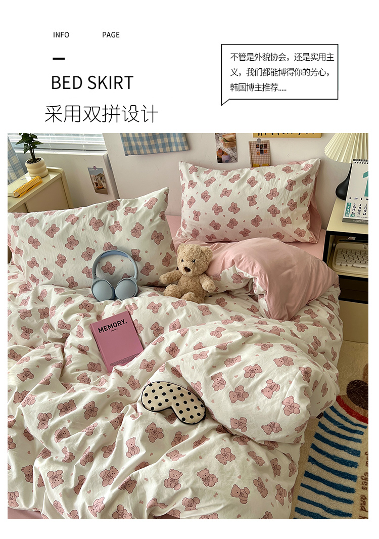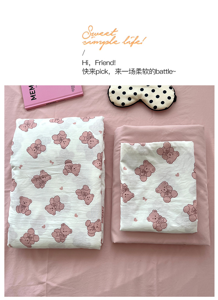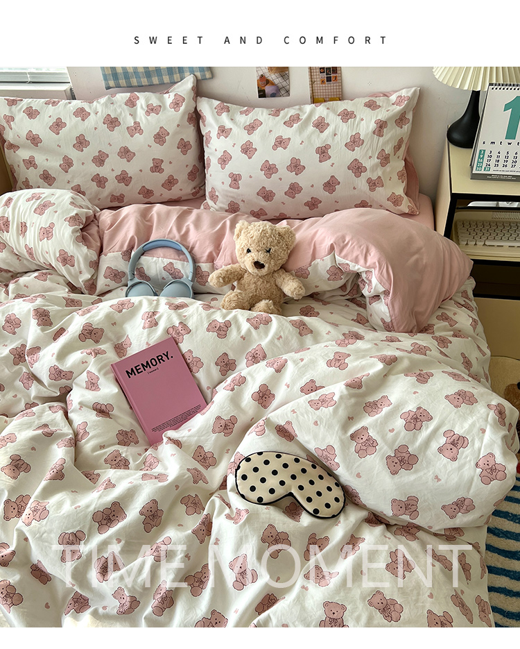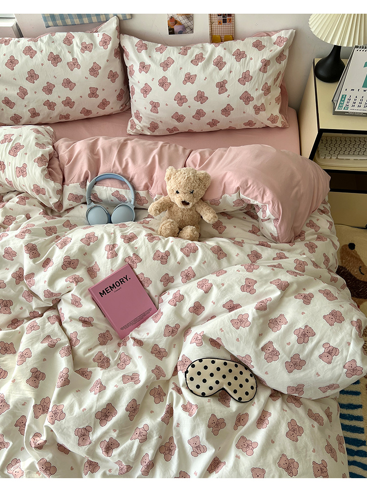 当前位置: 91家纺网 > 商品网购 > 床品套件 > 四件套 > 其它四件套 > 原素 2025软绵绵的双拼印花水洗棉四件套 韩系熊熊子