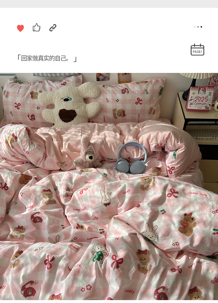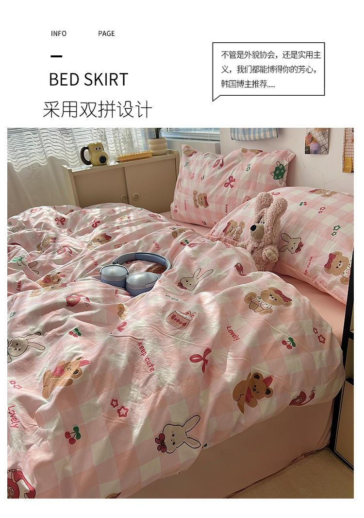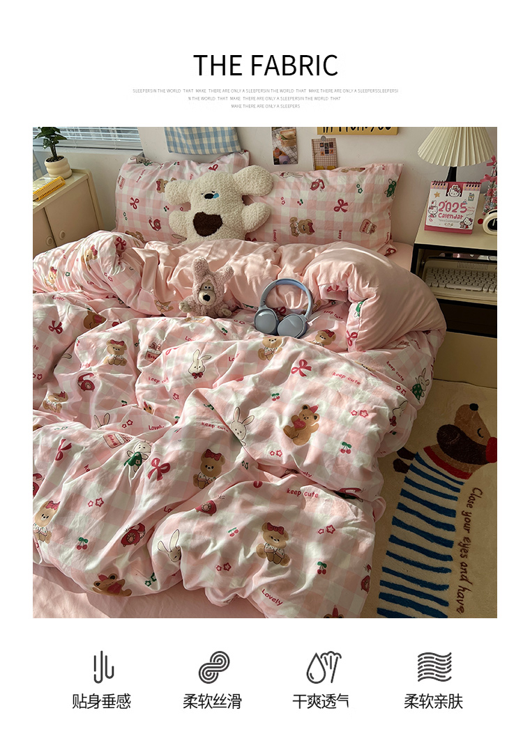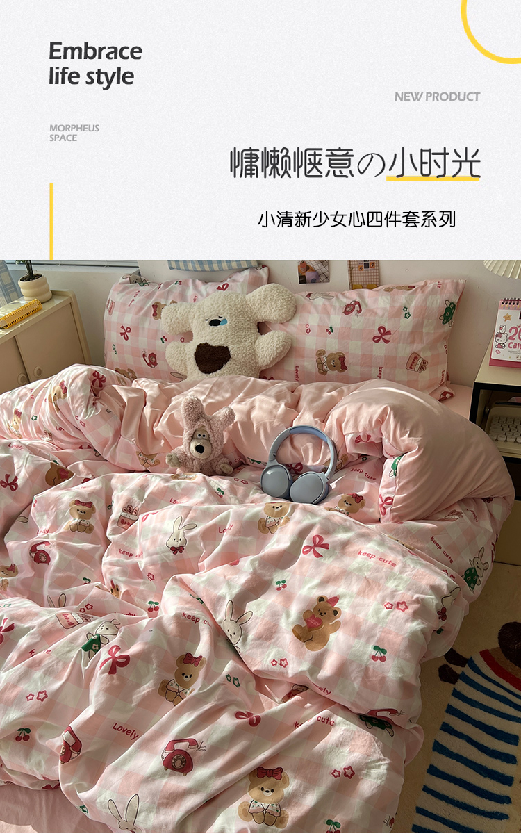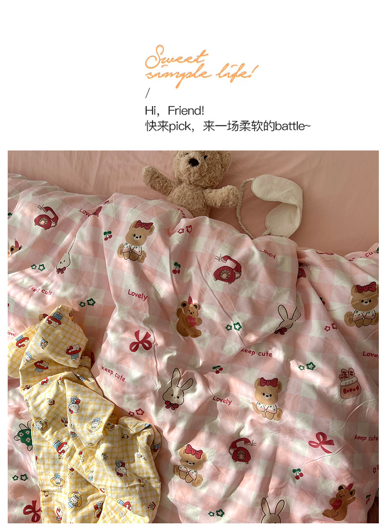 当前位置: 91家纺网 > 商品网购 > 床品套件 > 四件套 > 其它四件套 > 原素 2025软绵绵的双拼印花水洗棉四件套 话痨小熊