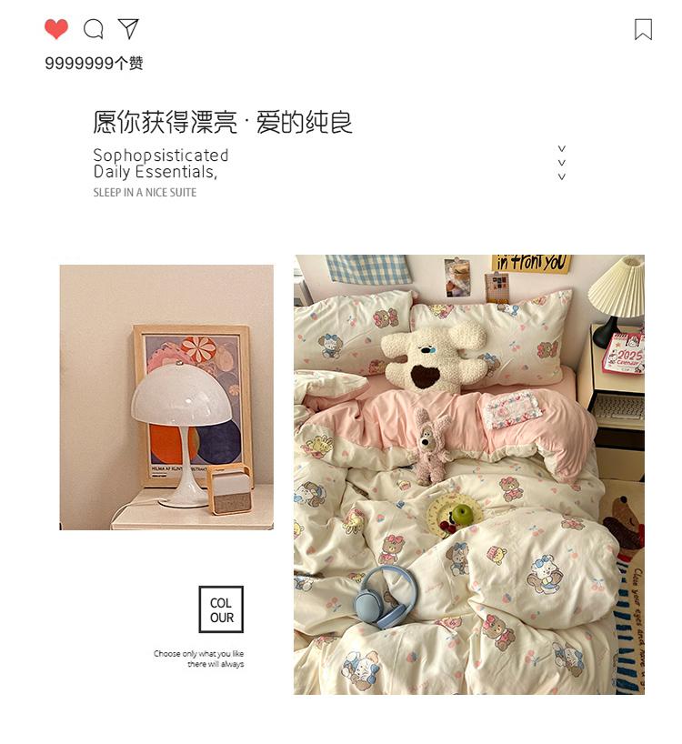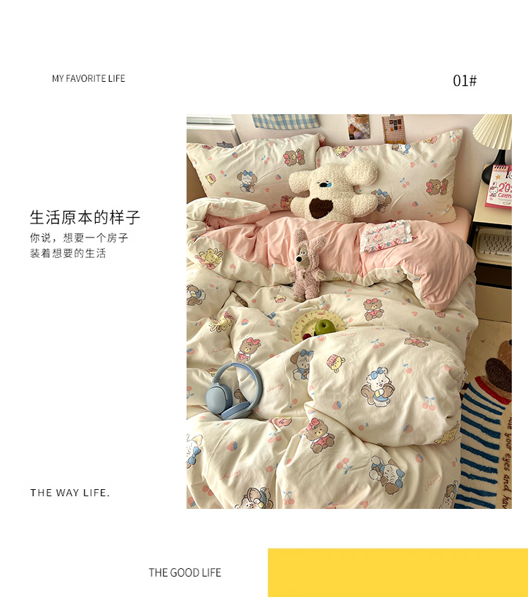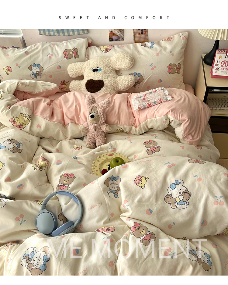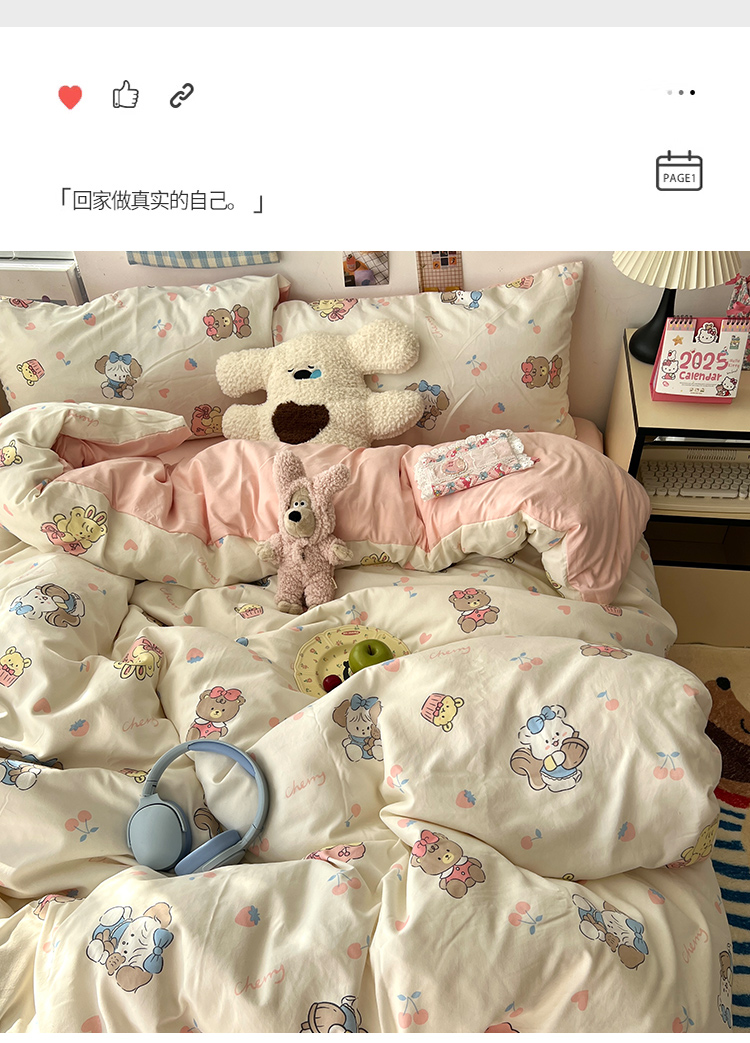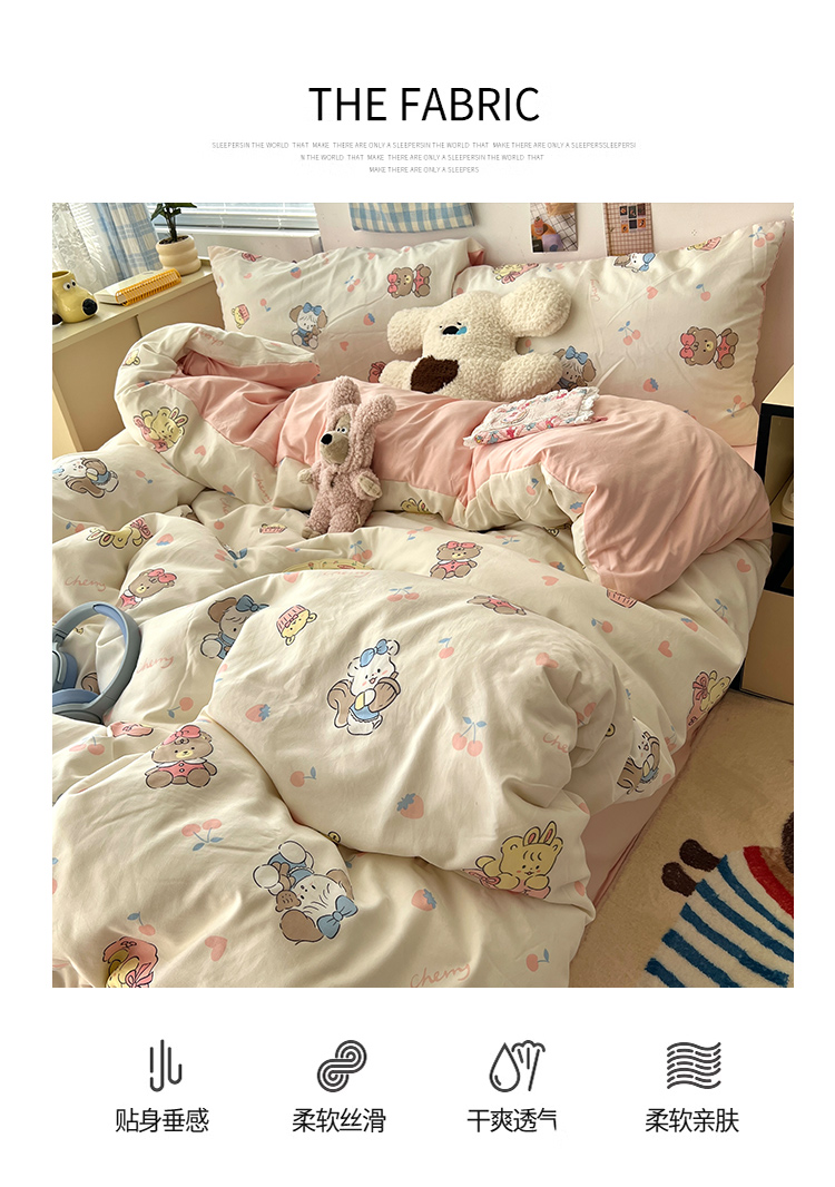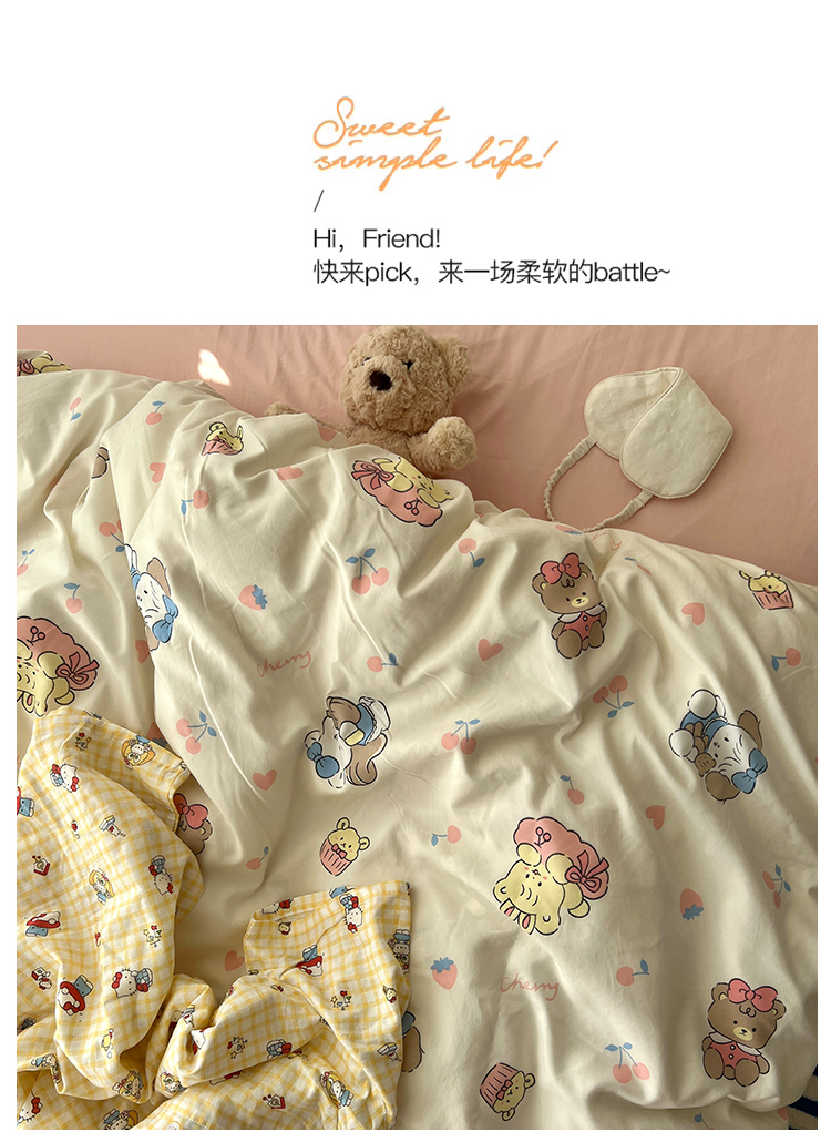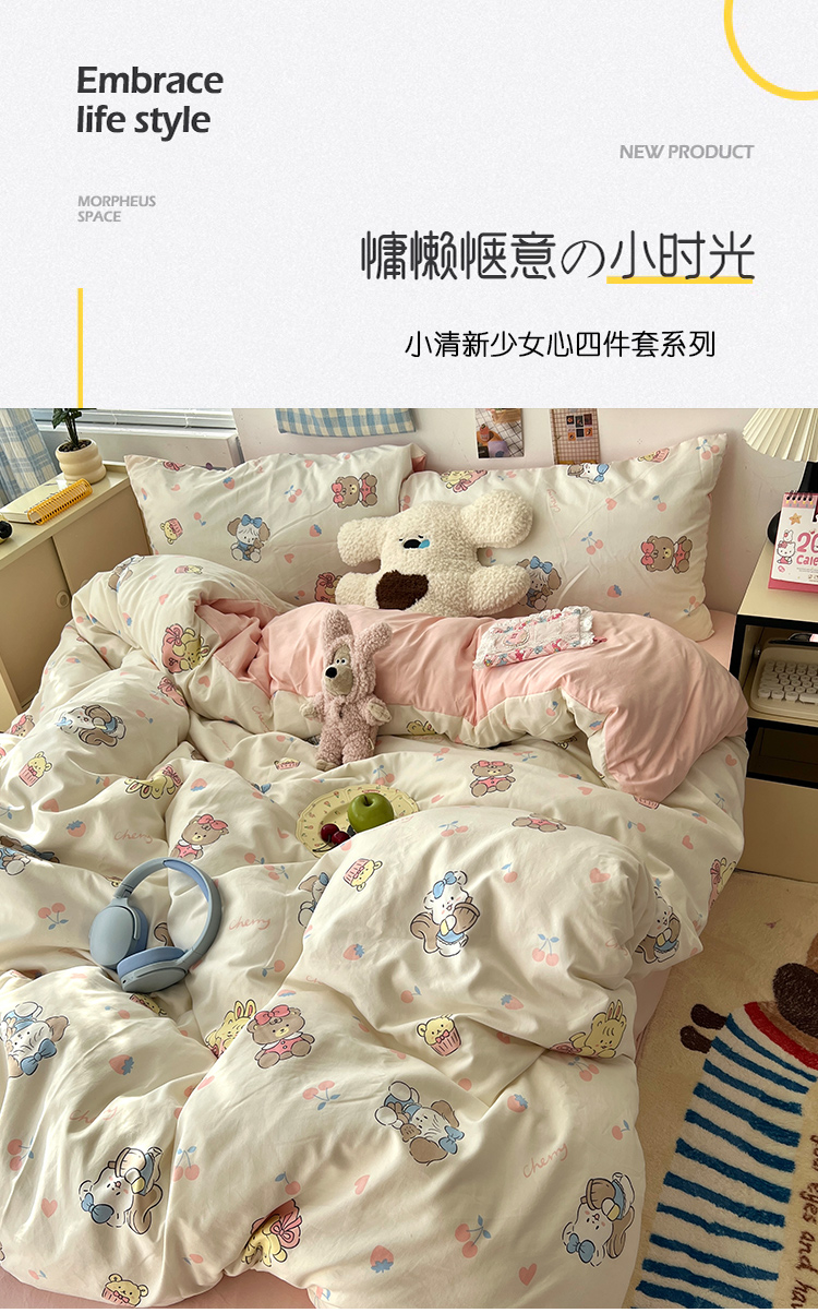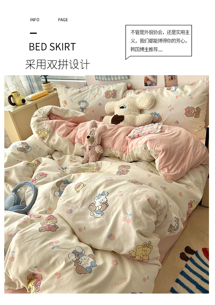 当前位置: 91家纺网 > 商品网购 > 床品套件 > 四件套 > 其它四件套 > 原素 2025软绵绵的双拼印花水洗棉四件套 樱桃小可爱