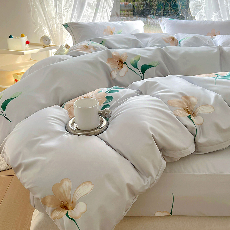 耀悦家纺 2025新款水洗真丝四件套简约印花小清新欧式ins新中式冰丝四件套 芳草