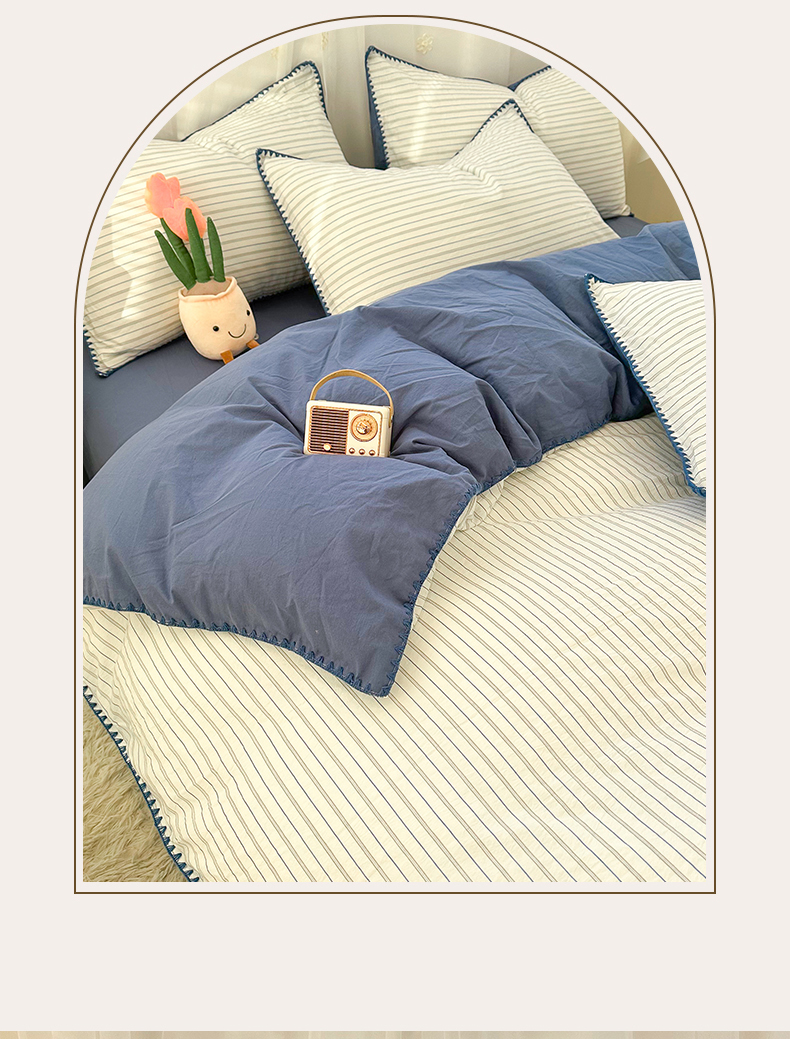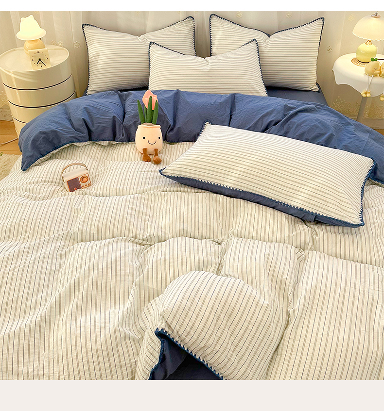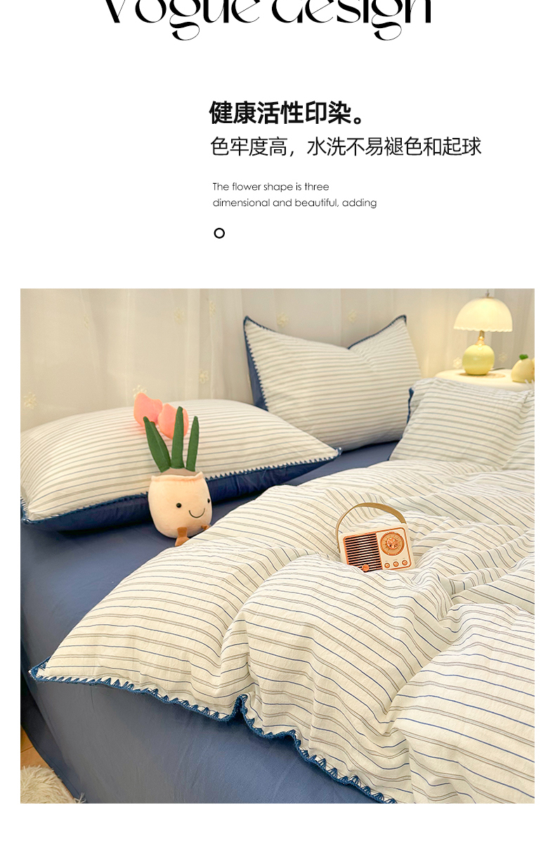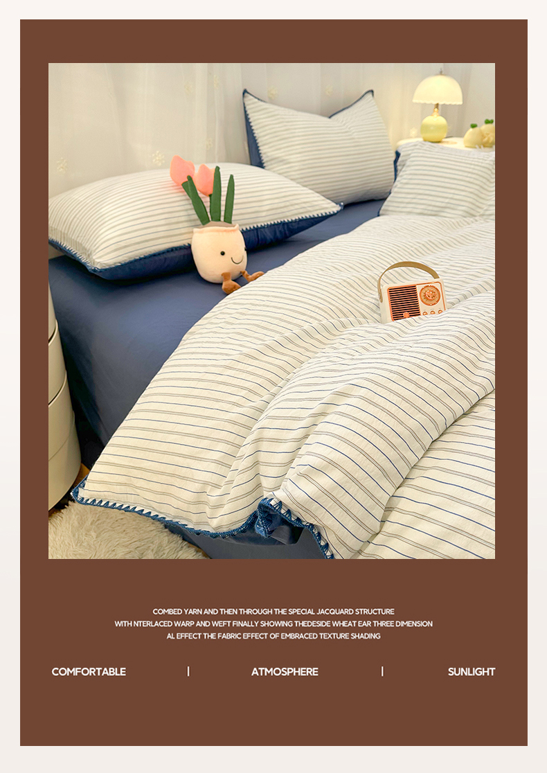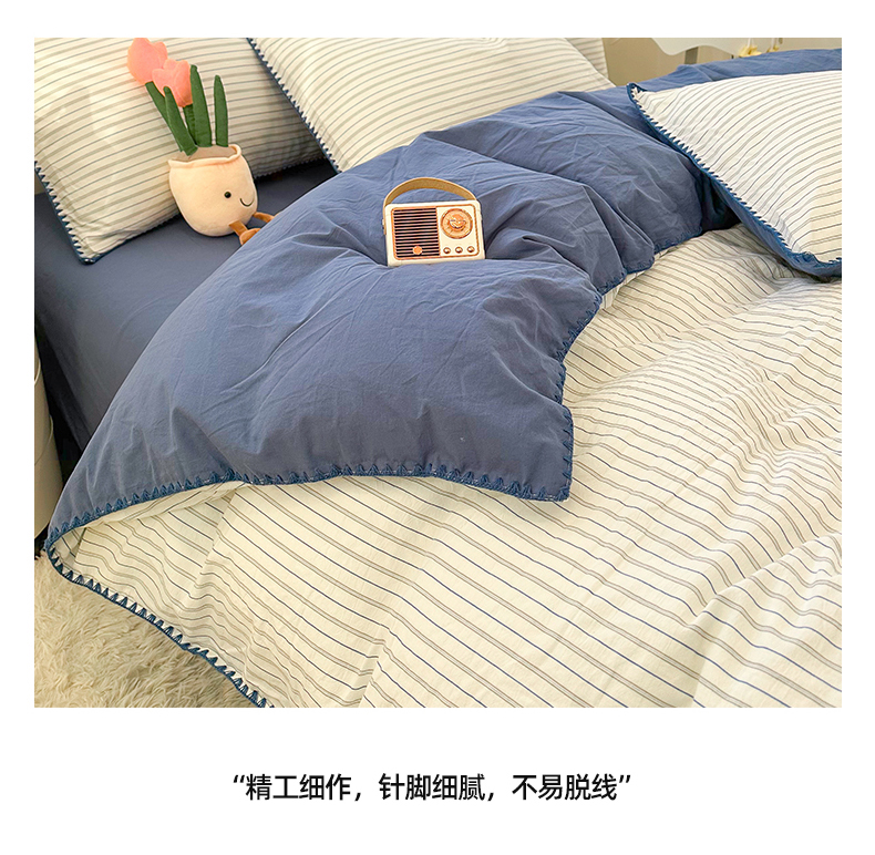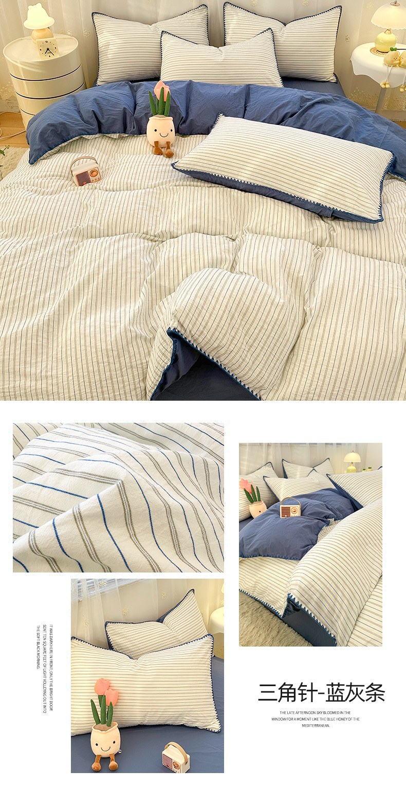 商品名称:简宜家居(朝初家纺) 2025新款色织小提花三角针款四件套 三角针蓝灰条