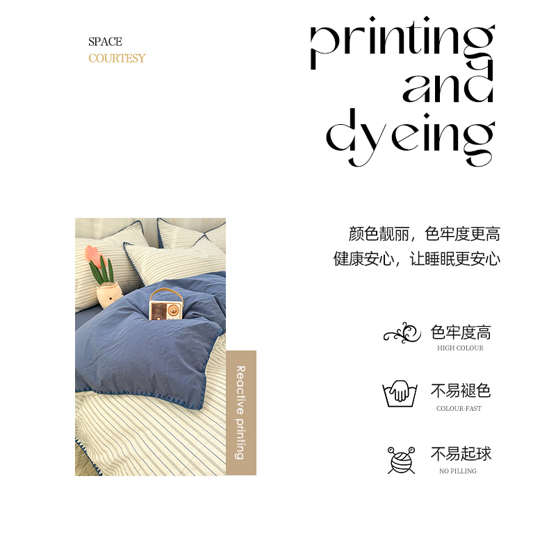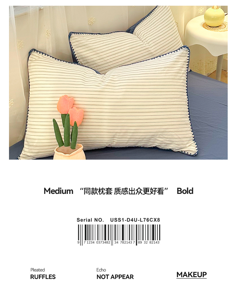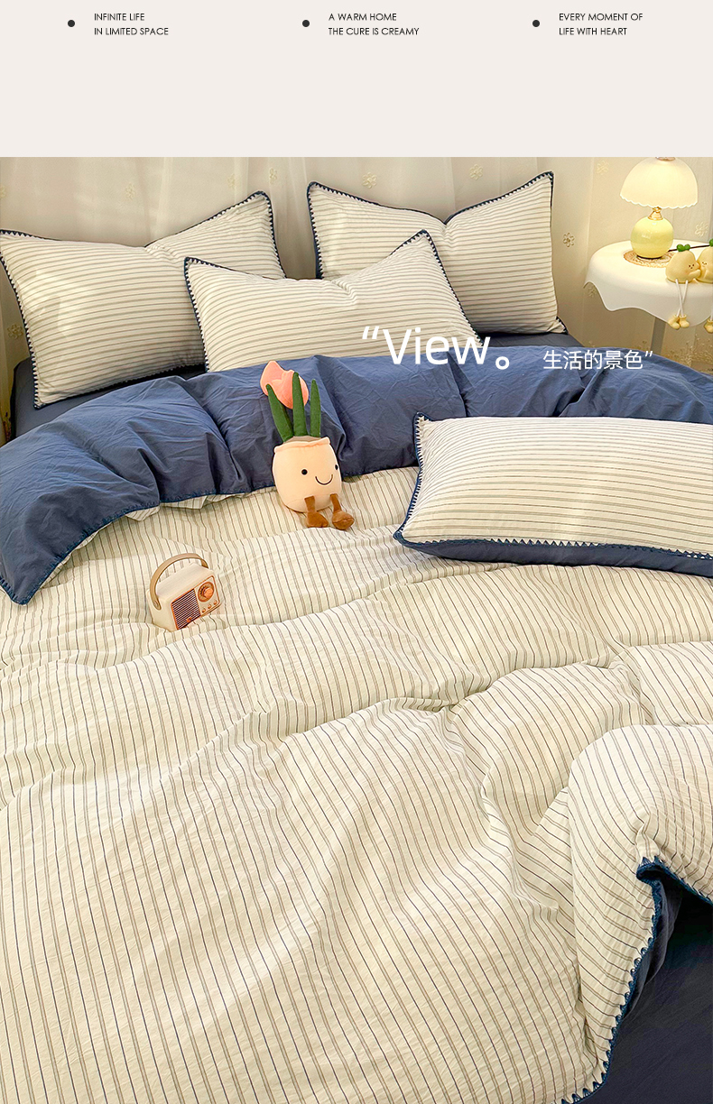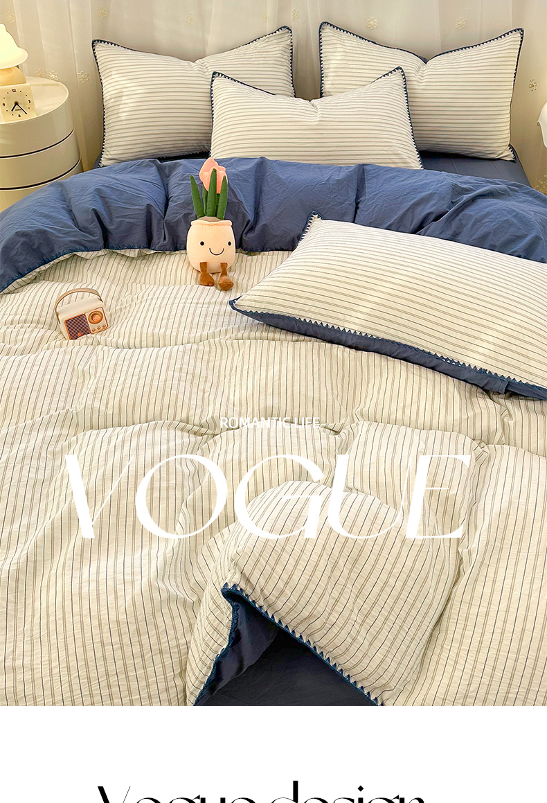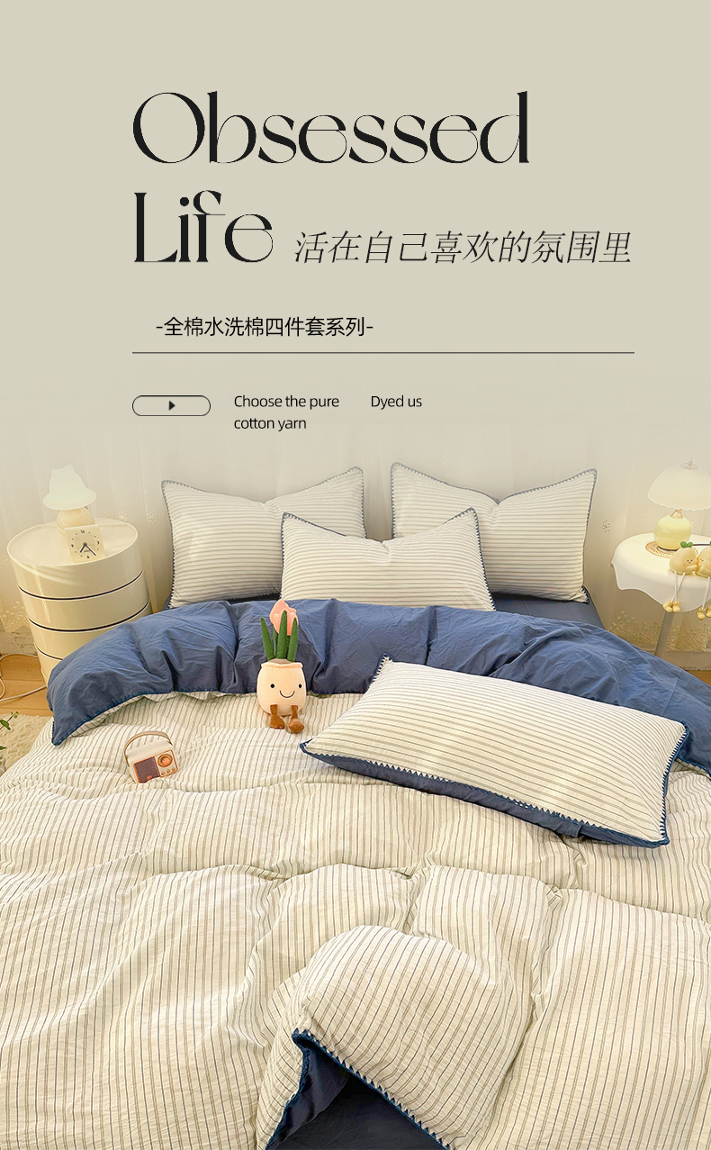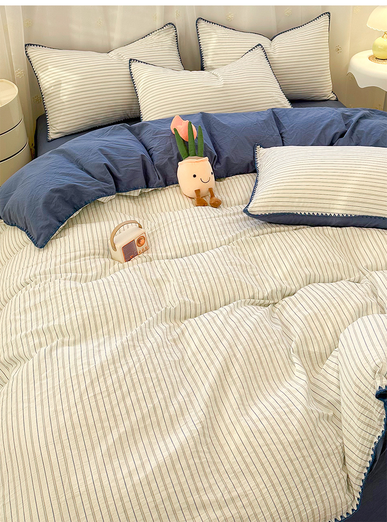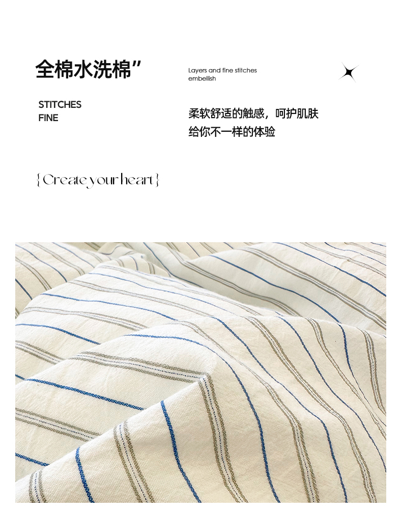 商品名称:简宜家居(朝初家纺) 2025新款色织小提花三角针款四件套 三角针蓝灰条