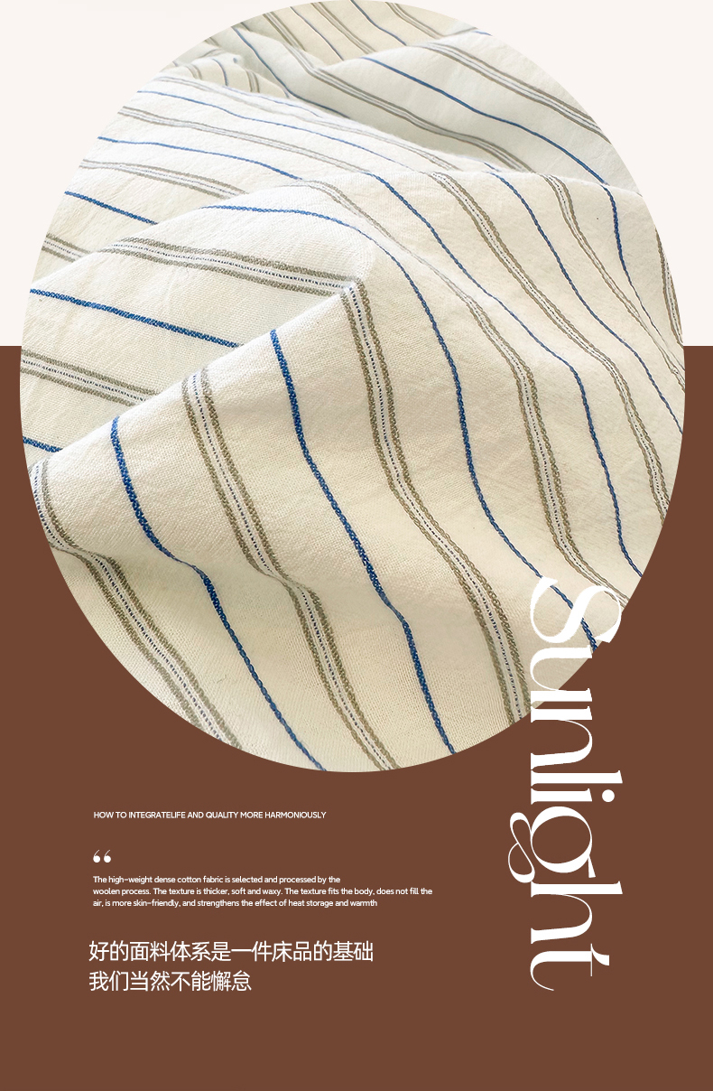 简宜家居(朝初家纺) 2025新款色织小提花三角针款四件套 三角针蓝灰条
