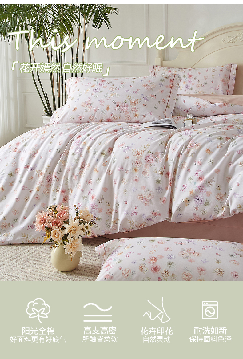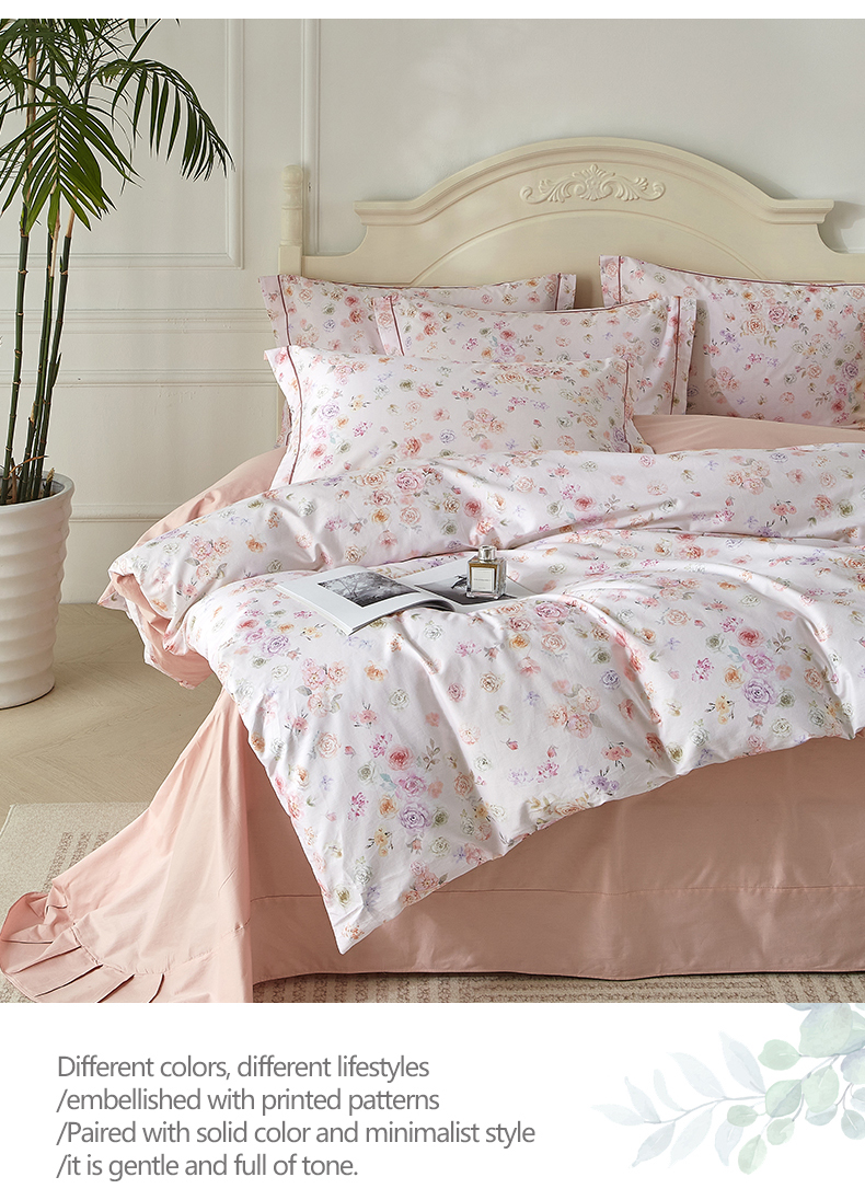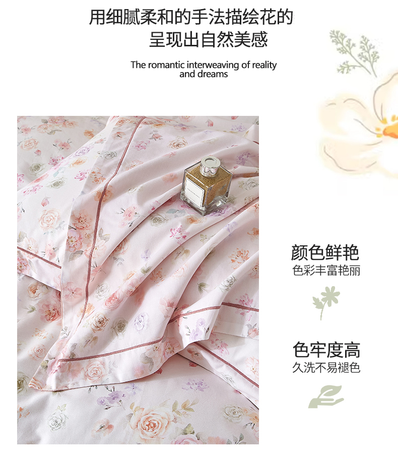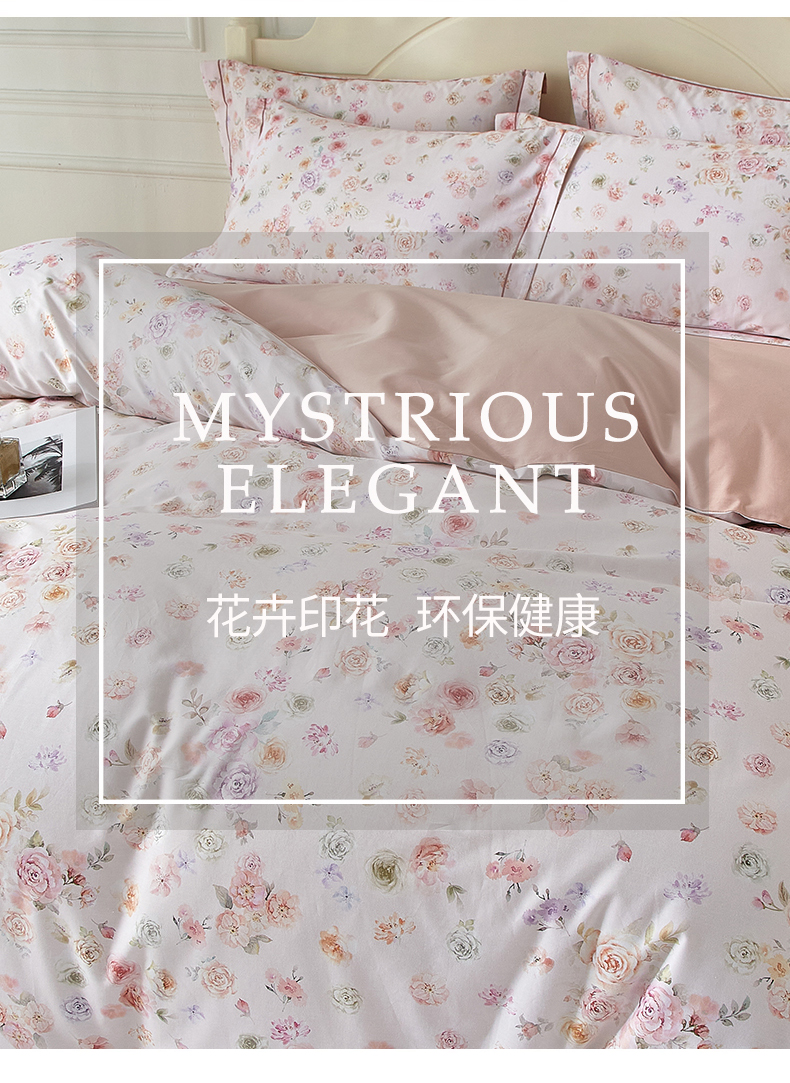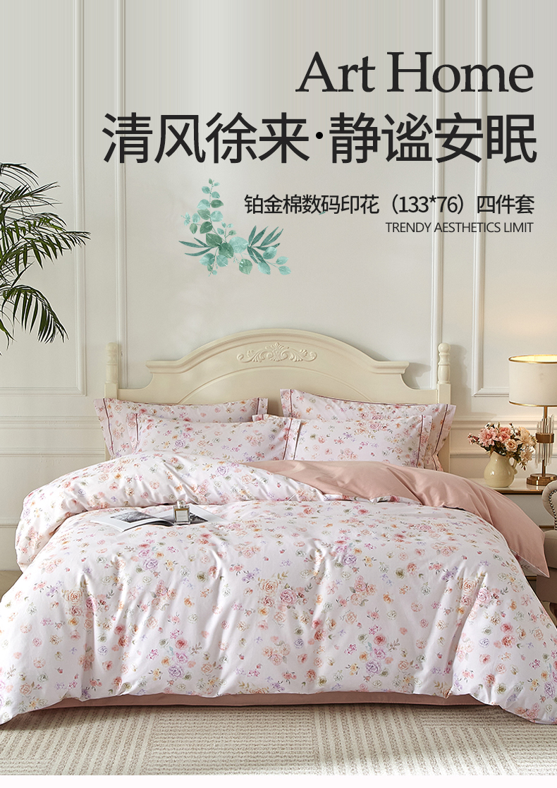 商品名称:曼秀琳 2025新款铂金棉数码印花四件套(全棉133*76) 天香豆蔻-粉