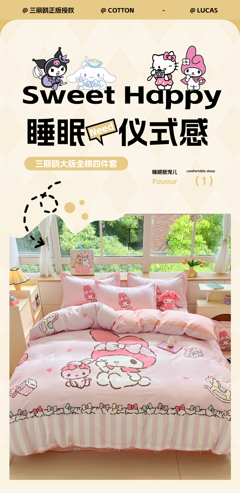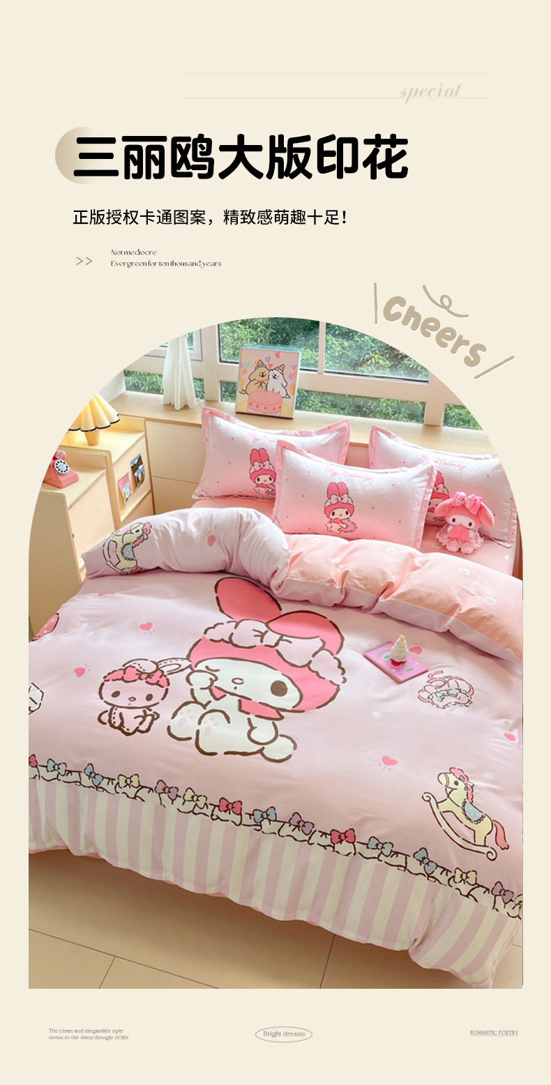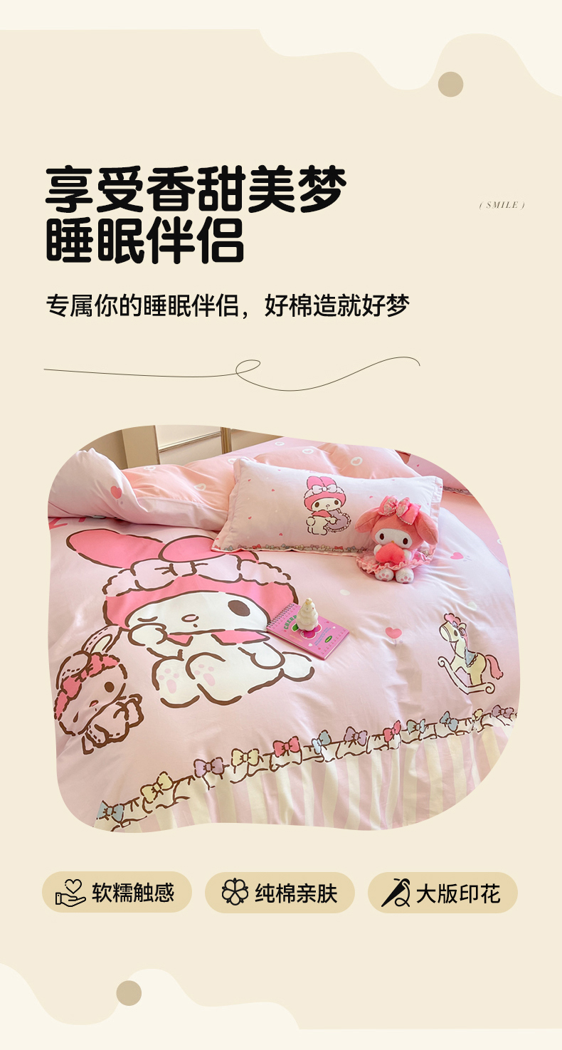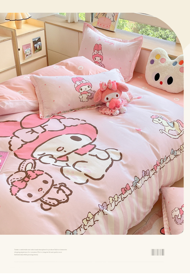当前位置: 91家纺网 > 商品网购 > 床品套件 > 四件套 > 全棉普通四件套 > 博雅 2025新款三丽鸥大版印花全棉四件套专版花型 全棉大版(升级款信封枕)木马美乐蒂