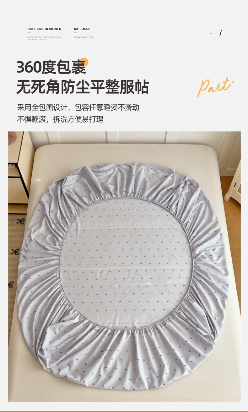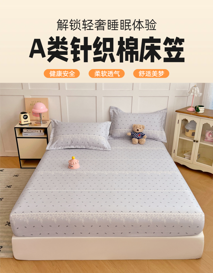 • 91家纺网 家纺一手货源 找家纺 梦舒羽 2025新款针织棉双层纱双层纱床笠罩全包席梦思床垫保护罩 蝴蝶结