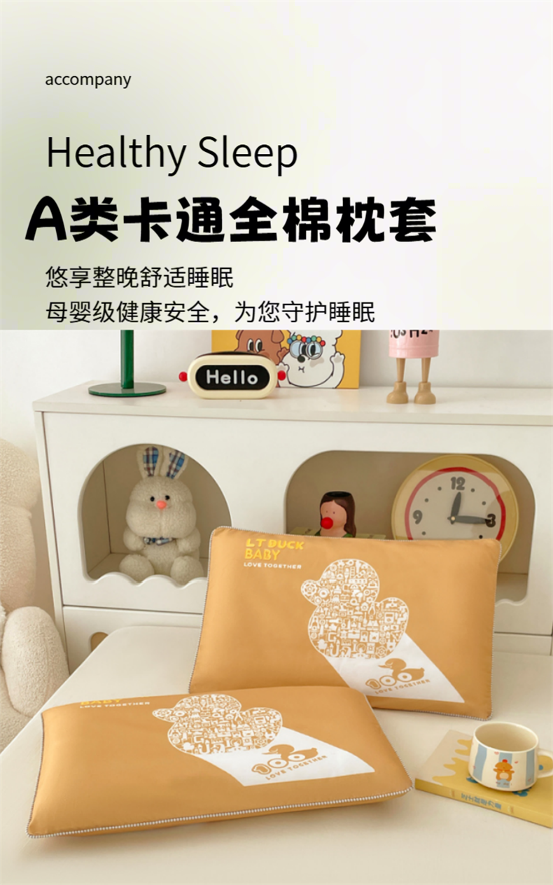 • 91家纺网 家纺一手货源 找家纺 圣比熊 2025新款正版授权控价19元起 全棉枕套卡通枕芯套枕头内胆套儿童抱枕套 工程鸭