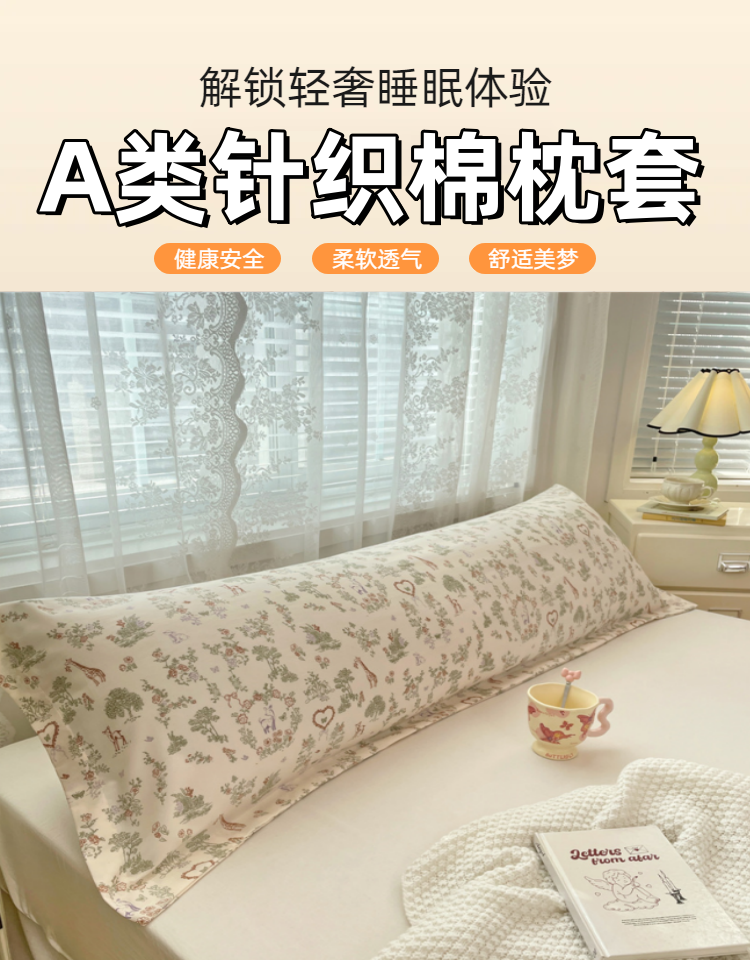 商品名称:圣比熊 2025新款针织棉双层纱枕头套亲肤双人枕套枕芯套枕头内胆套 森林小鹿