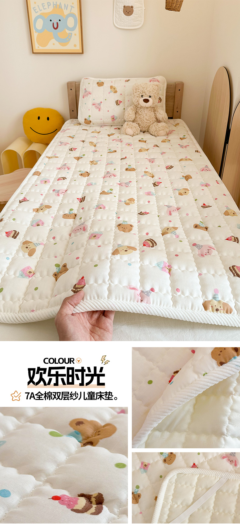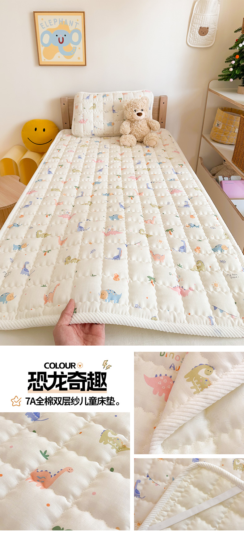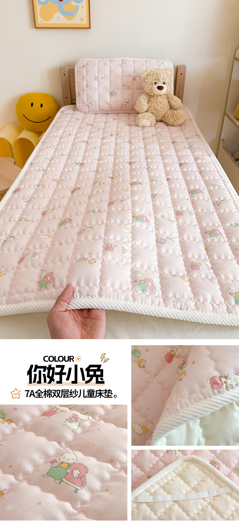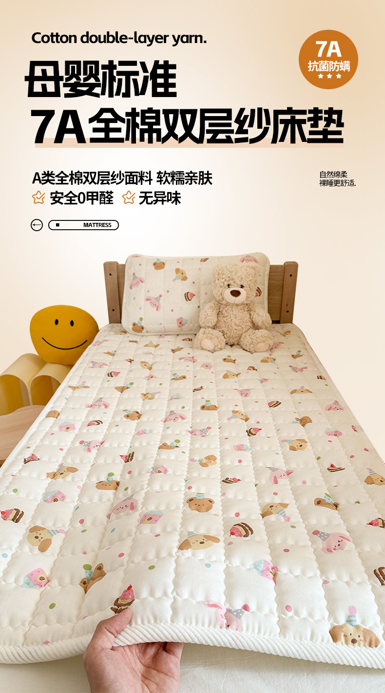 商品名称:(总)嗨生活 2025新款7A抗菌全棉双层纱床垫 床褥 幼儿园床垫 儿童床垫 支持定做