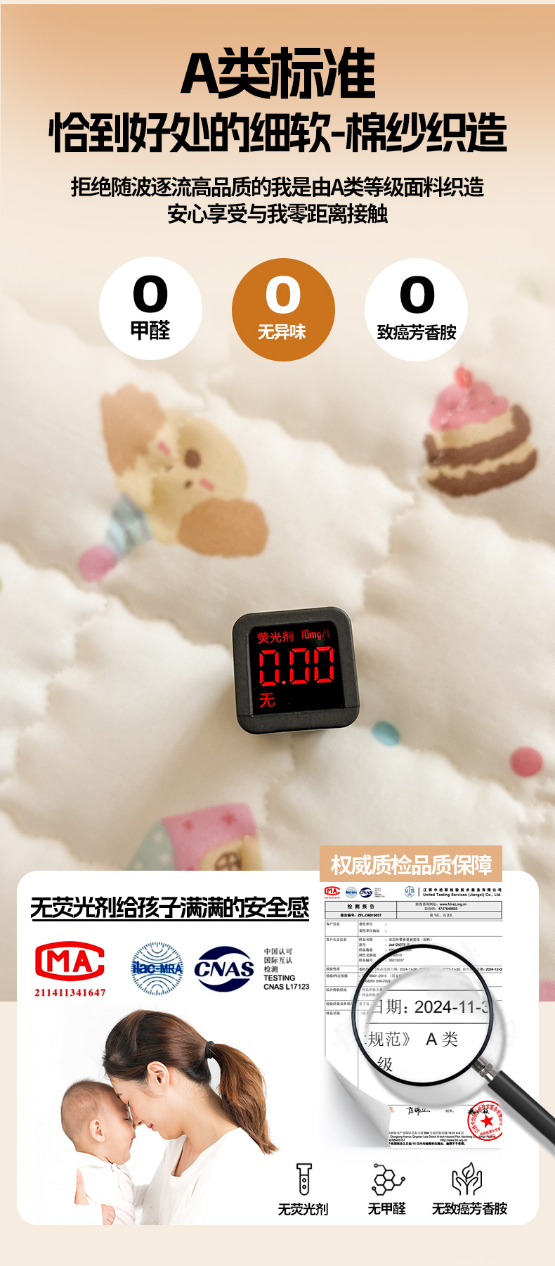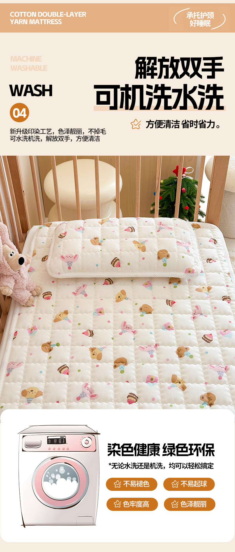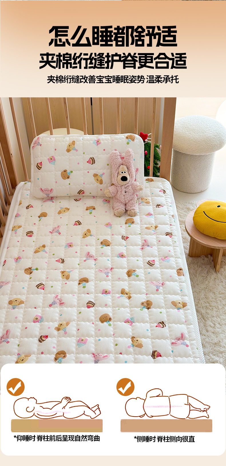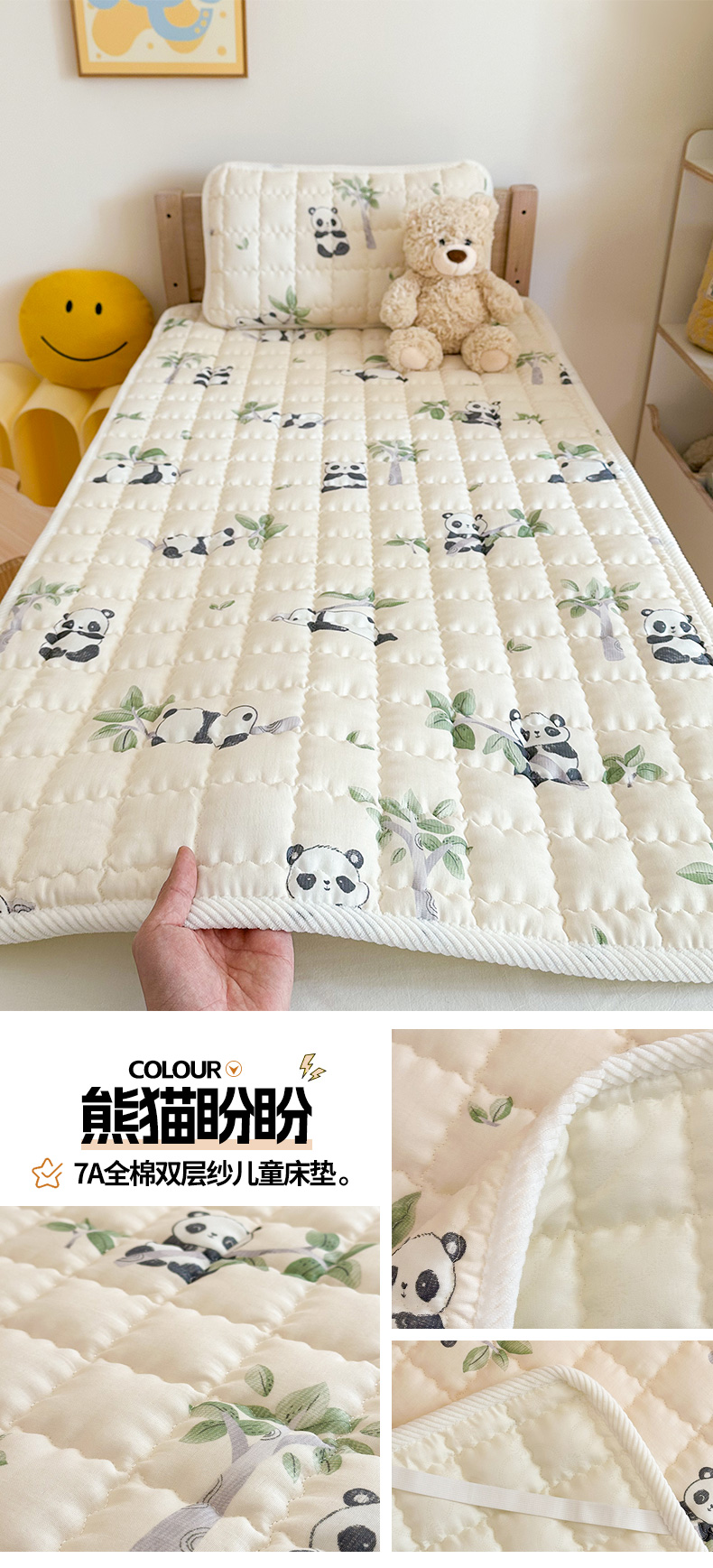 商品名称:(总)嗨生活 2025新款7A抗菌全棉双层纱床垫 床褥 幼儿园床垫 儿童床垫 支持定做