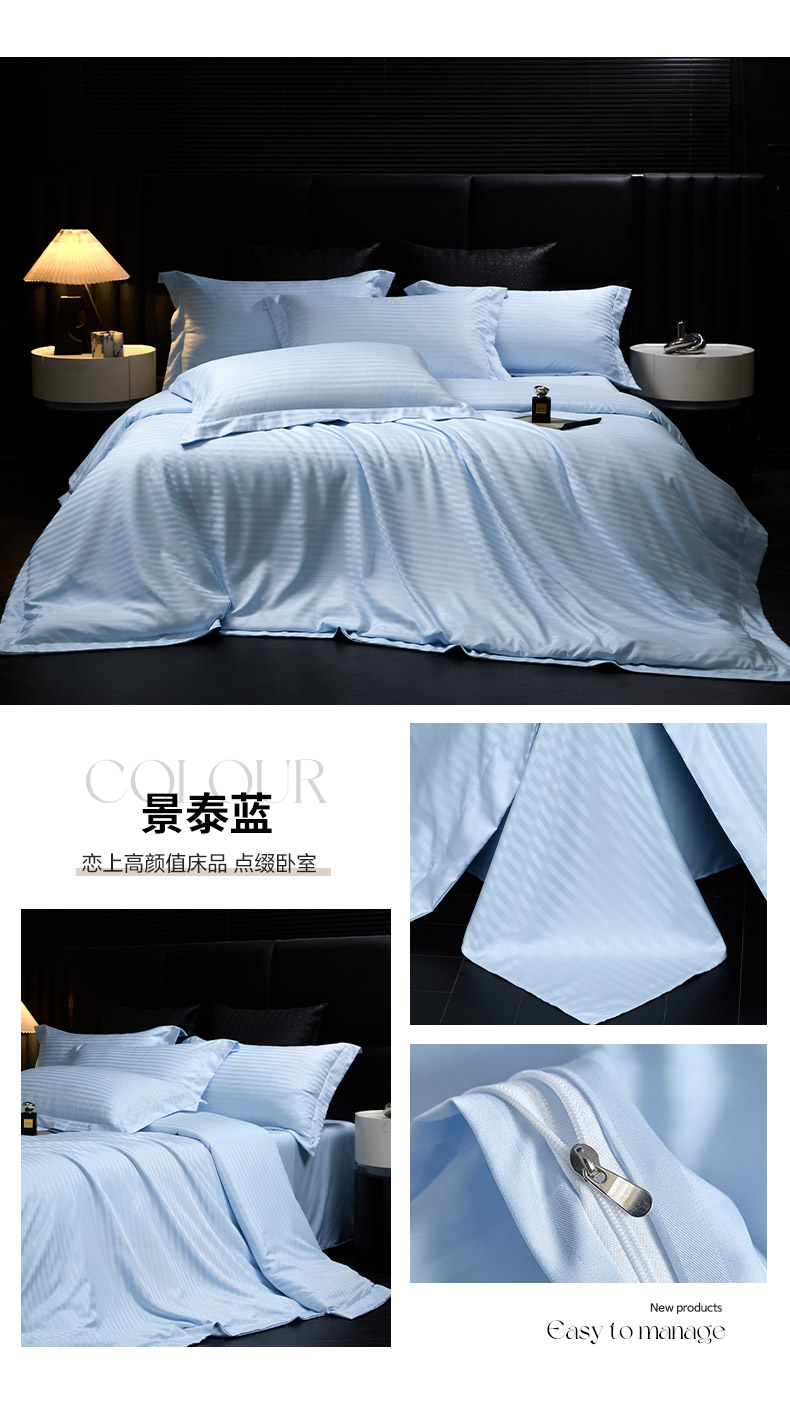 丝印良品 2025新款四季款高端贡缎条纹水洗真丝四件套 景泰蓝