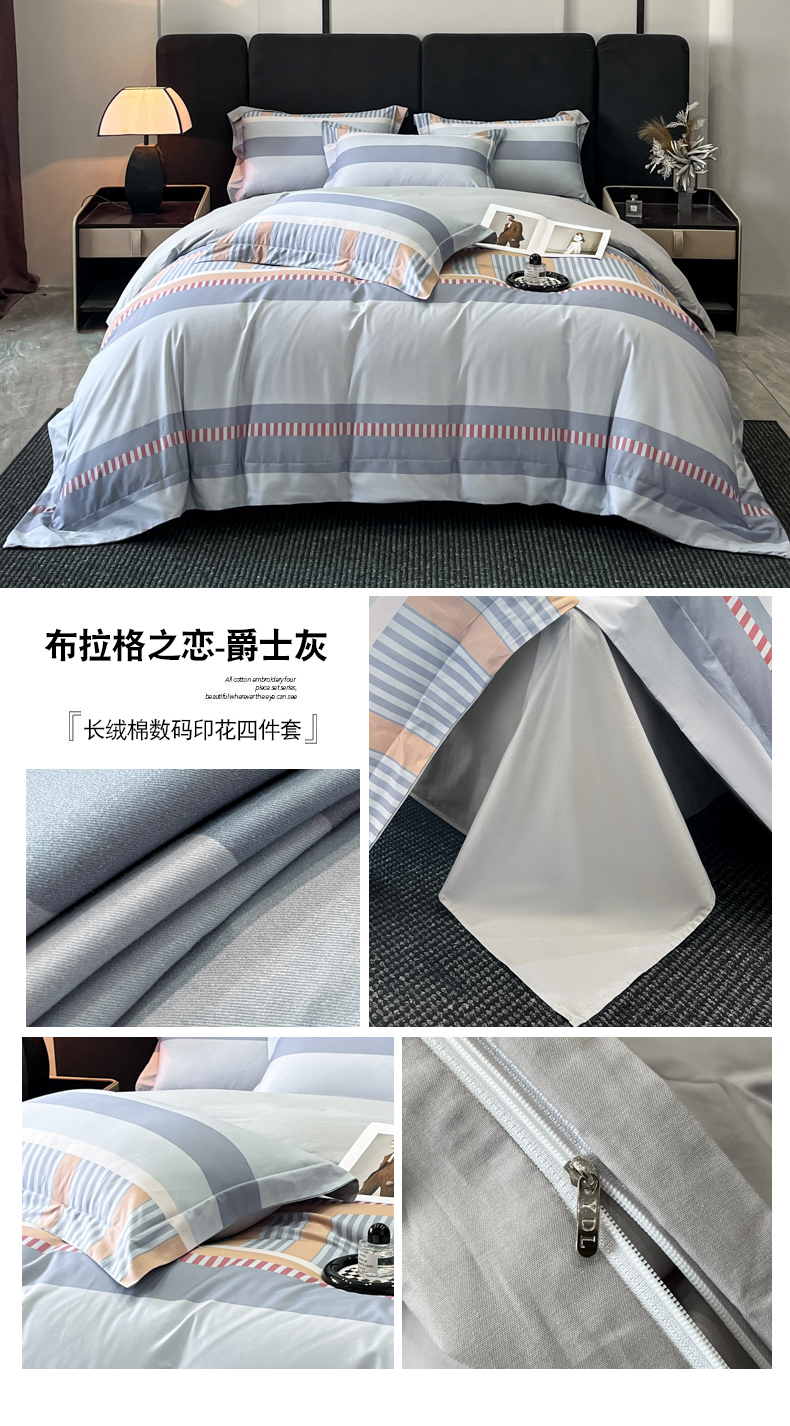 商品名称:新方向 2025新款全棉长绒棉数码印花四件套-布拉格之恋 布拉格之恋-蓝