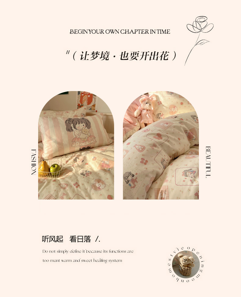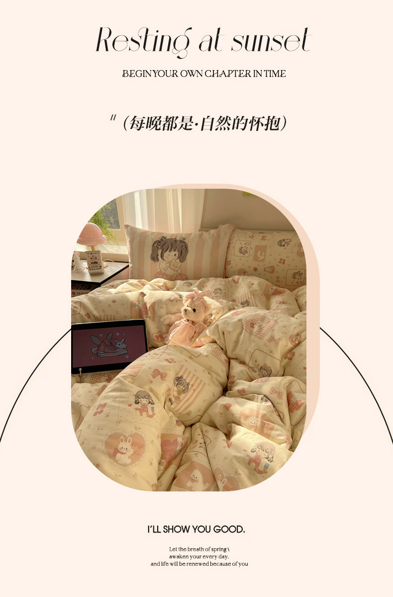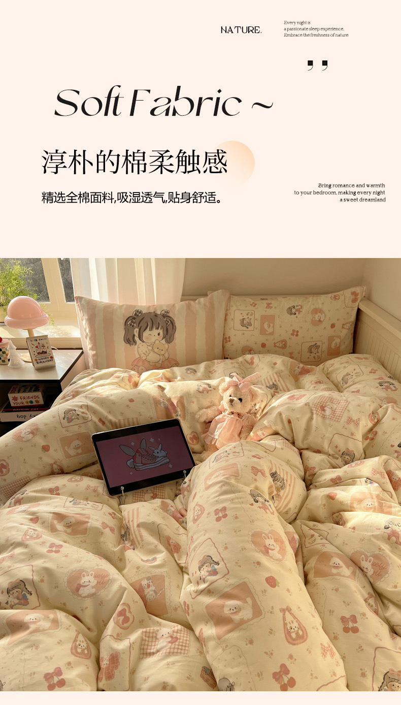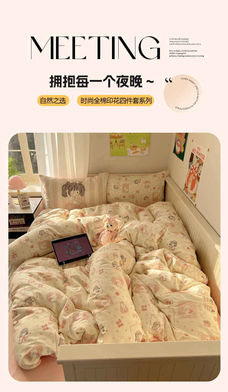 商品名称:丽涵 2025新款全棉13372小清新印花四件套 公主的萌宠