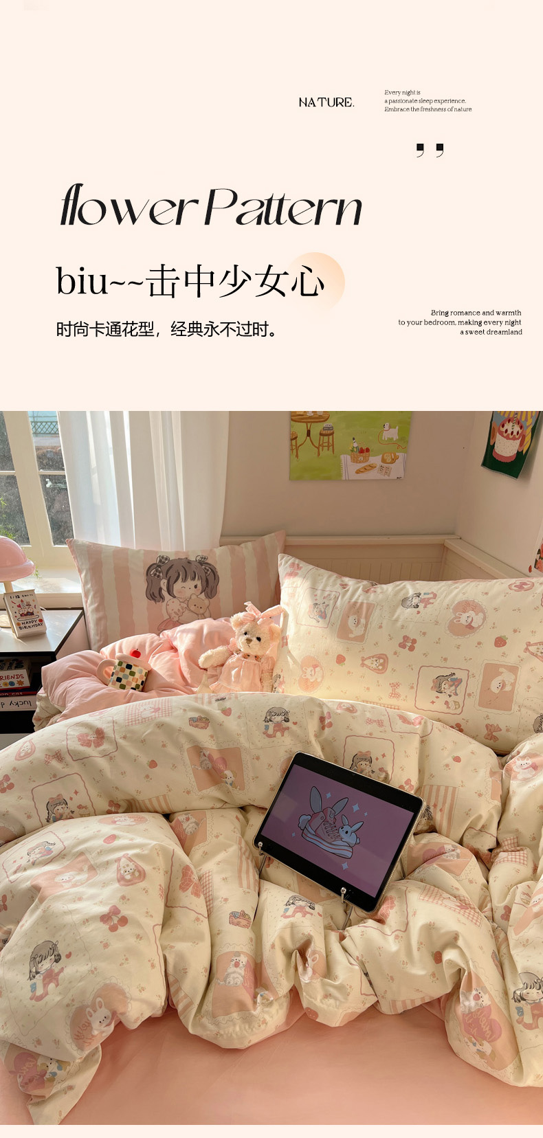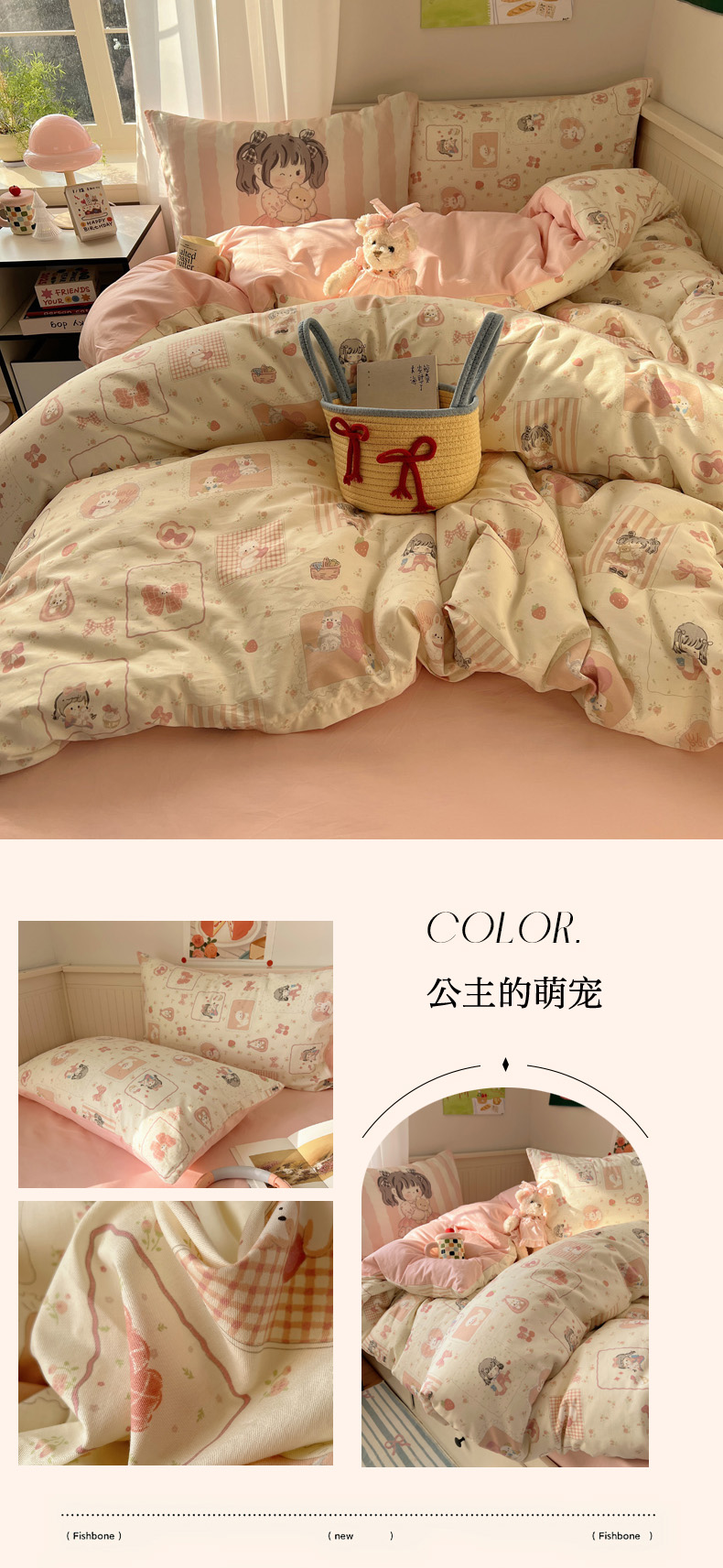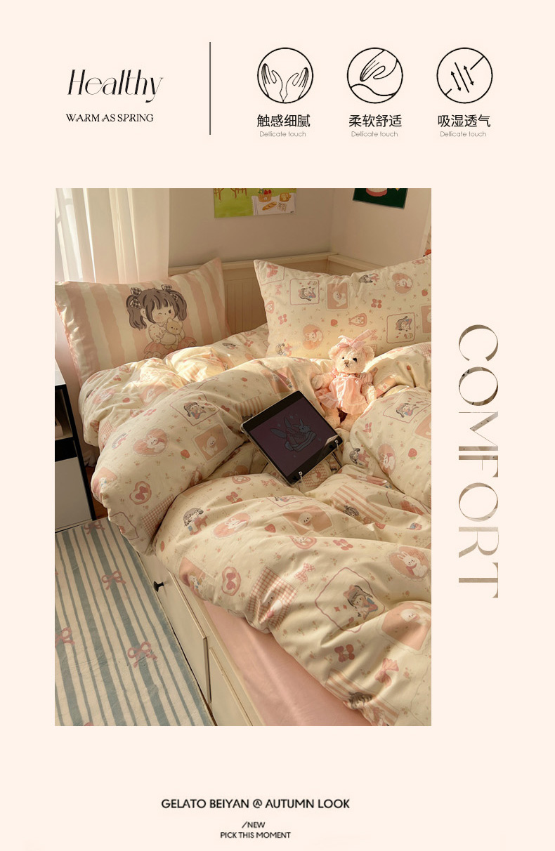 商品名称:丽涵 2025新款全棉13372小清新印花四件套 公主的萌宠
