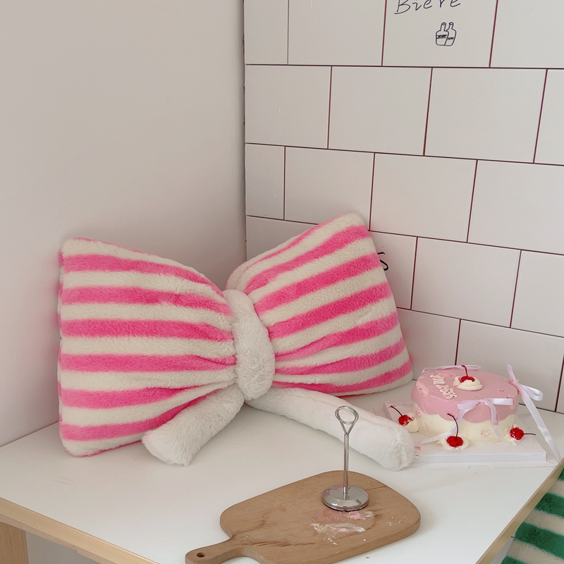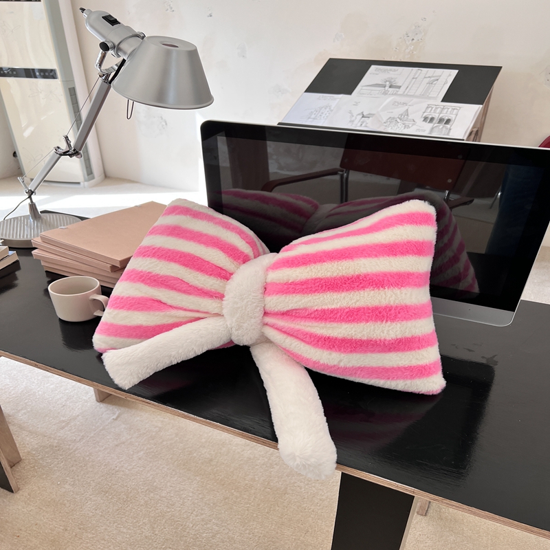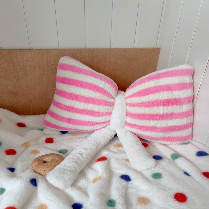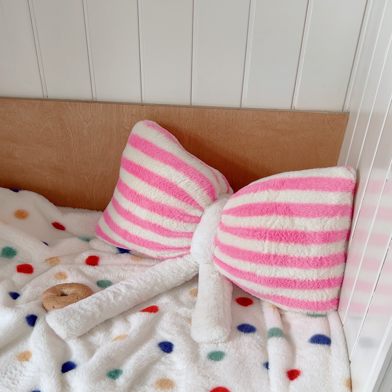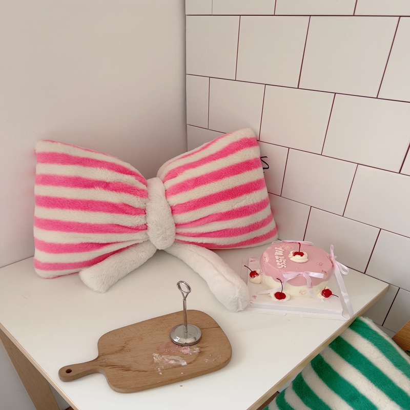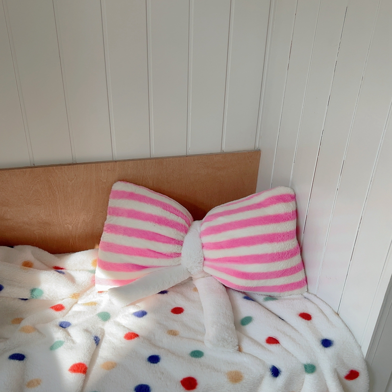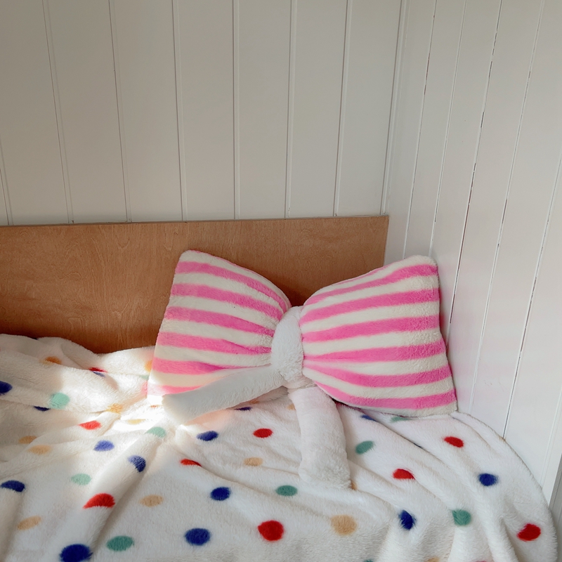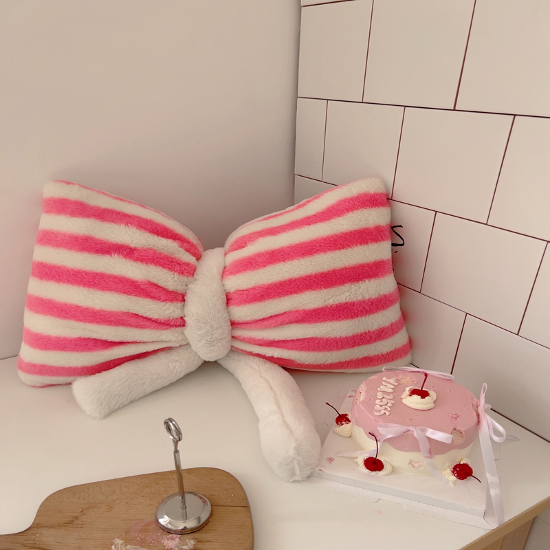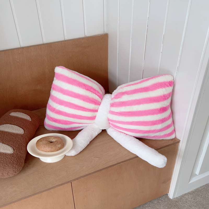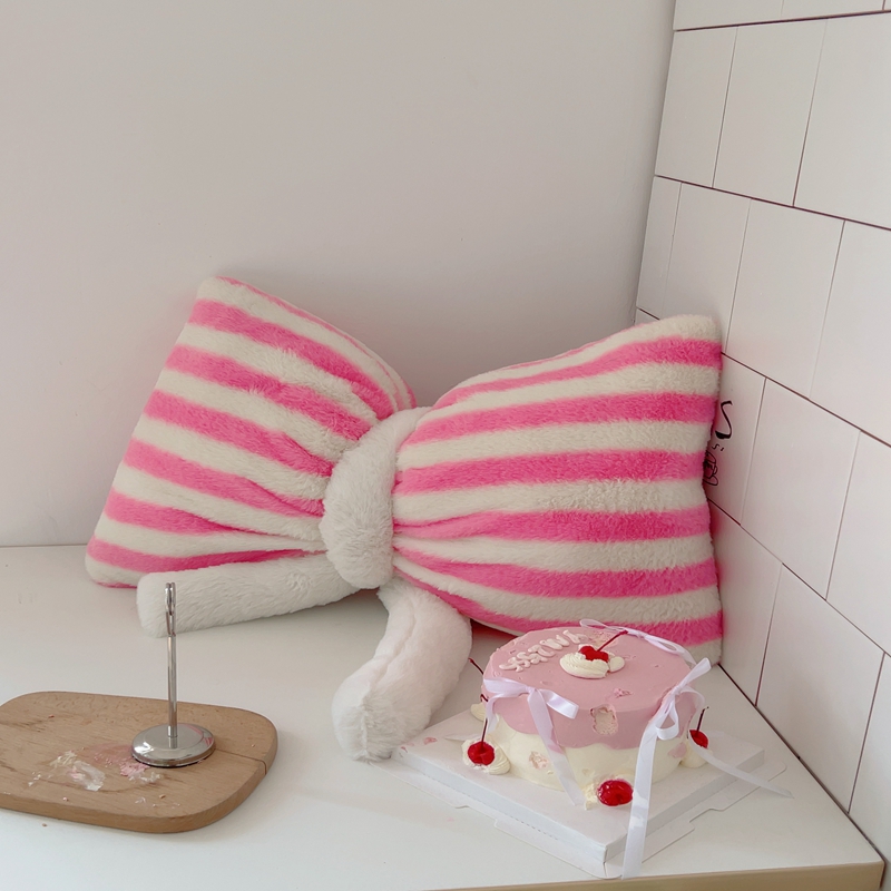 桔子家纺 2025新款蝴蝶结抱枕 粉条纹蝴蝶结