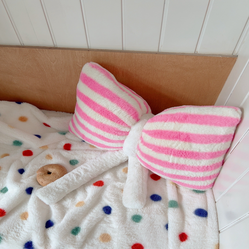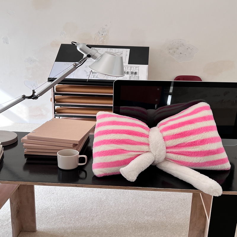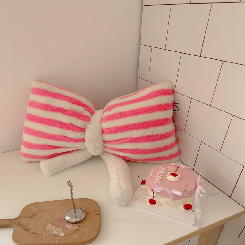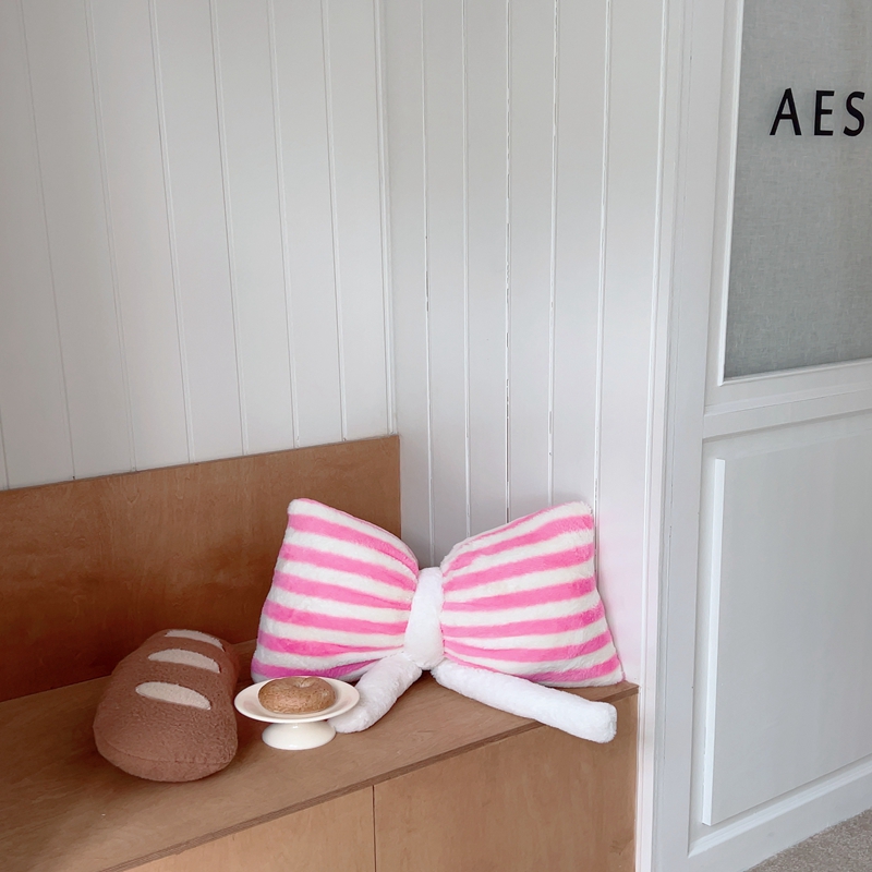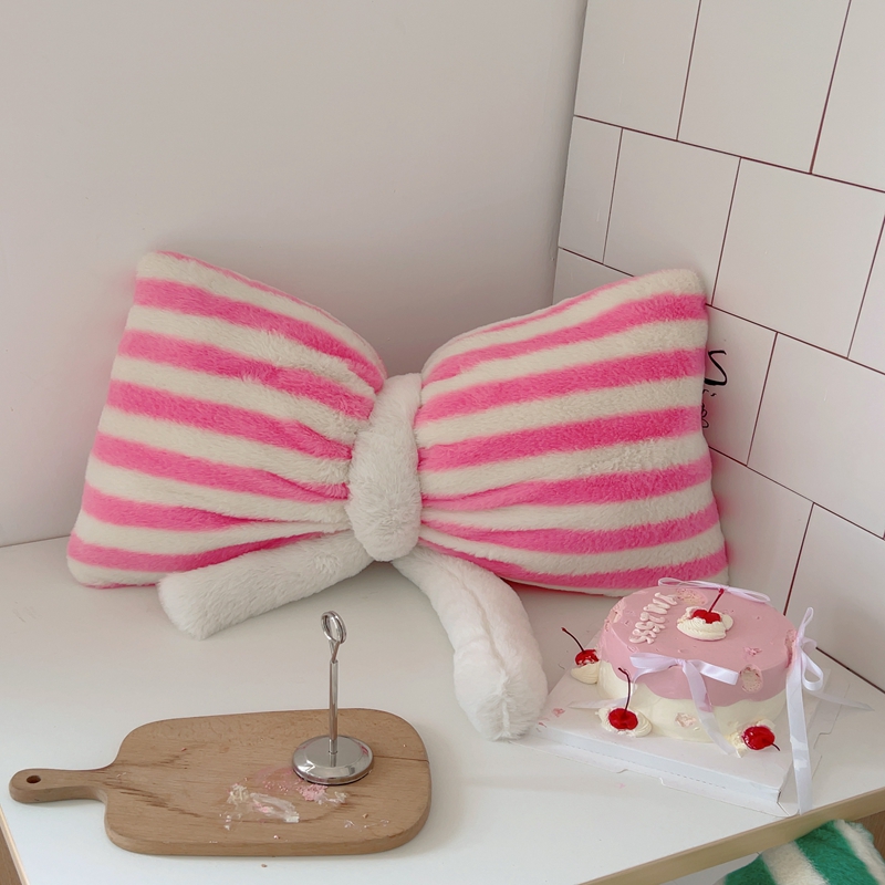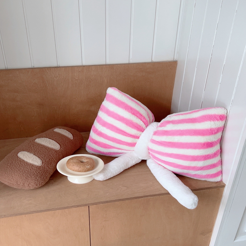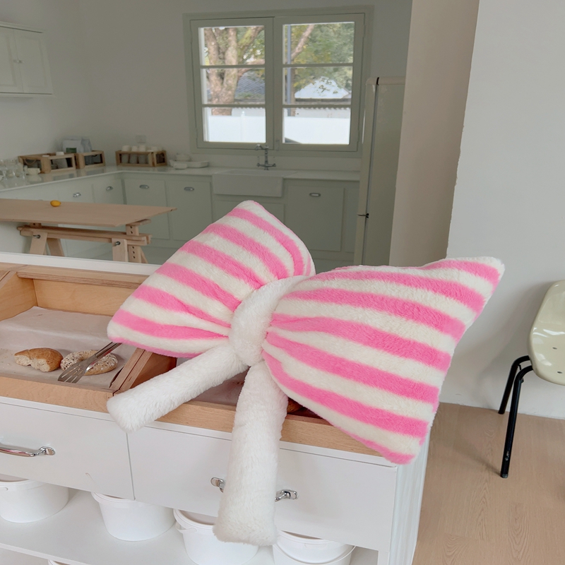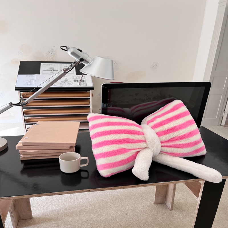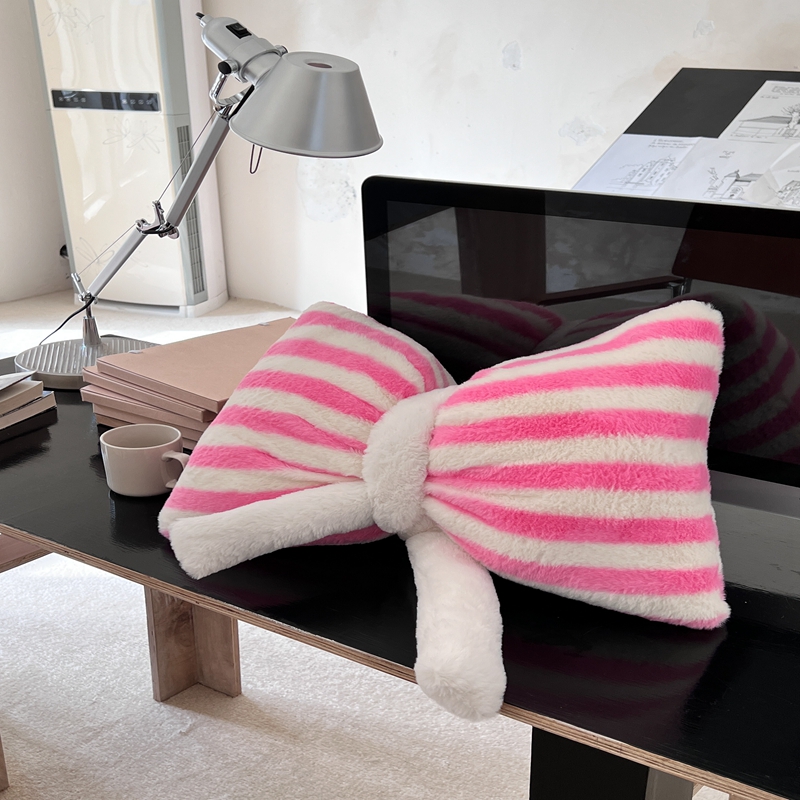 桔子家纺 2025新款蝴蝶结抱枕 粉条纹蝴蝶结