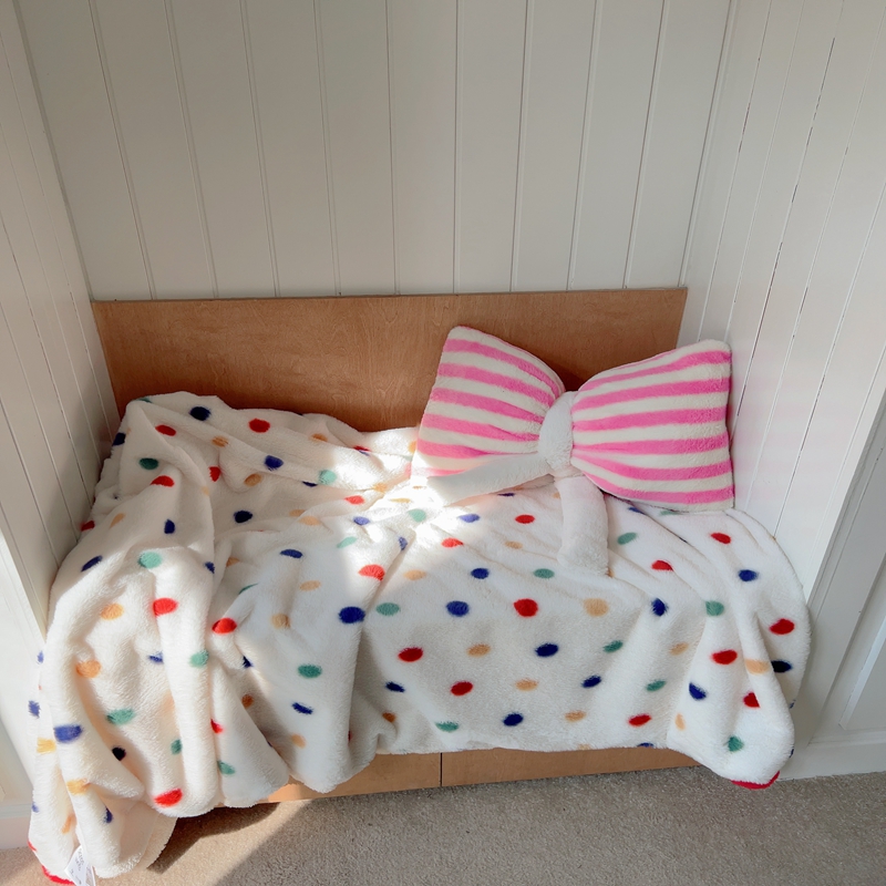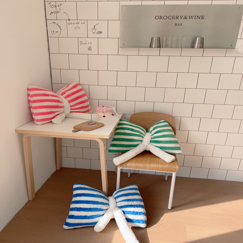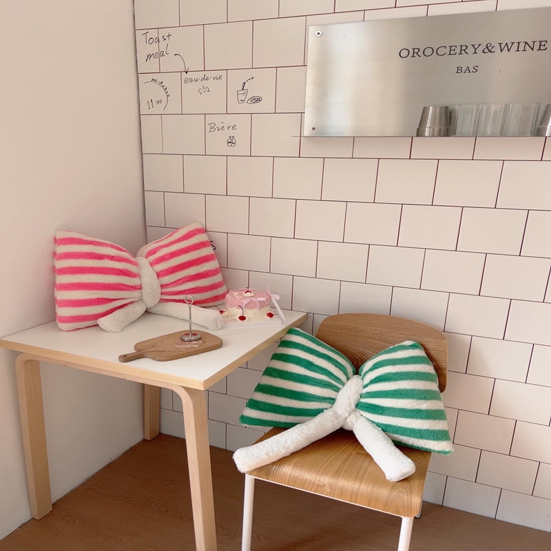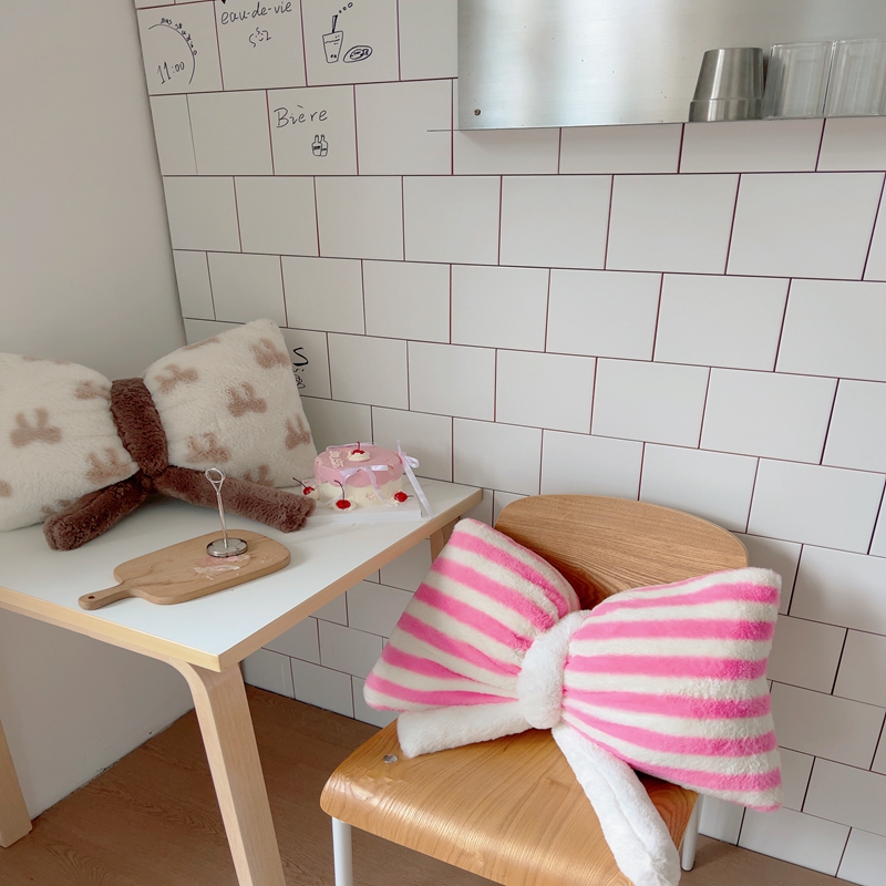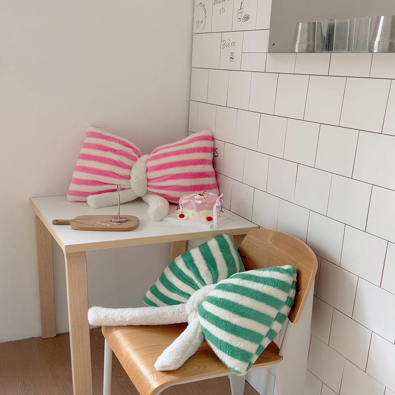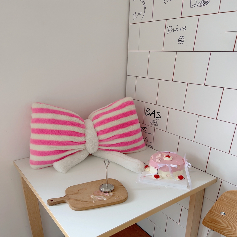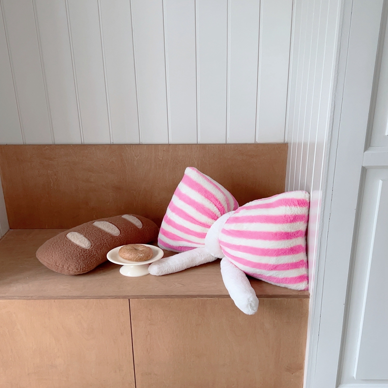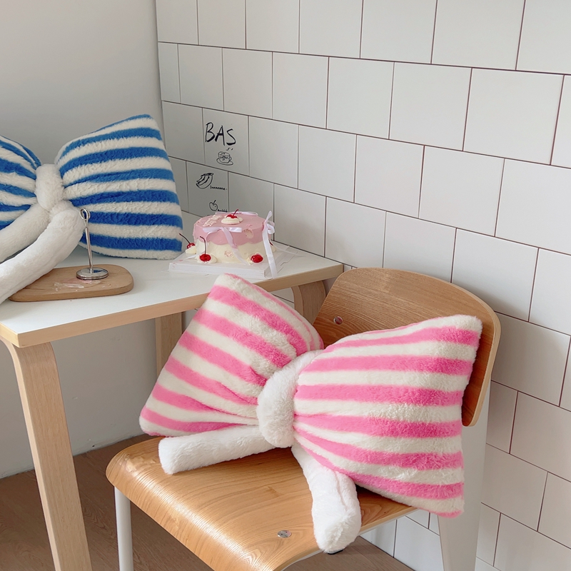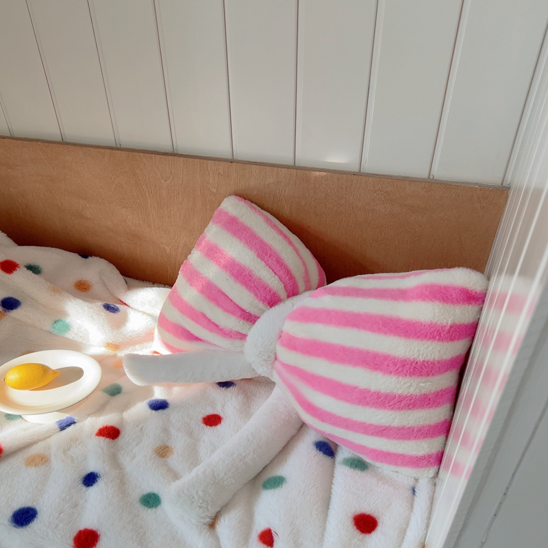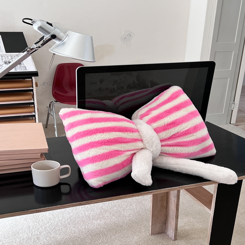 桔子家纺 2025新款蝴蝶结抱枕 粉条纹蝴蝶结
