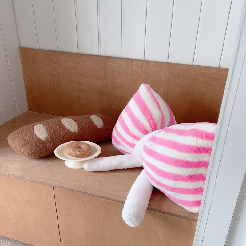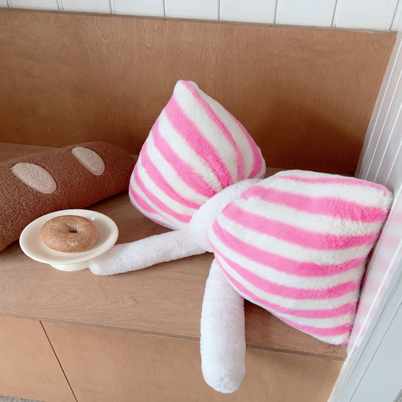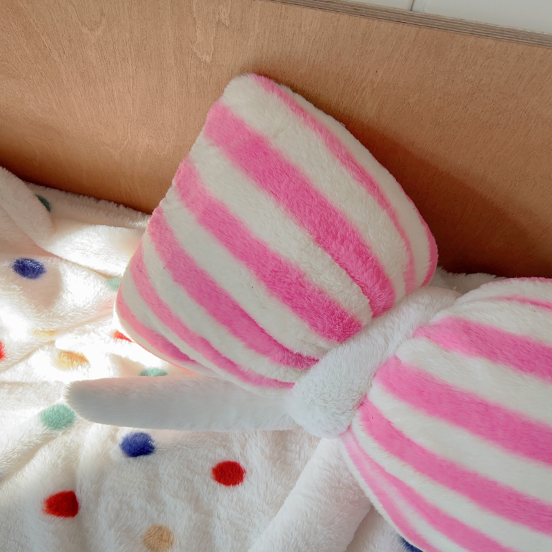 商品名称:桔子家纺 2025新款蝴蝶结抱枕 粉条纹蝴蝶结