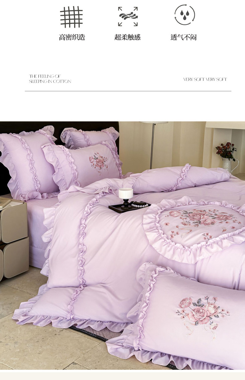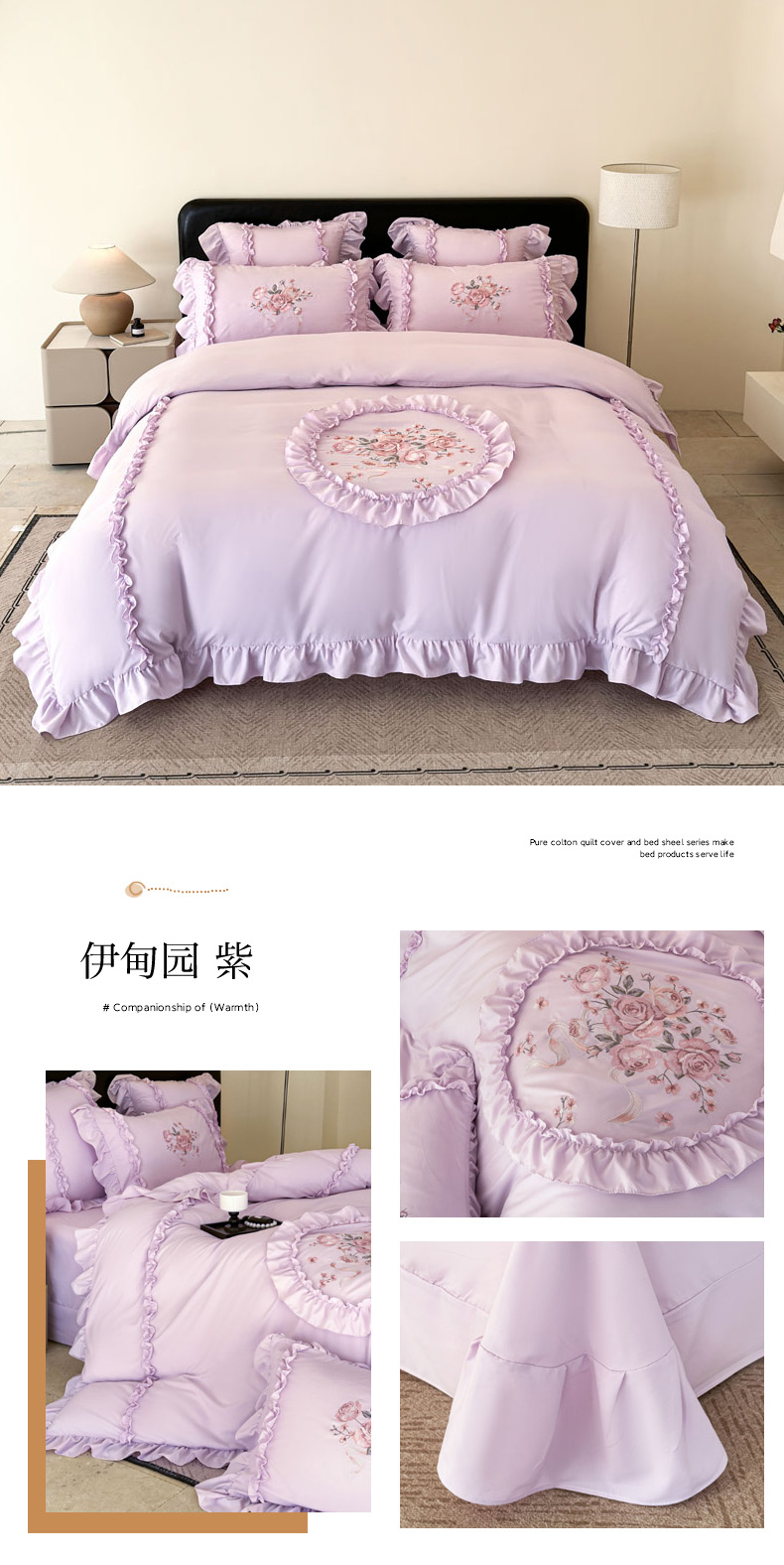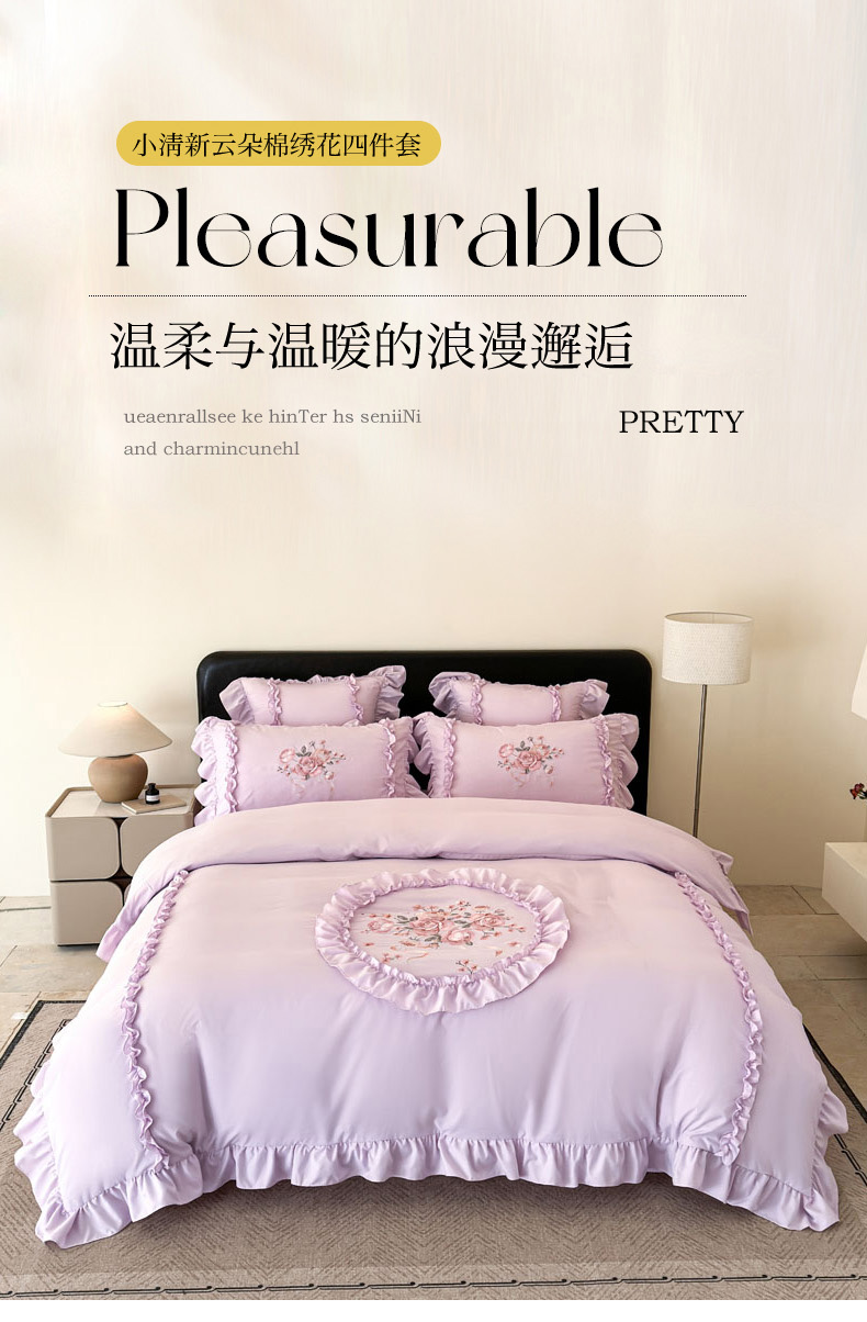当前位置: 91家纺网 > 商品网购 > 床品套件 > 四件套 > 其它四件套 > 米可 2025新款云朵棉绣花工艺款四件套-伊甸园 伊甸园-紫
