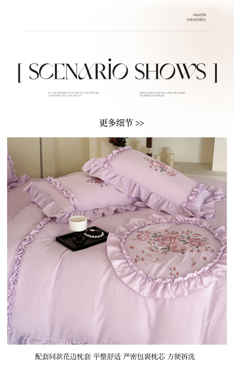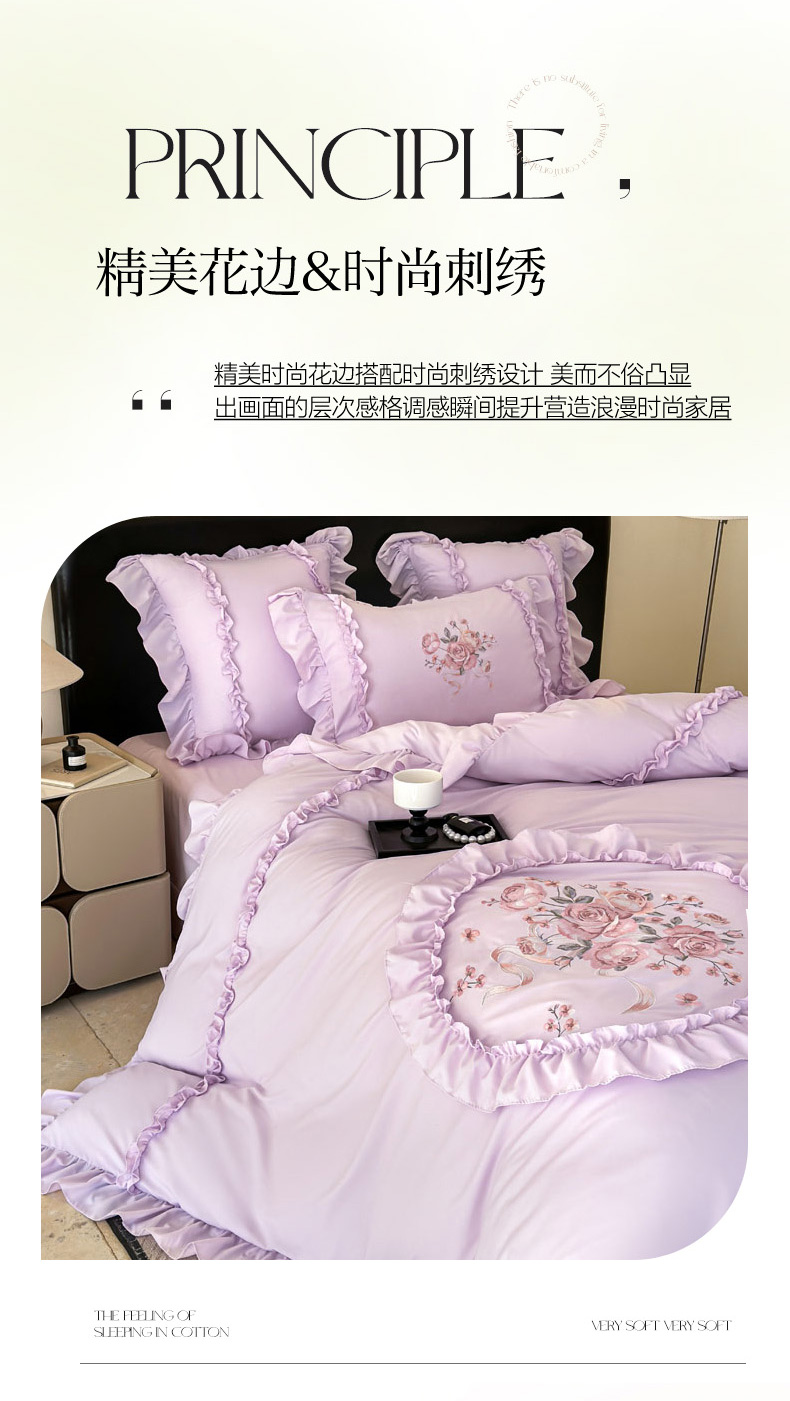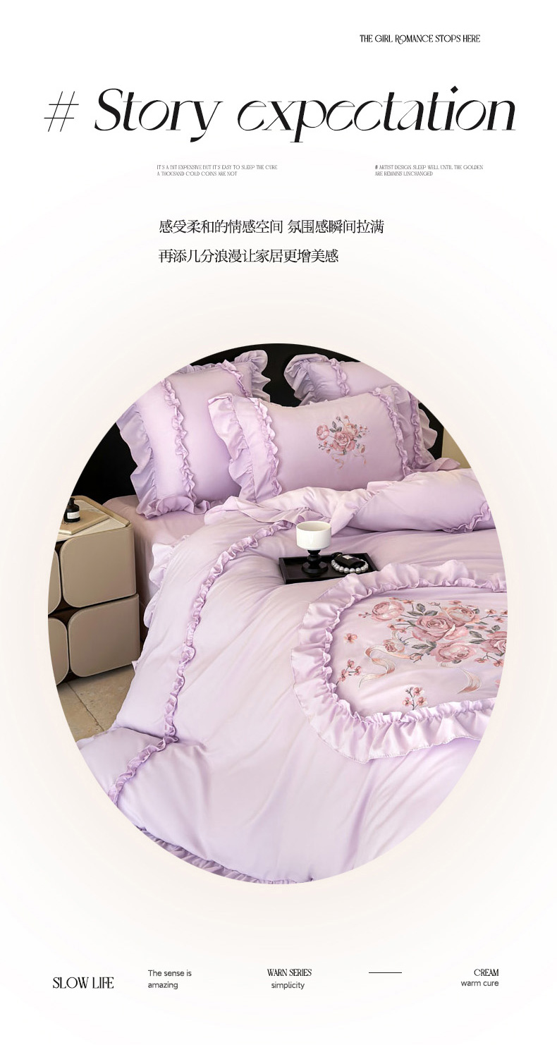 当前位置: 91家纺网 > 商品网购 > 床品套件 > 四件套 > 其它四件套 > 米可 2025新款云朵棉绣花工艺款四件套-伊甸园 伊甸园-紫