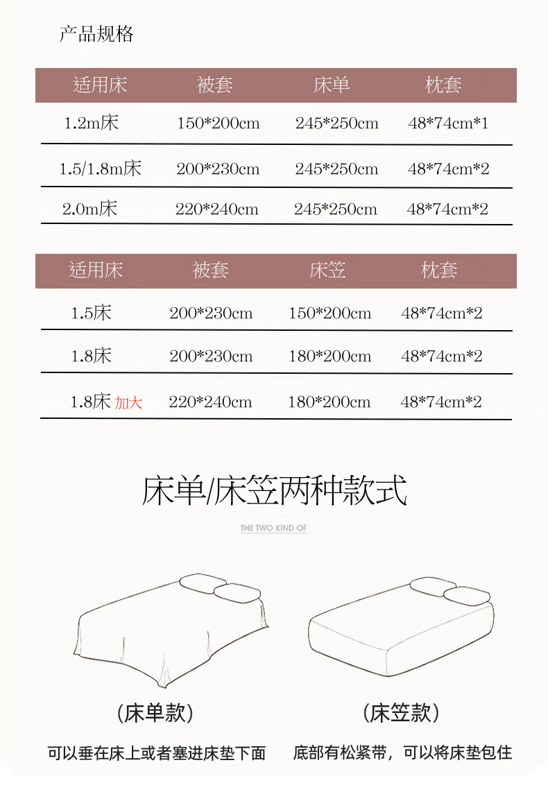 1.8m被套加大床笠款四件套 | ¥115.00 |