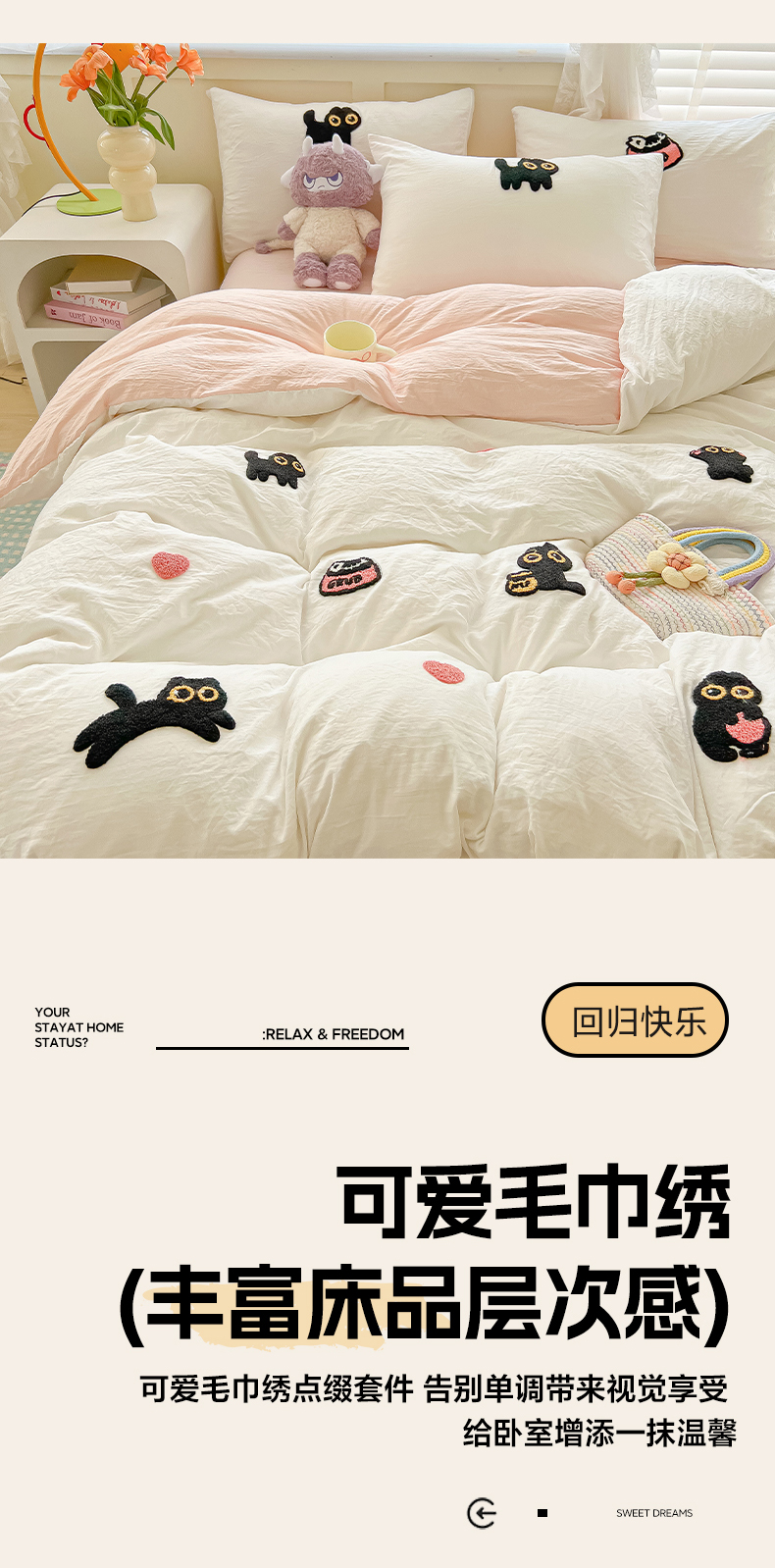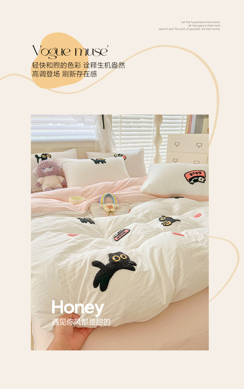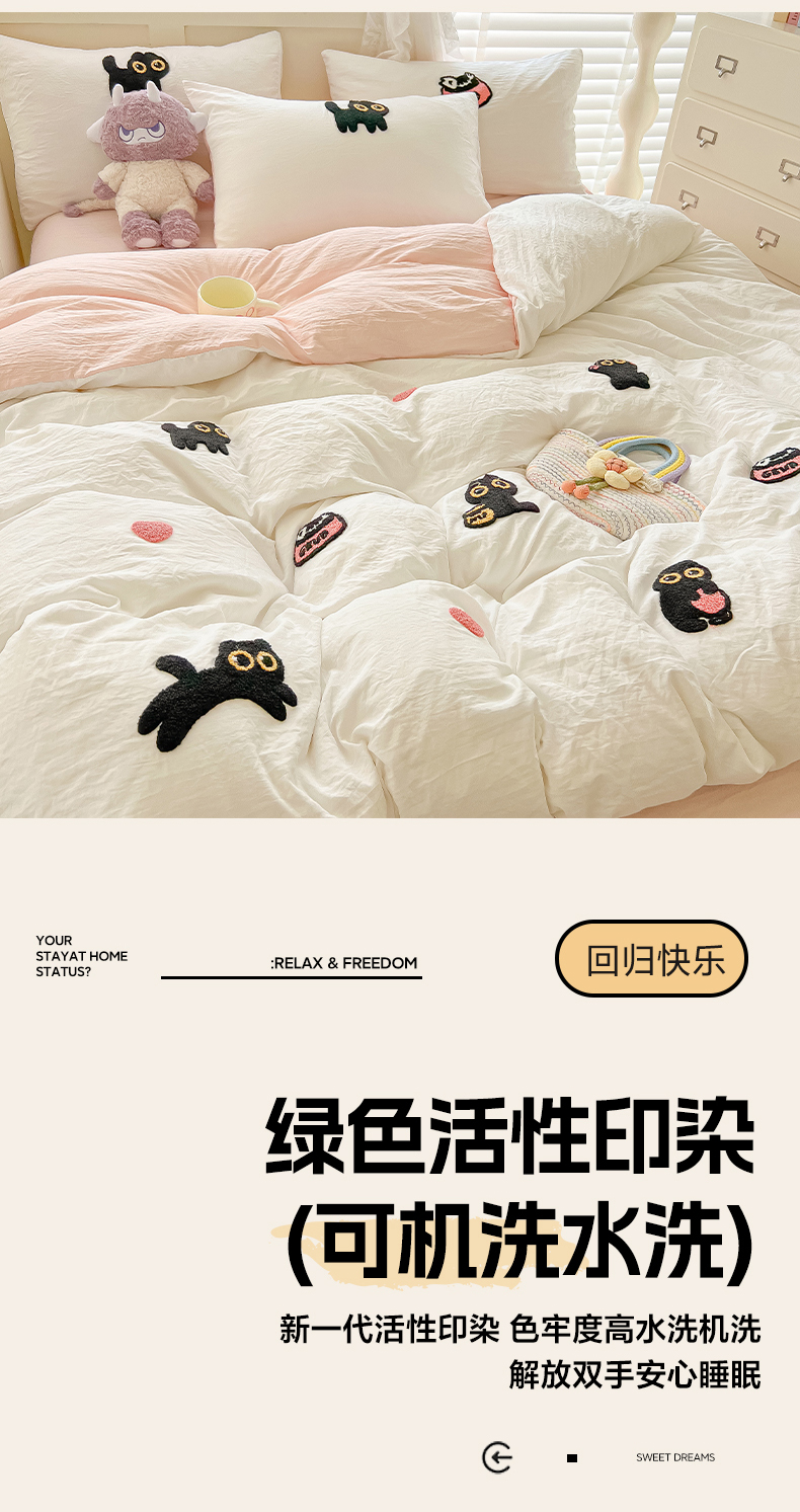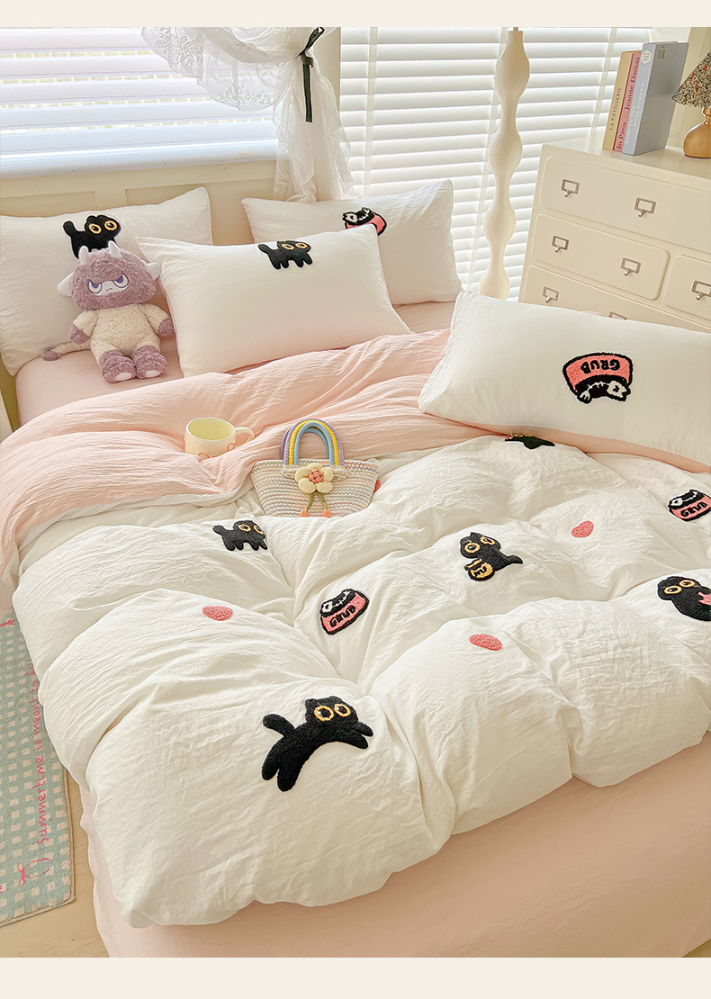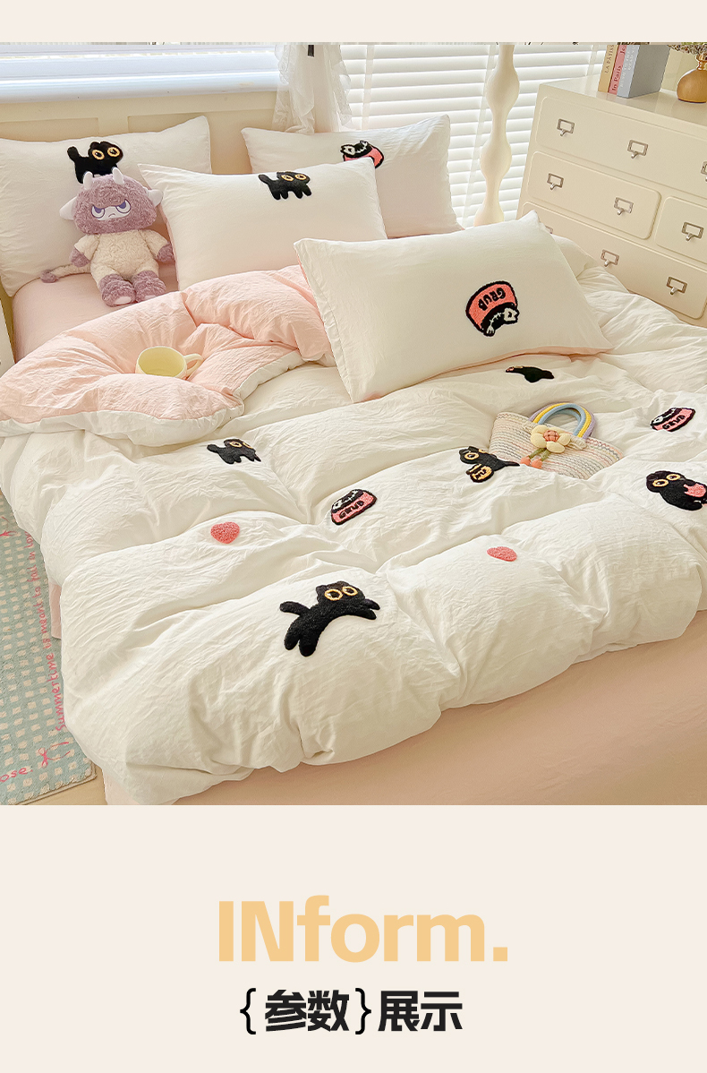 当前位置: 91家纺网 > 商品网购 > 床品套件 > 四件套 > 全棉普通四件套 > 韩巢家纺 2025款四季通用超柔水洗棉毛巾绣四件套-幸运猫系列 幸运猫白浅粉