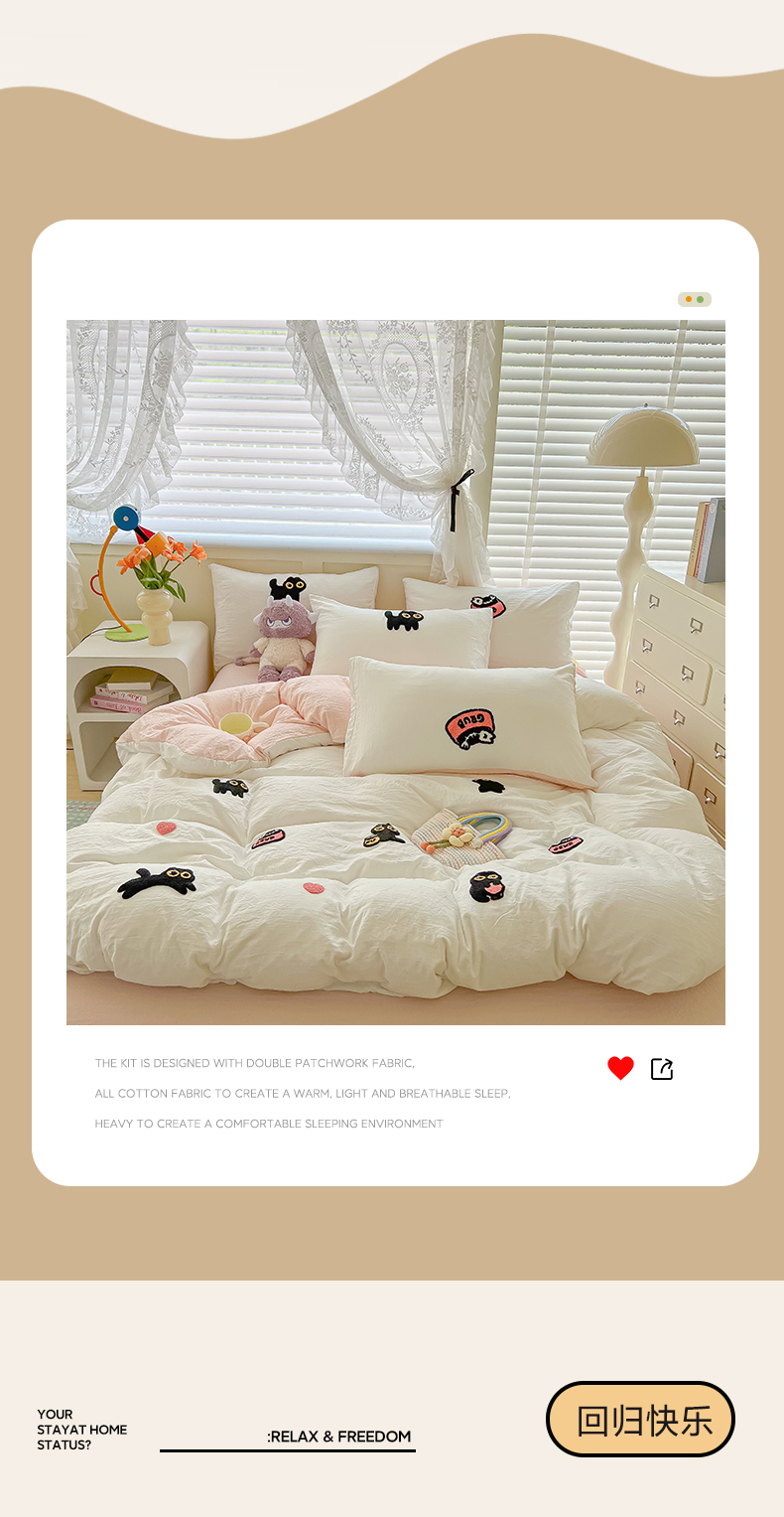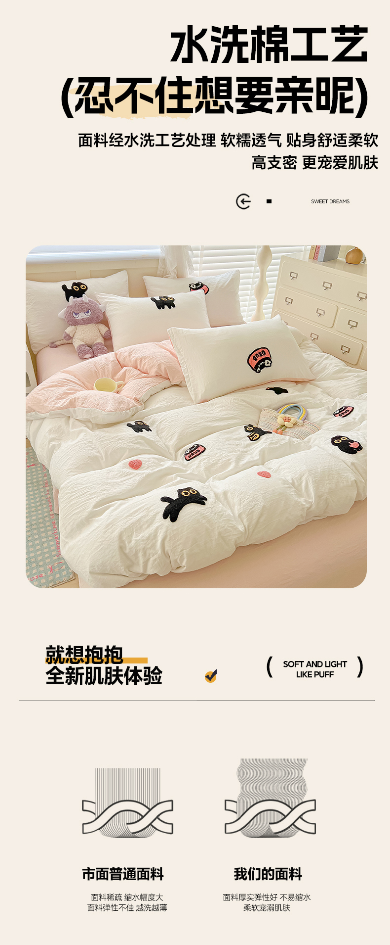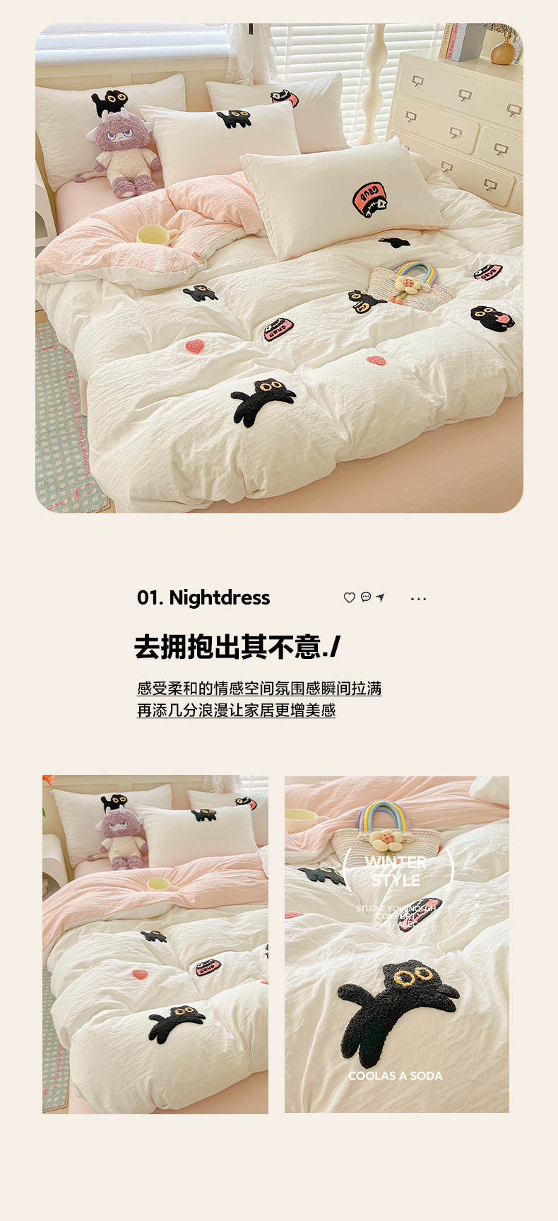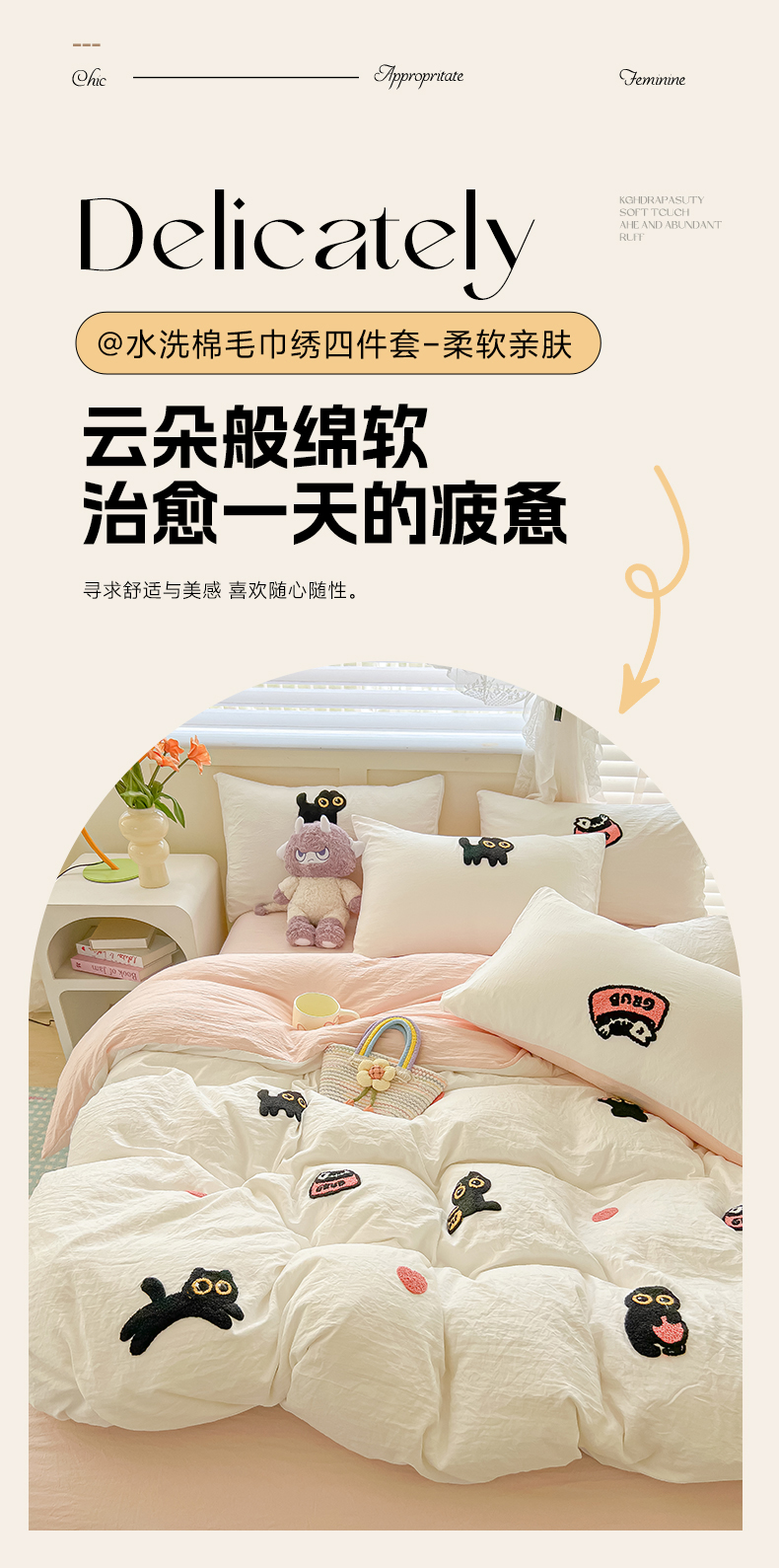 当前位置: 91家纺网 > 商品网购 > 床品套件 > 四件套 > 全棉普通四件套 > 韩巢家纺 2025款四季通用超柔水洗棉毛巾绣四件套-幸运猫系列 幸运猫白浅粉