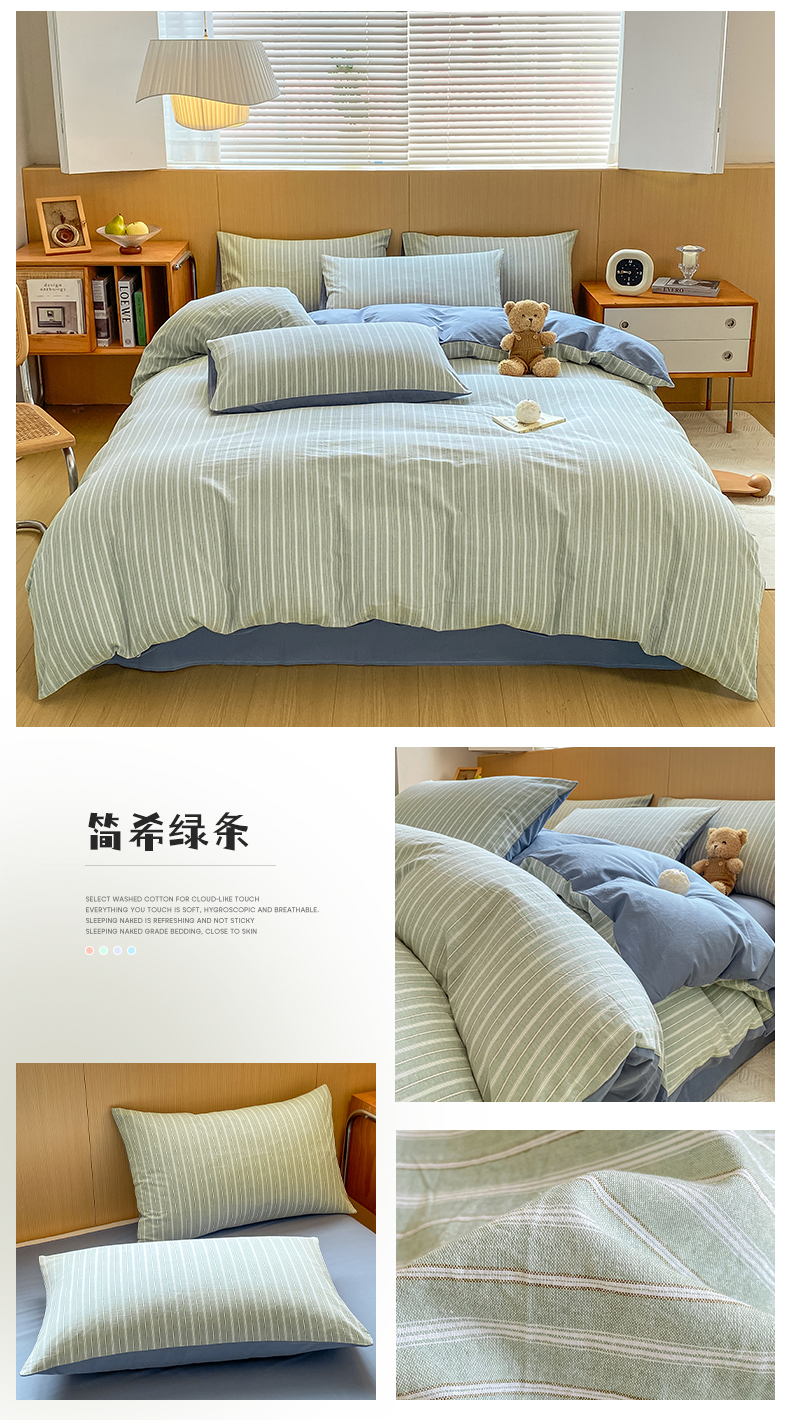 当前位置: 91家纺网 > 商品网购 > 床品套件 > 四件套 > 全棉普通四件套 > 恋人优选 2025新款条纹全棉水洗四件套 简希绿条