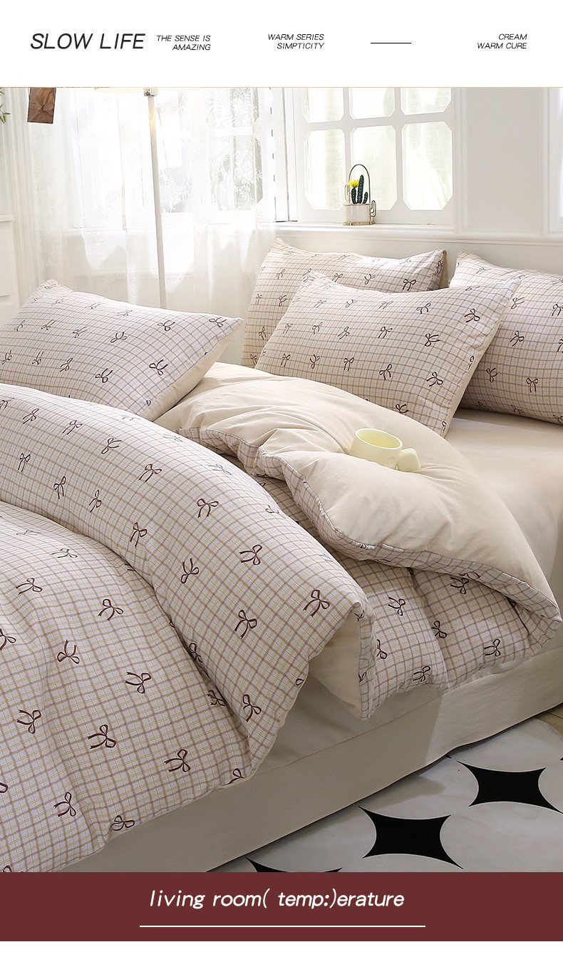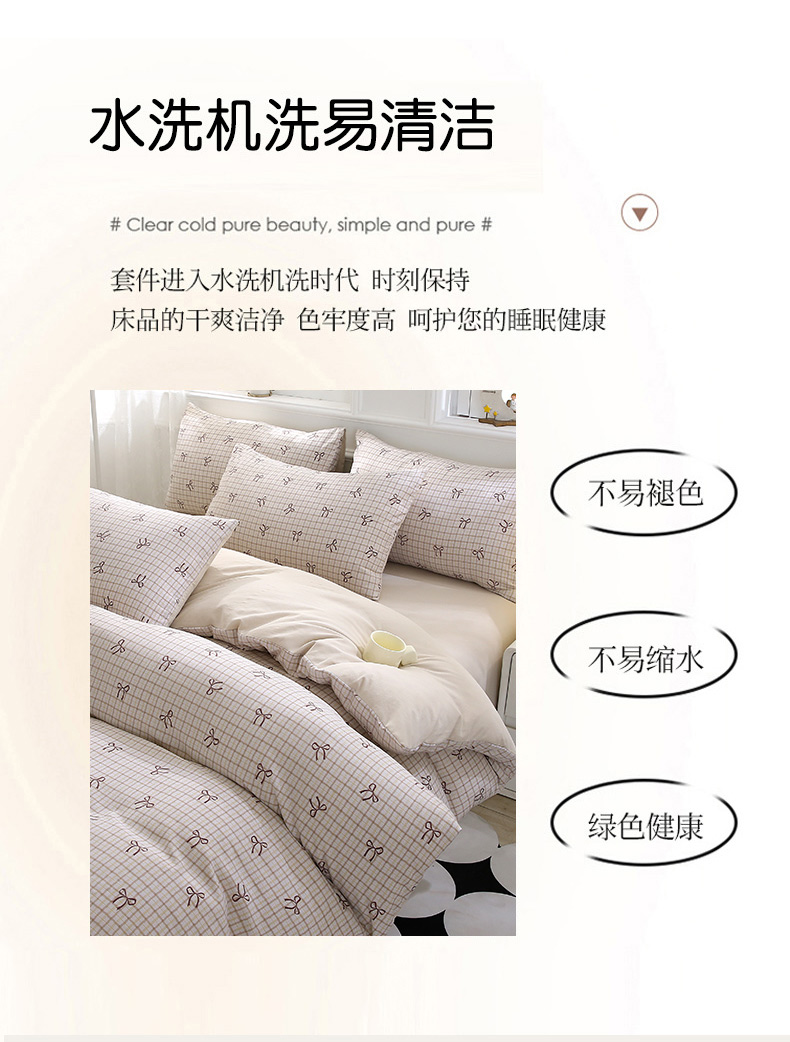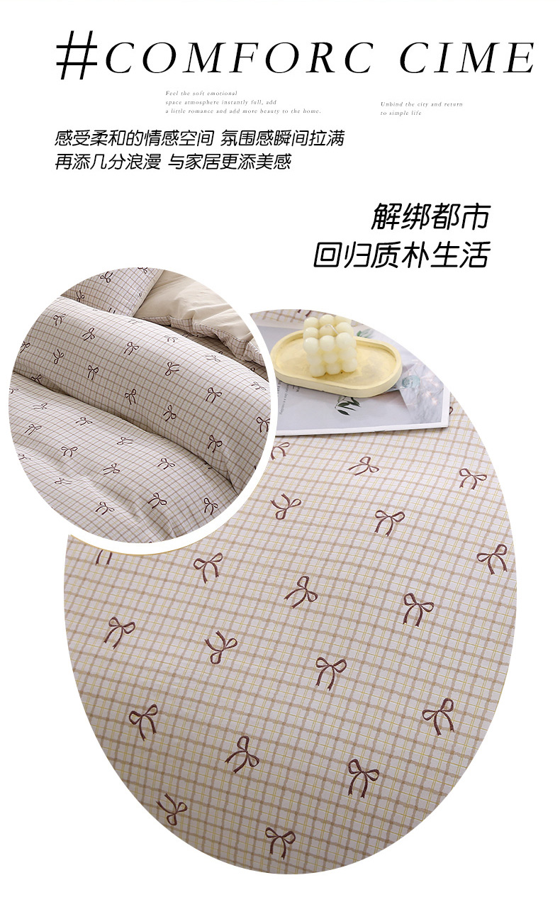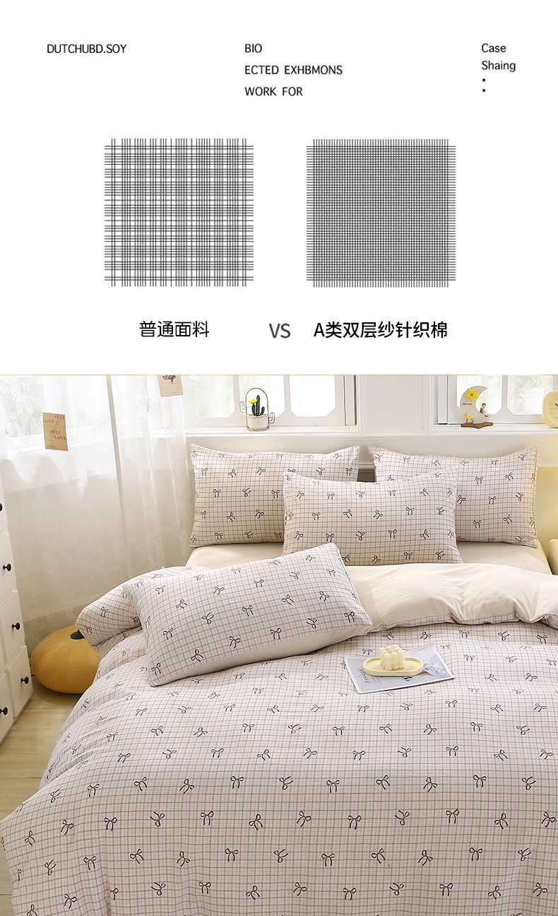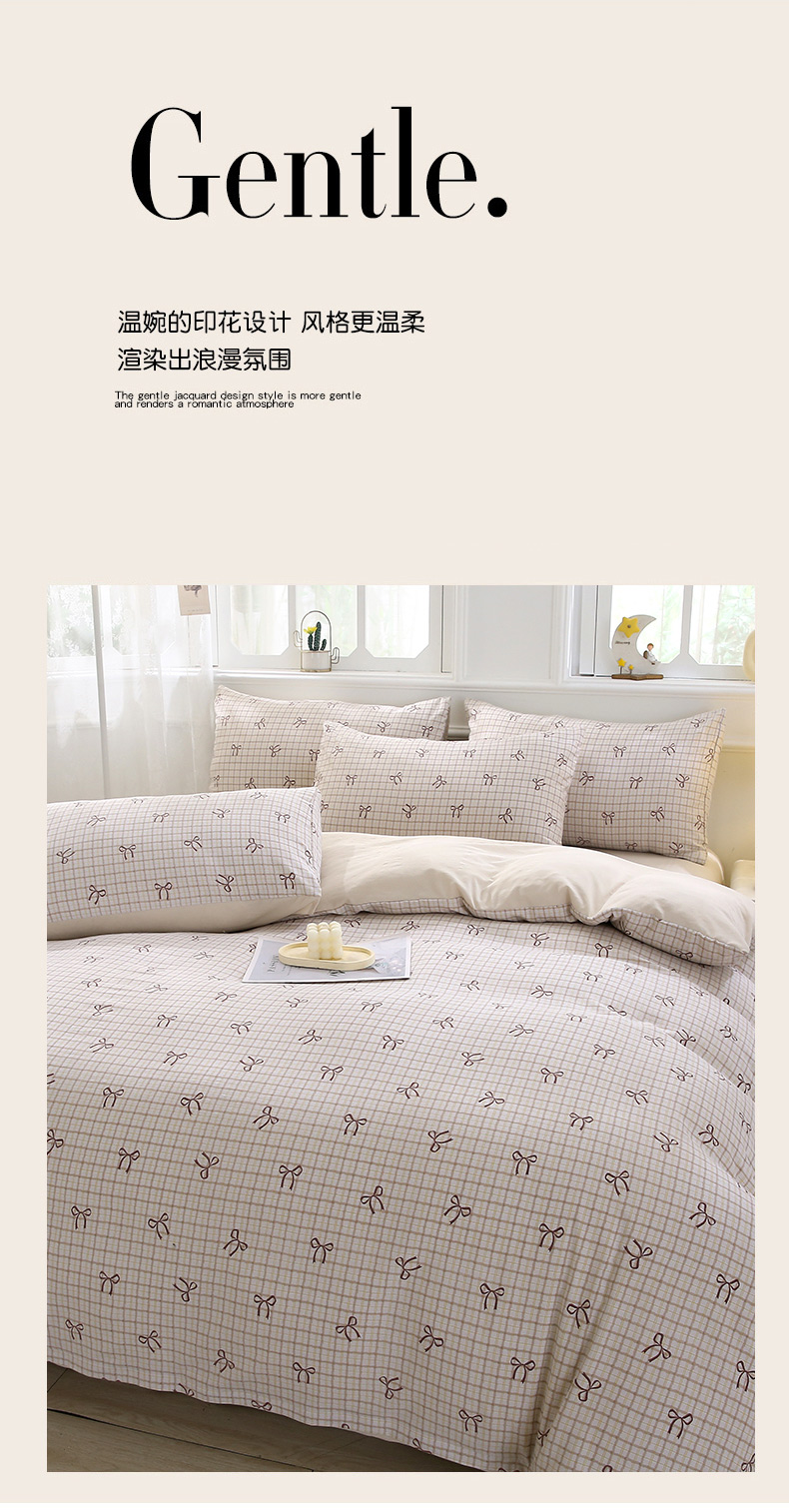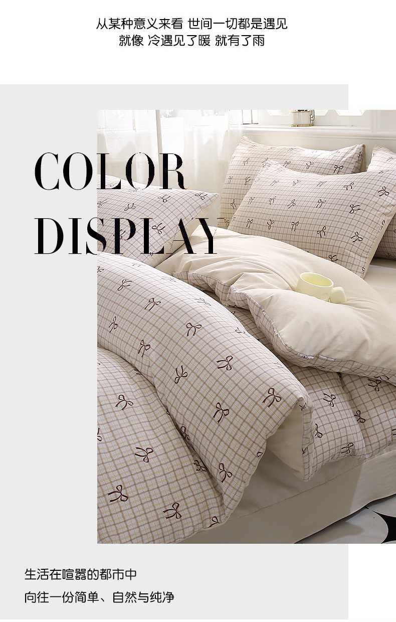 商品名称:织写 2025新款A类双层纱针织棉四件套床单四件套床单四件套小清新四件套 蝴蝶结-咖