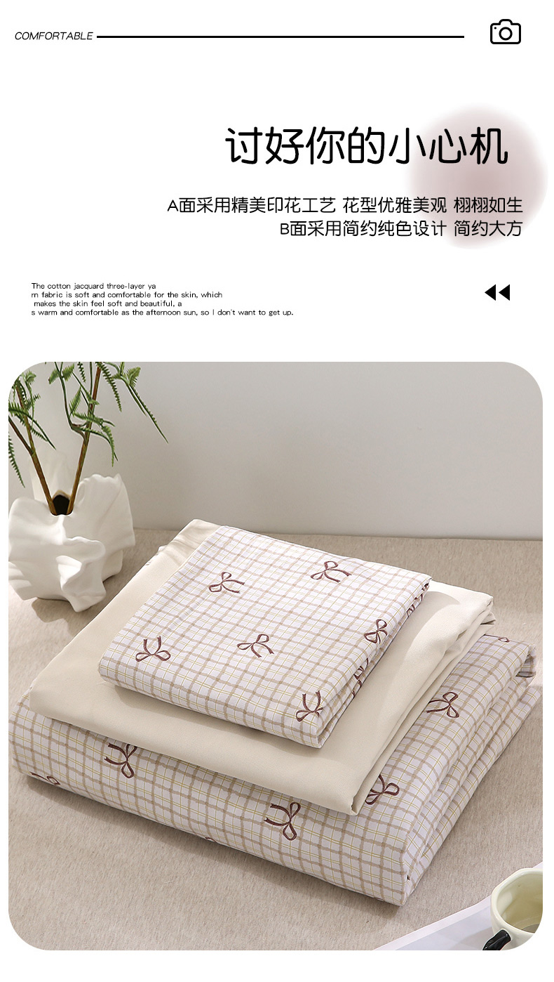 织写 2025新款A类双层纱针织棉四件套床单四件套床单四件套小清新四件套 蝴蝶结-咖