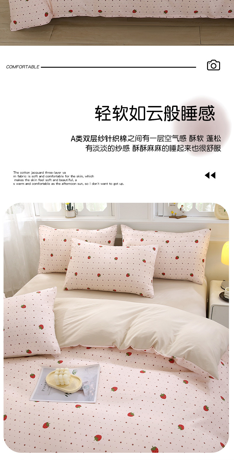织写 2025新款A类双层纱针织棉四件套床单四件套床单四件套小清新四件套 小草莓