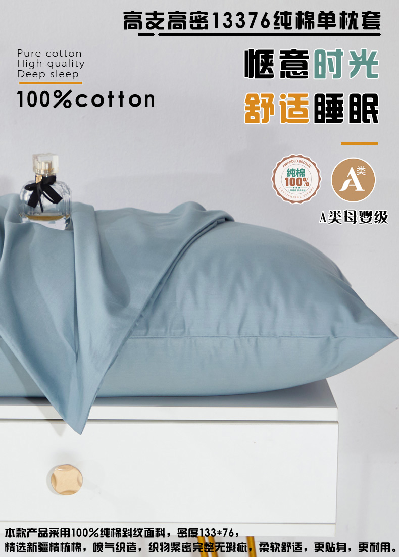晶缦家纺 2025新款喷气全棉13376纯棉斜纹纯色枕套-沐兰 沐兰-雾霾蓝