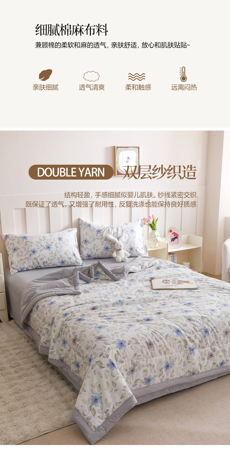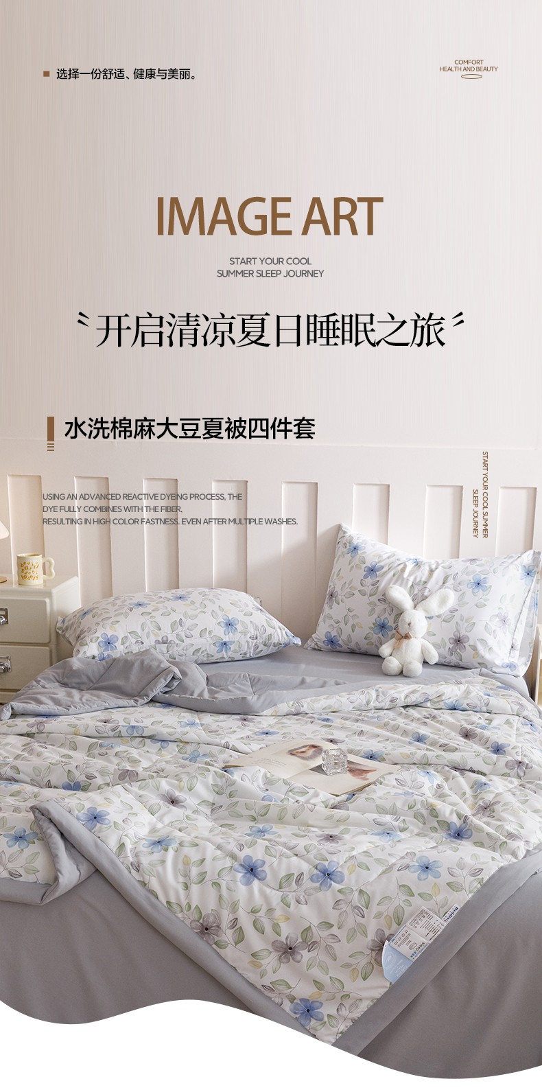 当前位置: 91家纺网 > 商品网购 > 床品套件 > 四件套 > 夏被四件套 > 一加一2025新款水洗棉麻印花大豆夏被 四件套 芳菲