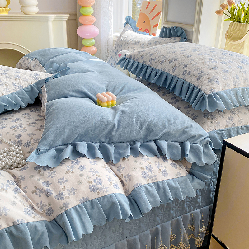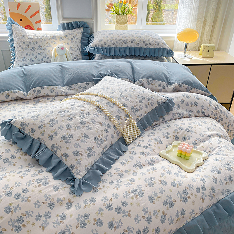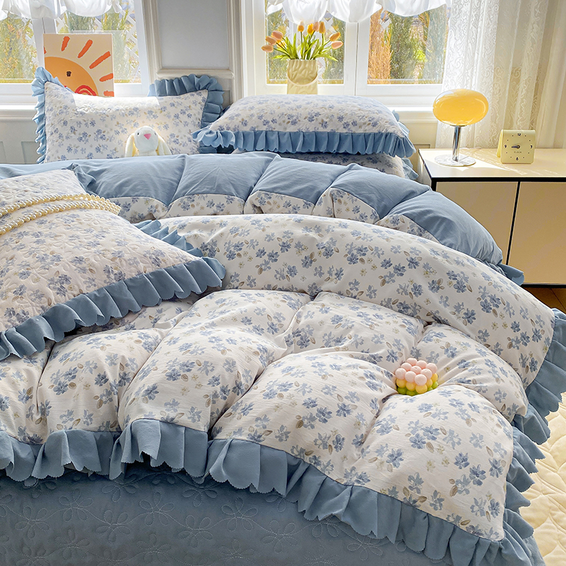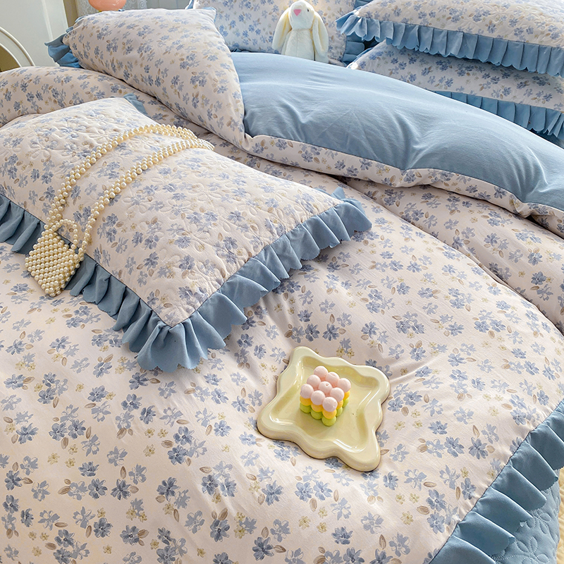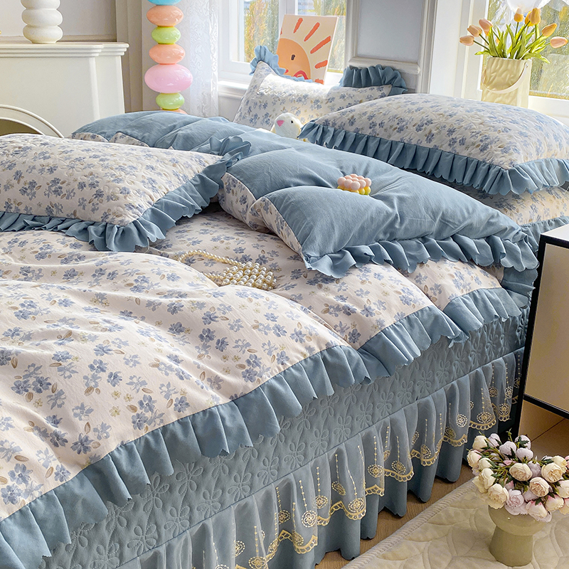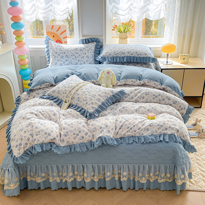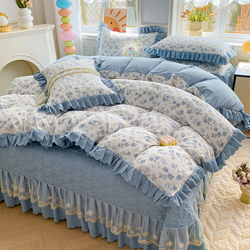 提花大世界 2025直播热款A类针织棉双层纱夹棉床盖床裙花边单件三件四件套 畅游花海