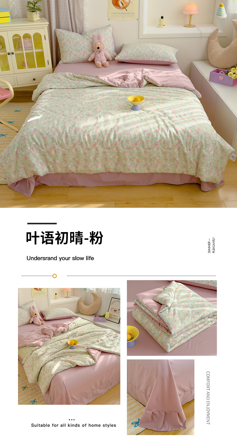 弗苓家纺 2025 A类有氧针织双层纱夏被四件套直播爆款 叶语初晴-粉