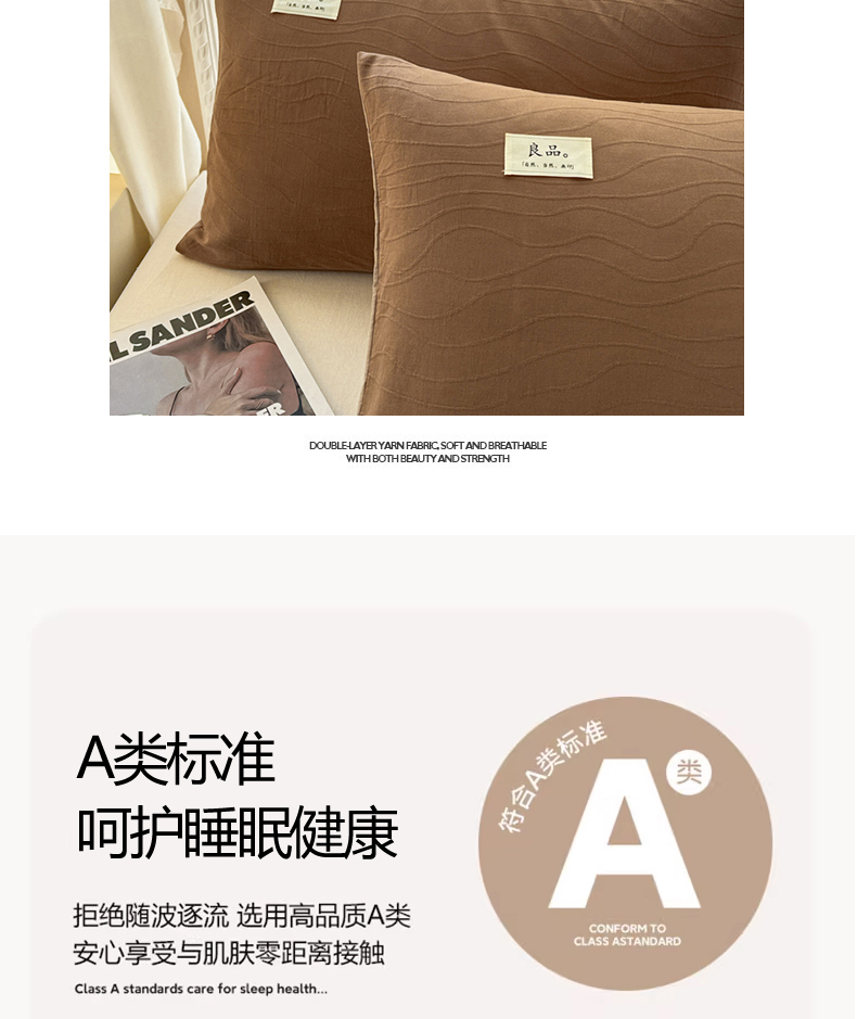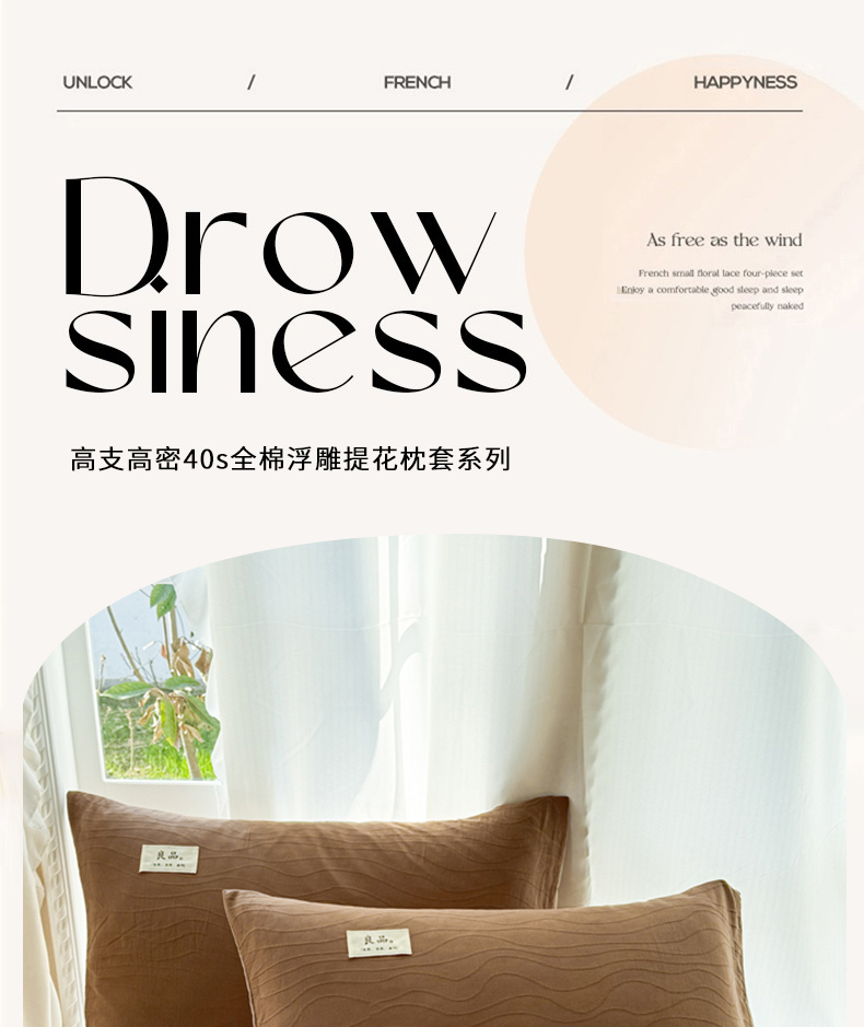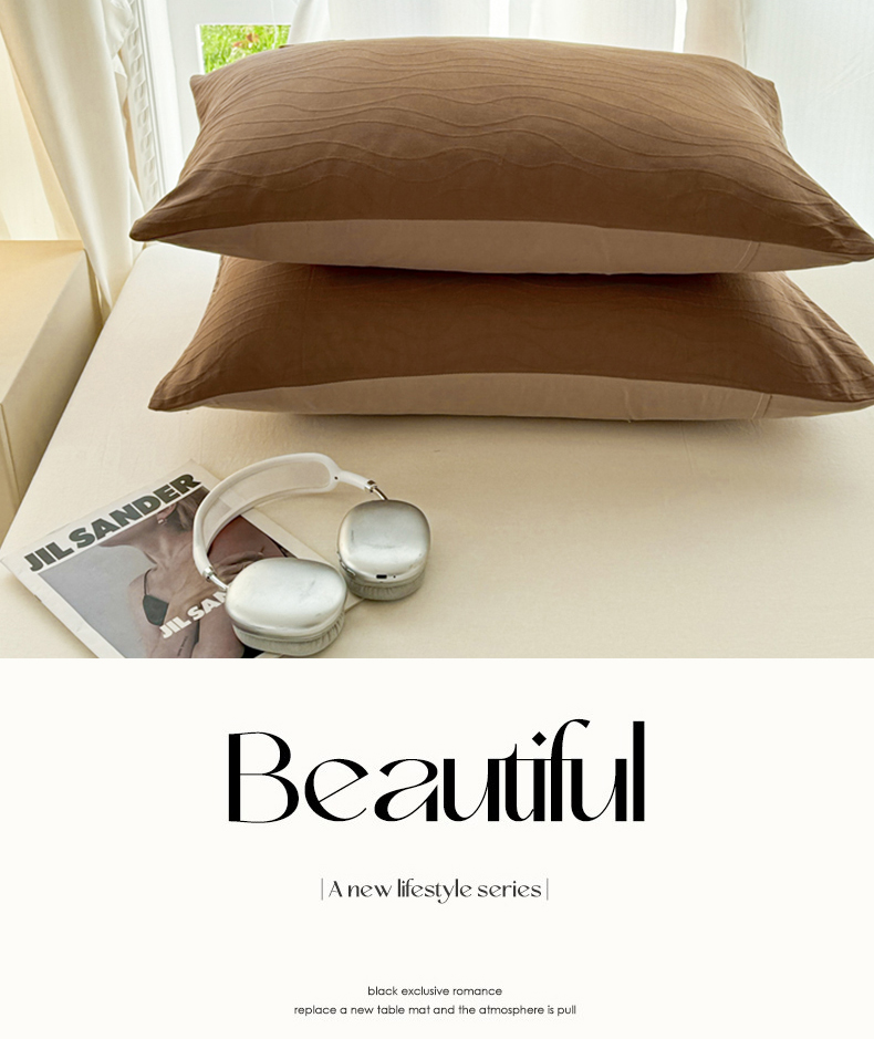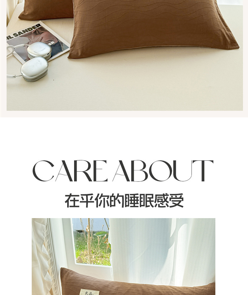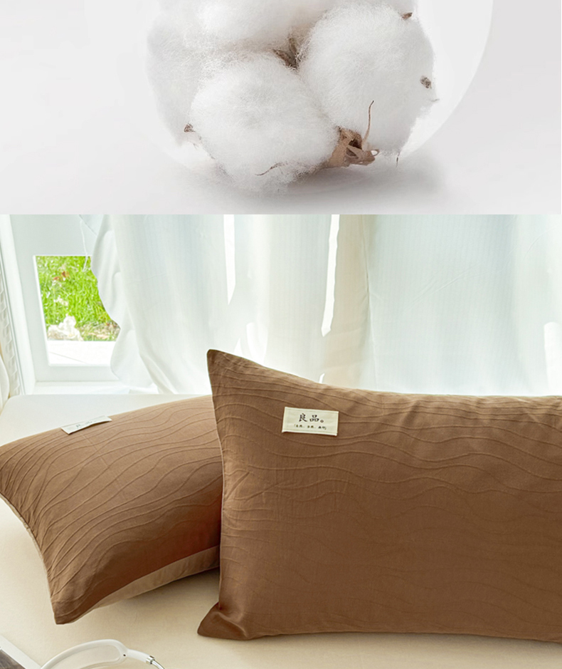 商品名称:眠博士 2025新款全棉美拉德轻奢简约浮雕提花系列-单枕套 单品追忆枕套-棕咖