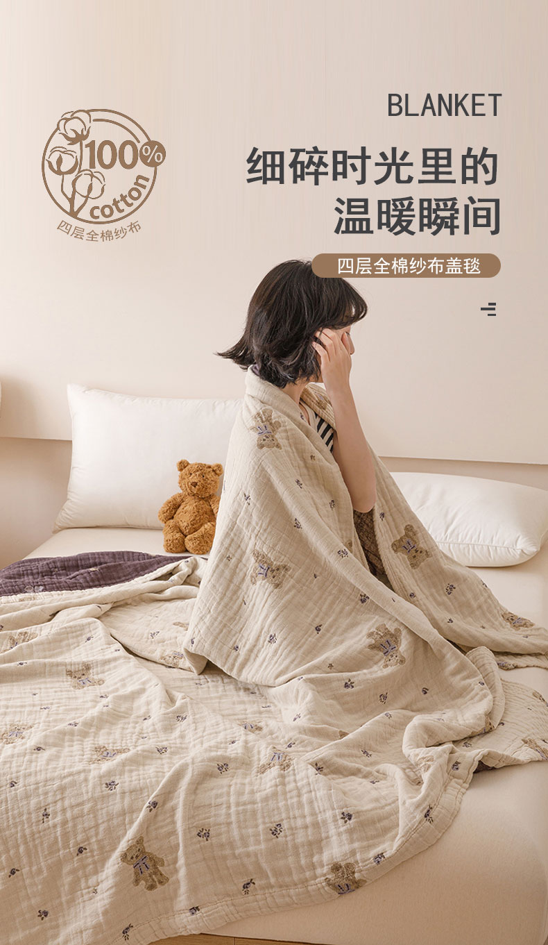 商品名称:麻依 2025新款四层全棉纱布毯盖毯毛巾被子被芯 布偶熊