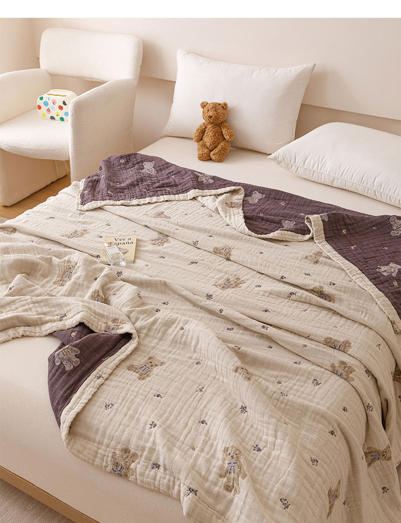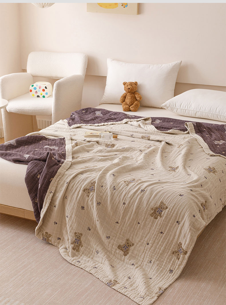 麻依 2025新款四层全棉纱布毯盖毯毛巾被子被芯 布偶熊
