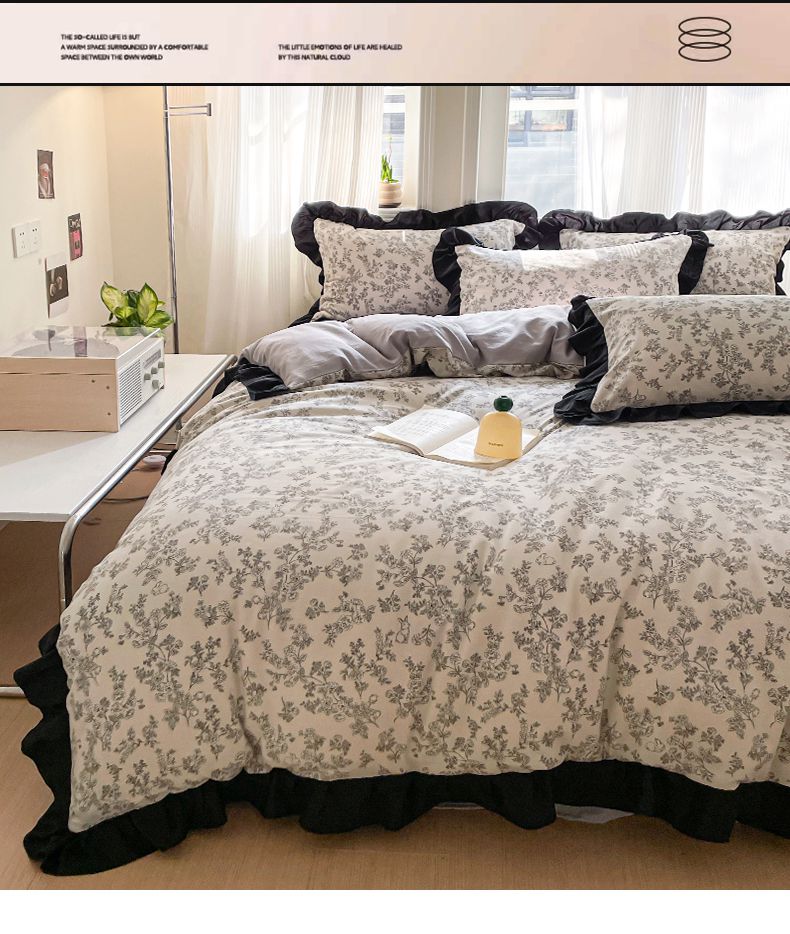 商品名称:首尔家纺 2025新款赫本风针织双层纱四件套系列 哈基米