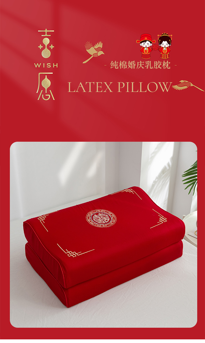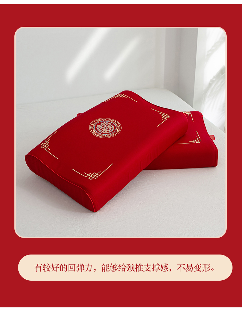 (总)萌番宝 2025全棉刺绣新婚庆乳胶枕芯大红色结婚用枕头女方陪嫁送礼纯棉单人枕